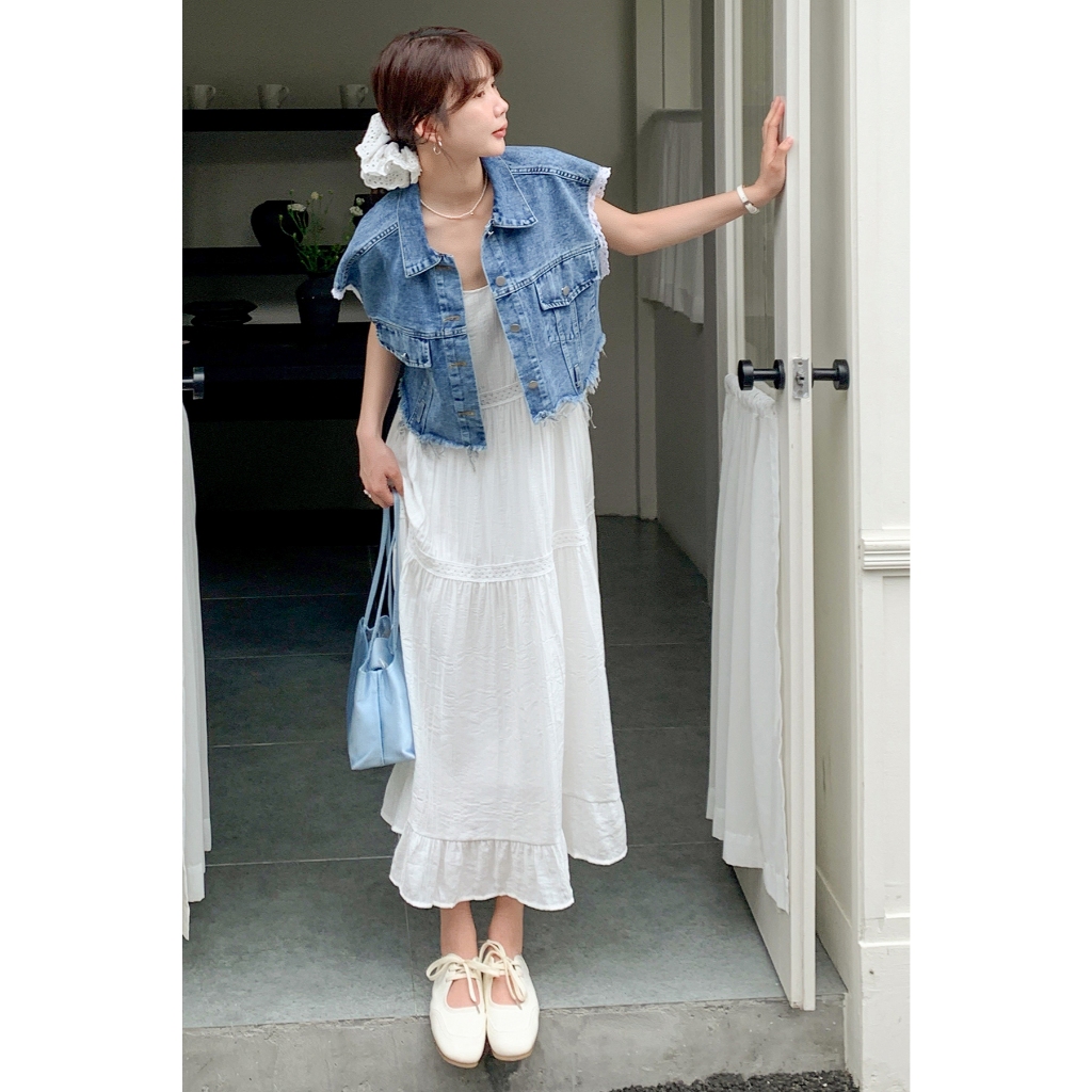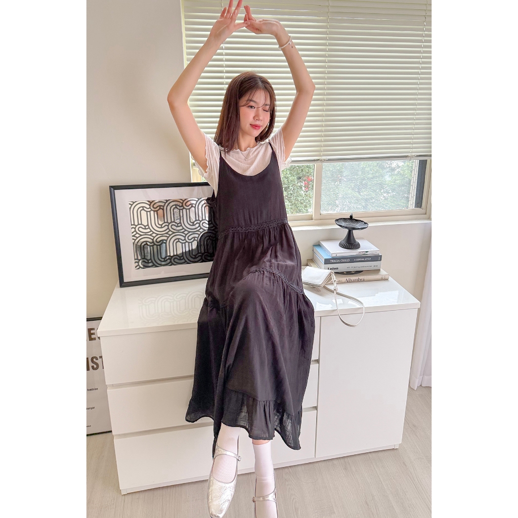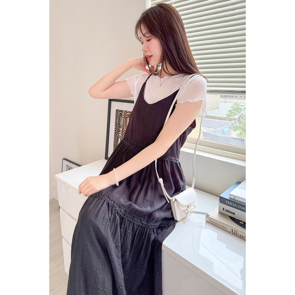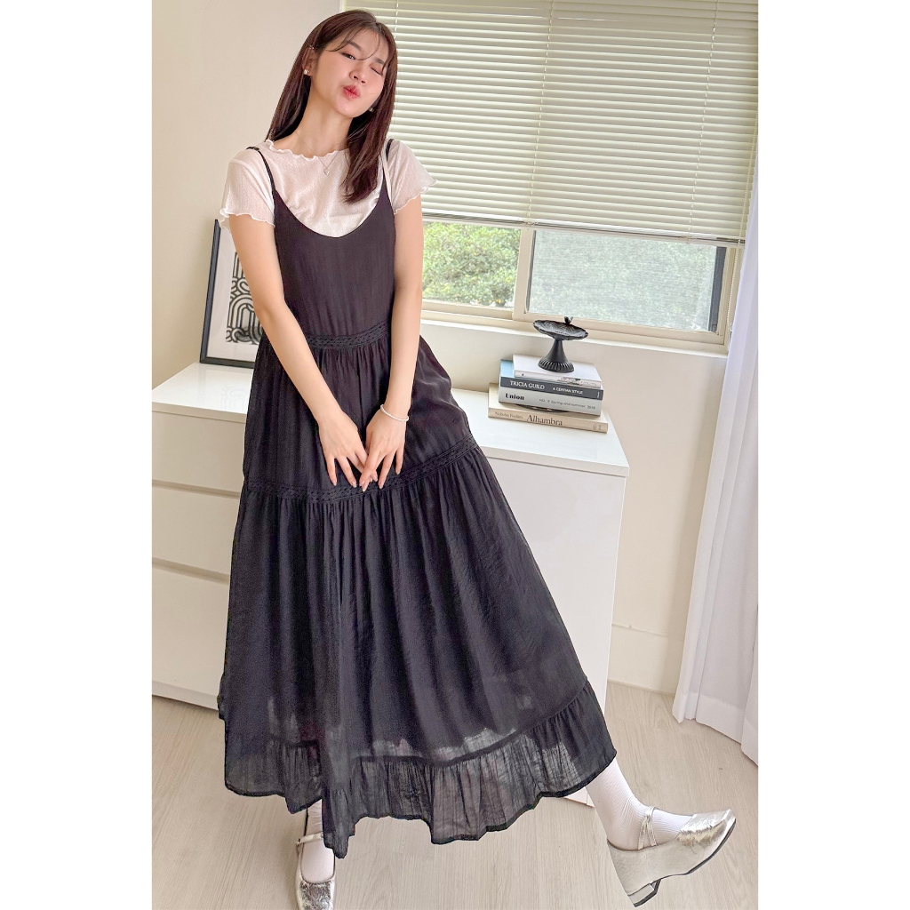 【HARPER】浪漫緹花蕾絲蛋糕洋裝 有內裏 | 現貨 細肩帶洋裝 蕾絲 婚禮【DSE26617J】白,F|黑,FHARPER