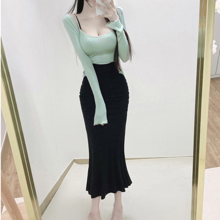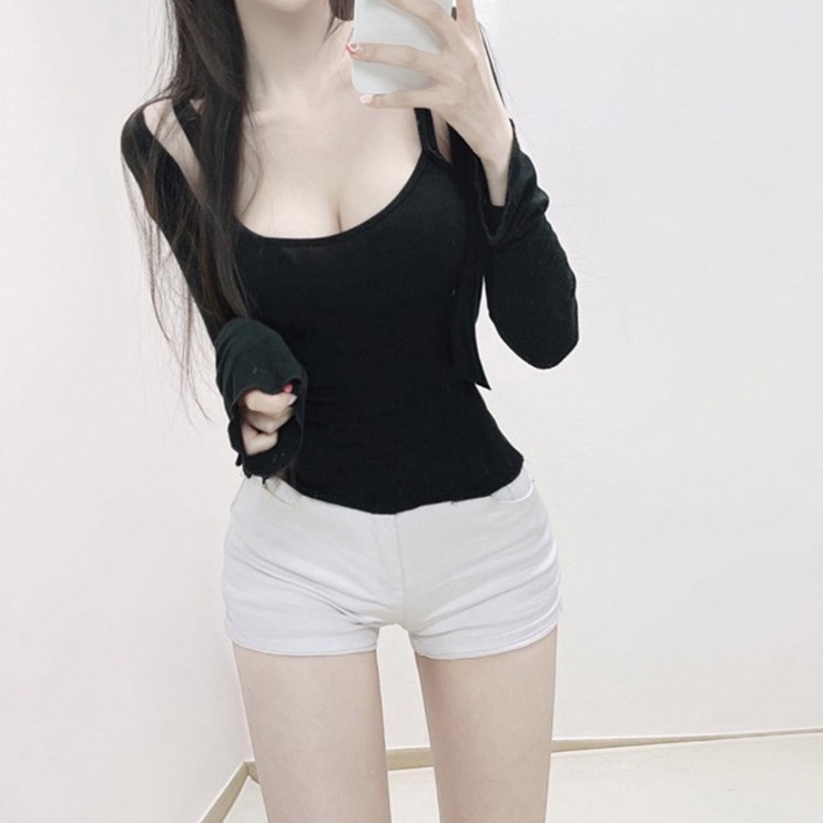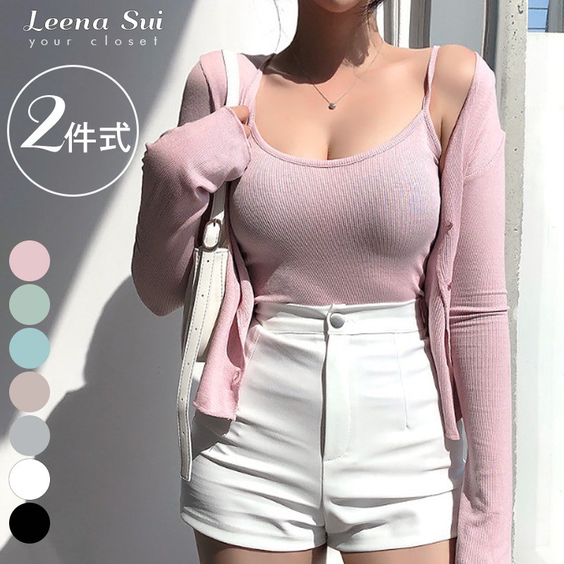 套裝夏天 外套無袖背心 細肩帶背心 韓性感顯胸顯瘦吊帶背心+防曬外套 兩件式套裝 062627粉|薄荷綠|天藍|米色|灰|白|黑Individual SetsLeenaSui ~台灣賣家 隔日到貨