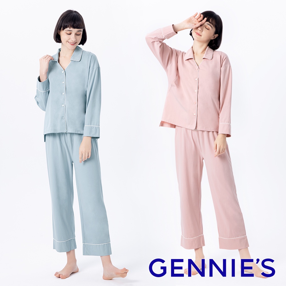 【Gennies 奇妮】居家哺乳兩用成套月子服-藍/粉(TPB07)粉,M|粉,L|粉,XL|藍,M|藍,L|藍,XLMaternity SetsGennies 奇妮孕哺(官方旗艦店)
