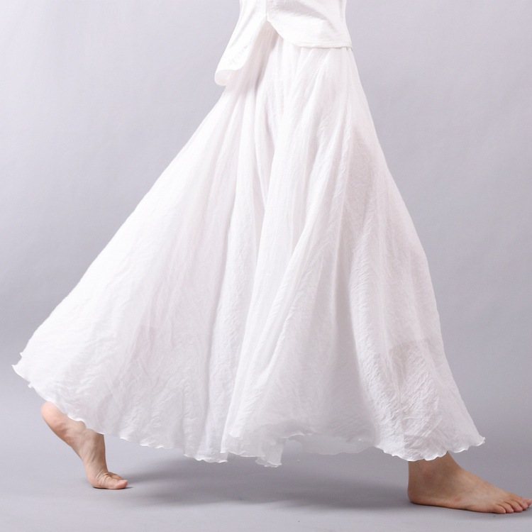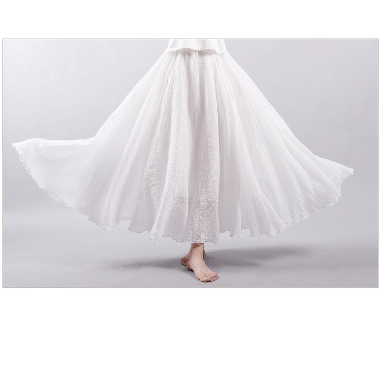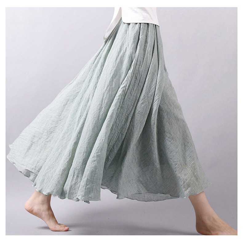長裙 棉麻半身裙 亞麻純色長裙寬鬆大擺裙褶皺A字裙051725黑色|白色|淺灰|米色|淺綠|藍色LeenaSui ~台灣賣家 隔日到貨