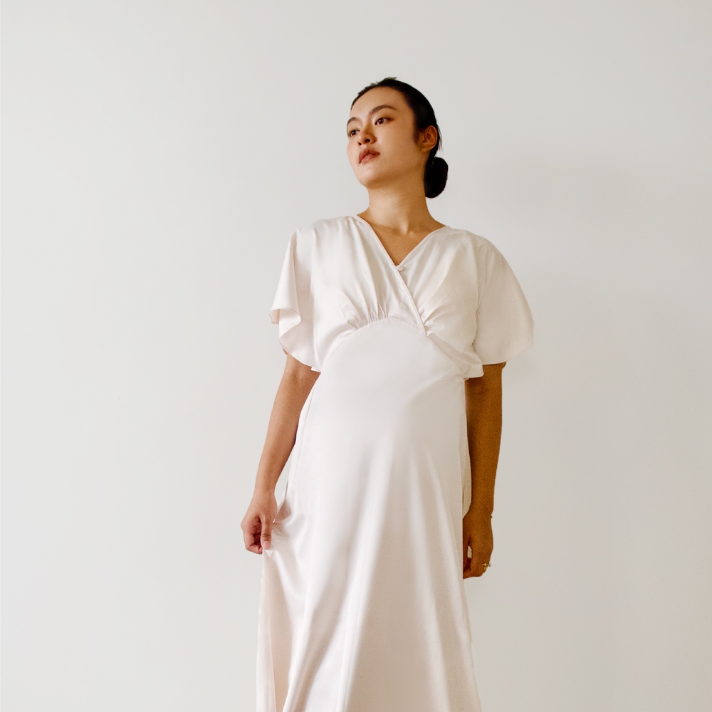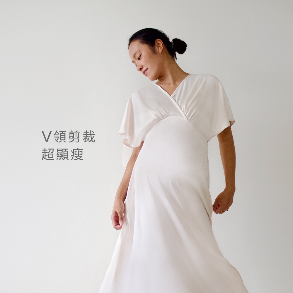 【Gennies 奇妮】光澤感蝙蝠袖孕婦哺乳洋裝(T1Q01)洋裝 孕婦裝 孕婦裙 孕婦洋裝 短袖白,M|白,LMaternity DressesGennies 奇妮孕哺(官方旗艦店)