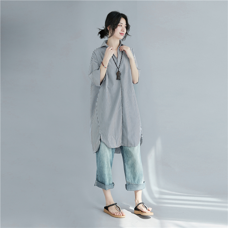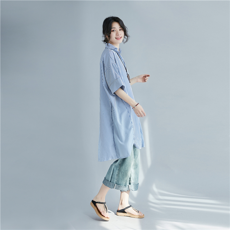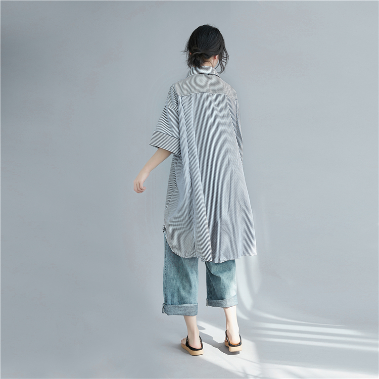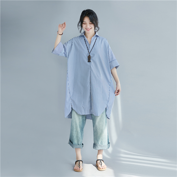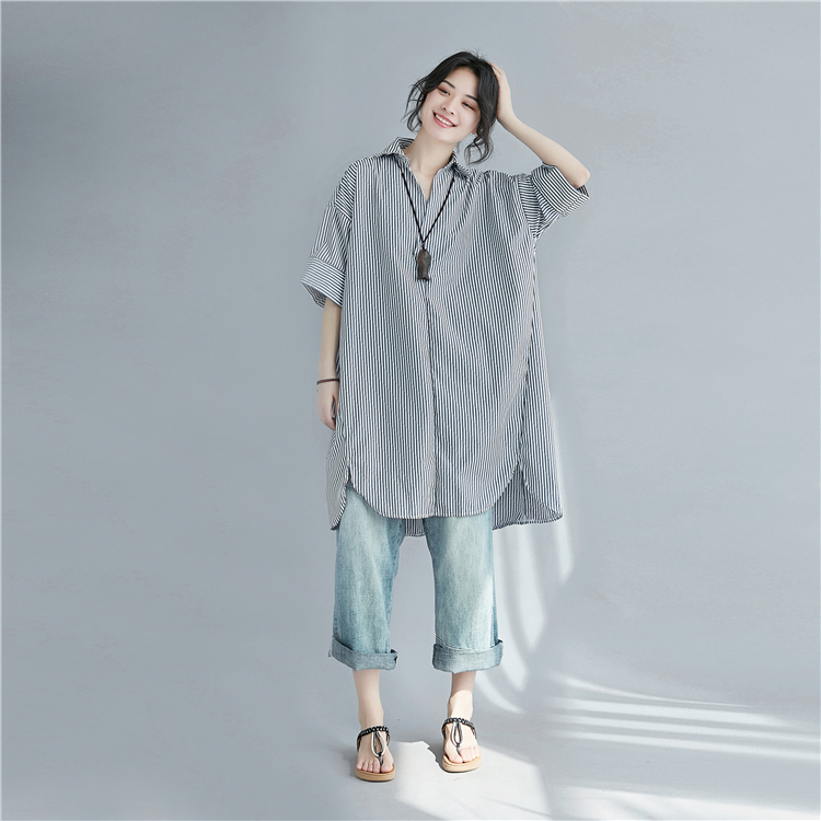 寬鬆條紋大尺碼中長襯衫 028085