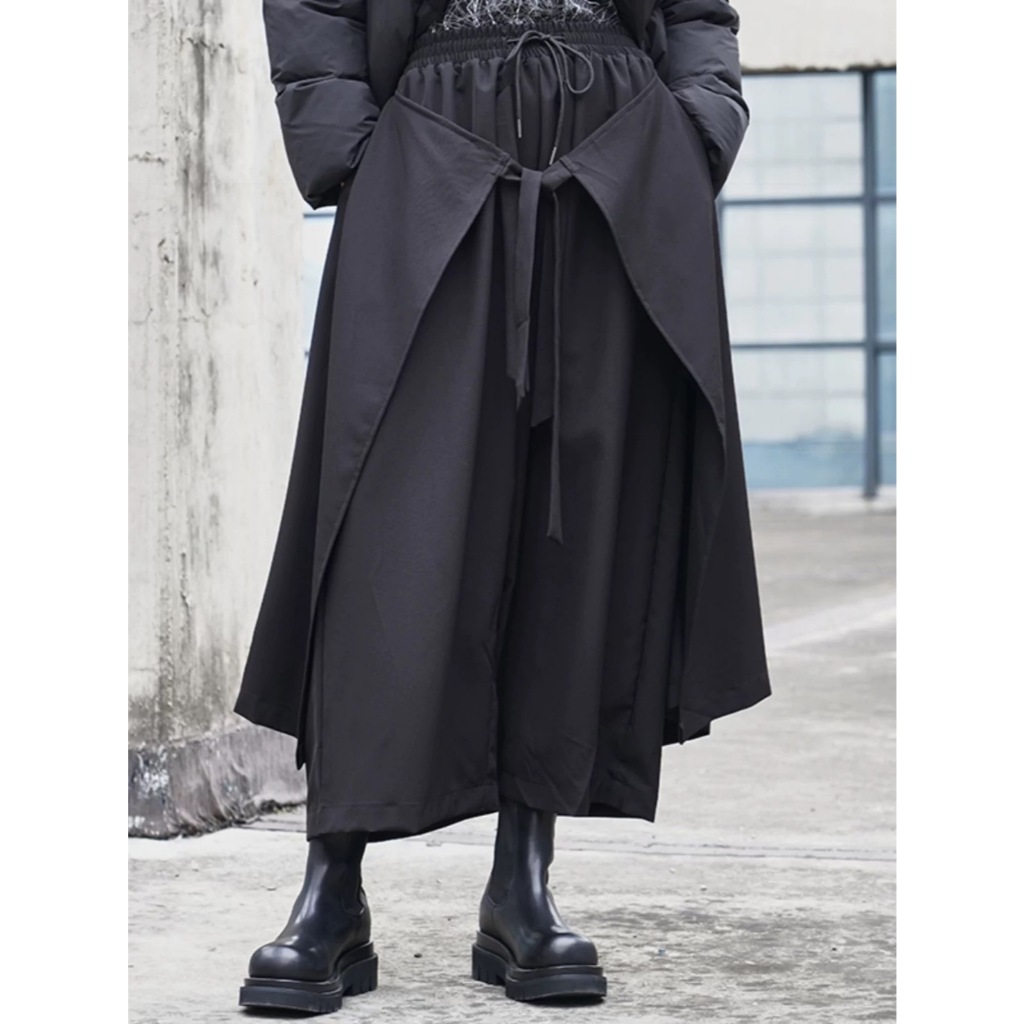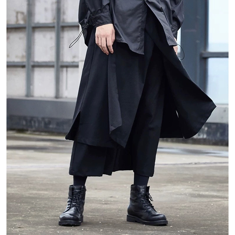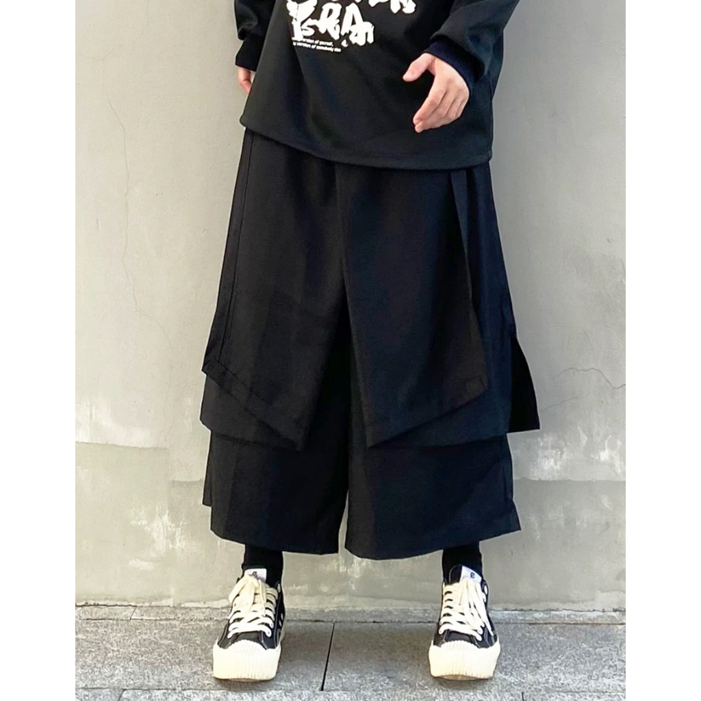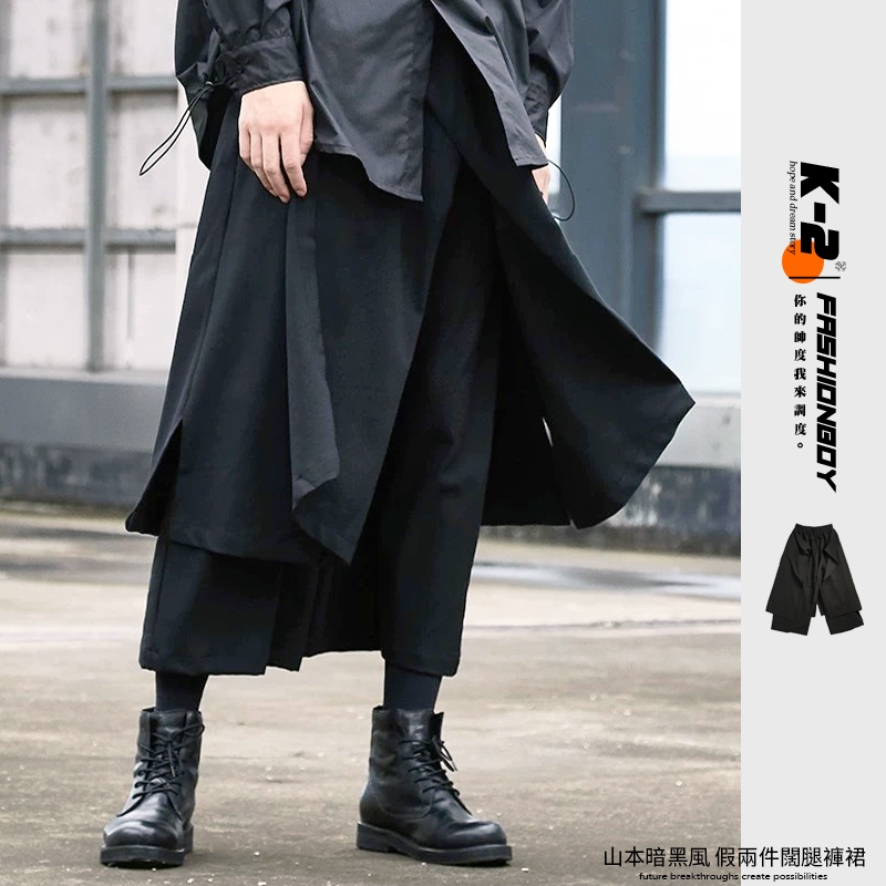 【K-2】山本暗黑風 假兩件闊腿褲裙 山本耀司 褲裙 特殊款 暗黑系 造型九分褲 日系 寬褲 闊腿褲 褲子【WX094】M|L|XLPantsK-2 Fashionboy