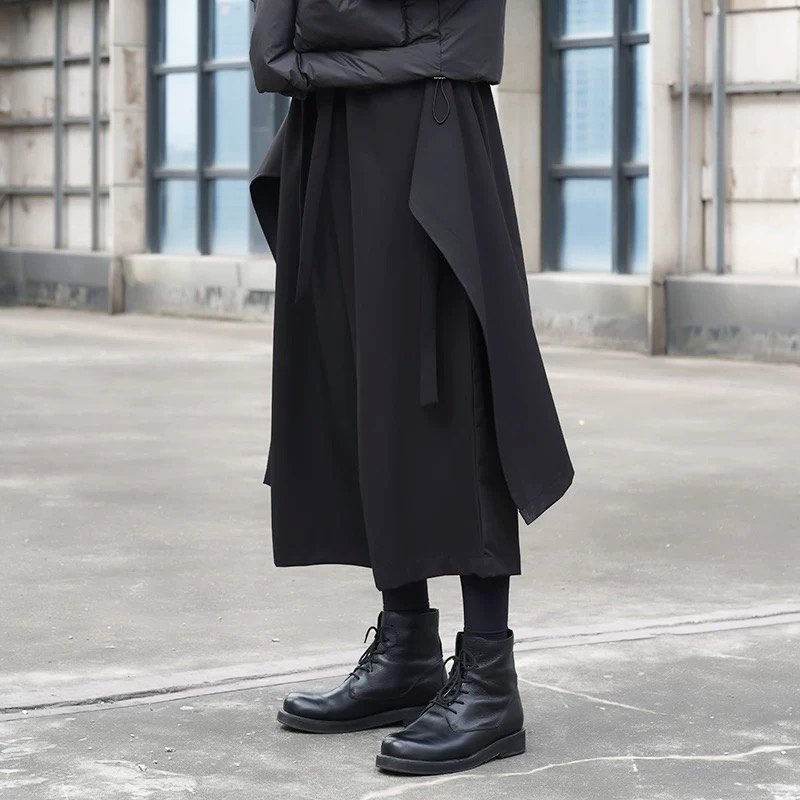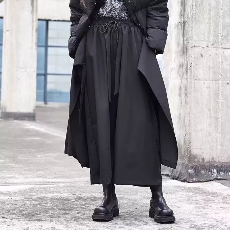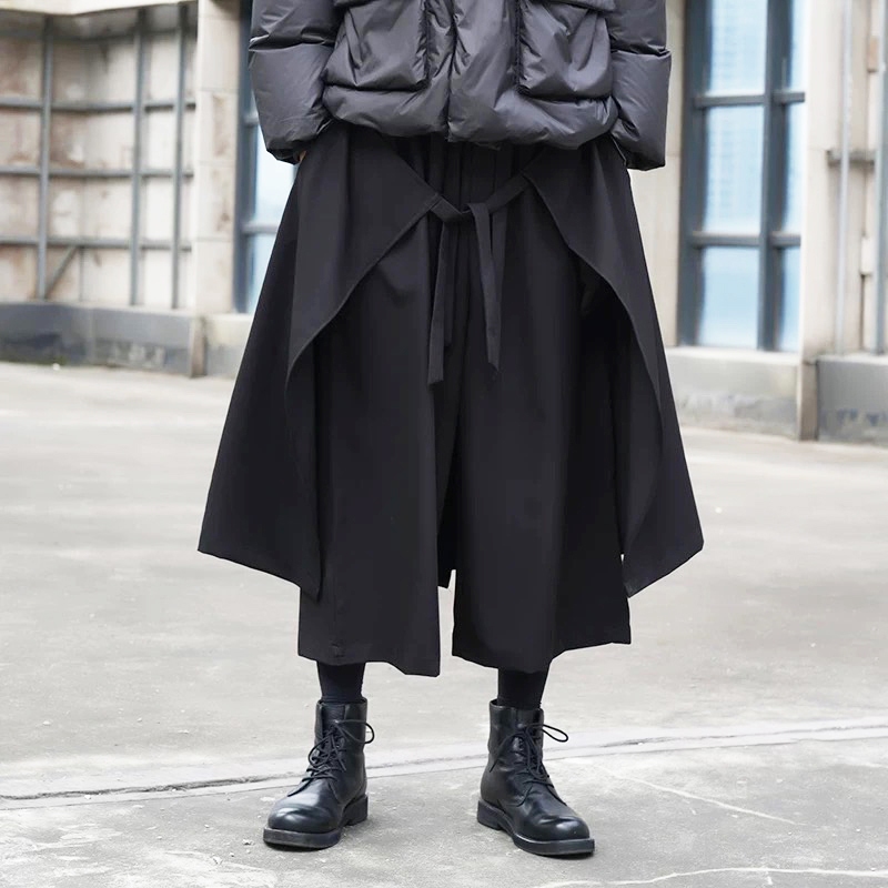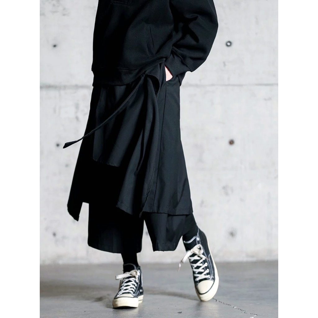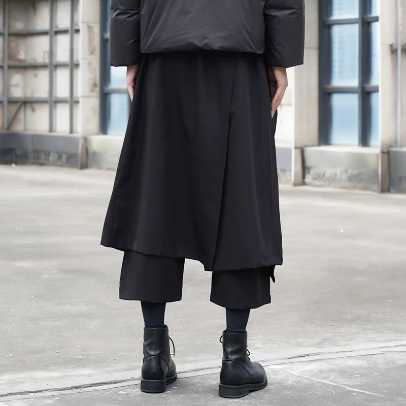 【K-2】山本暗黑風 假兩件闊腿褲裙 山本耀司 褲裙 特殊款 暗黑系 造型九分褲 日系 寬褲 闊腿褲 褲子【WX094】M|L|XLPantsK-2 Fashionboy