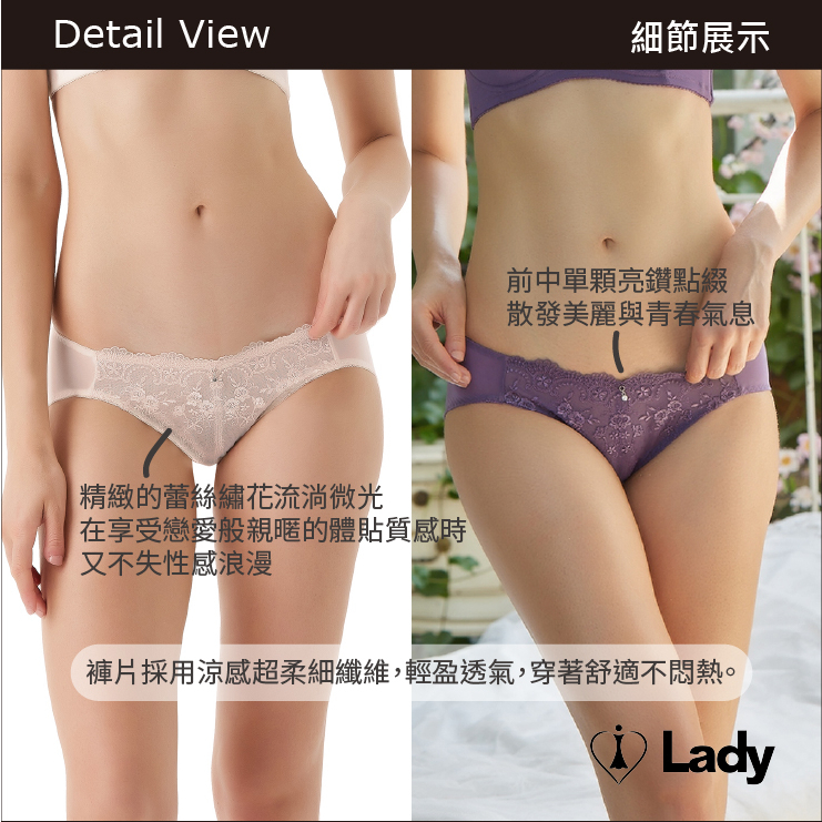 Lady 情戀花園系列 中腰 刺繡 蕾絲 三角褲 (浪漫紫)M|L|XLPantiesLady內衣官方直營旗艦店
