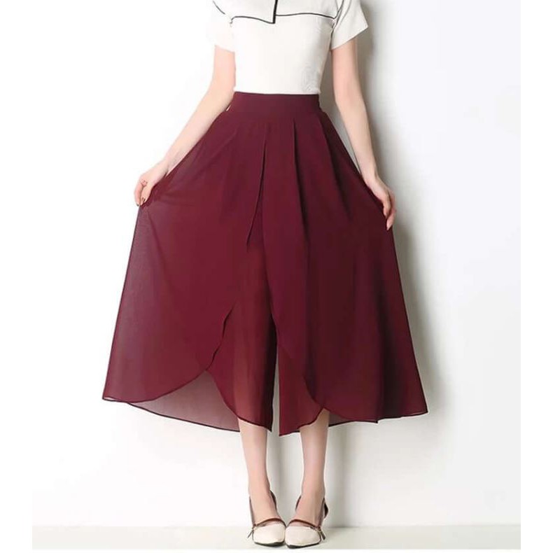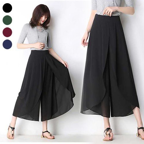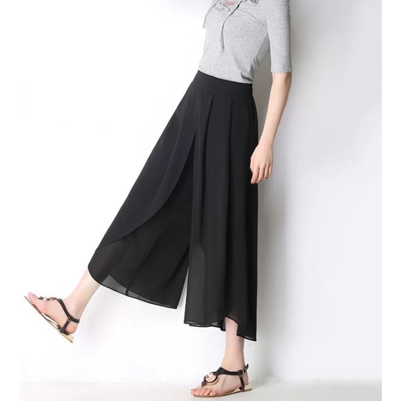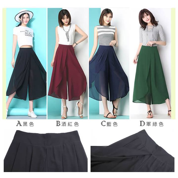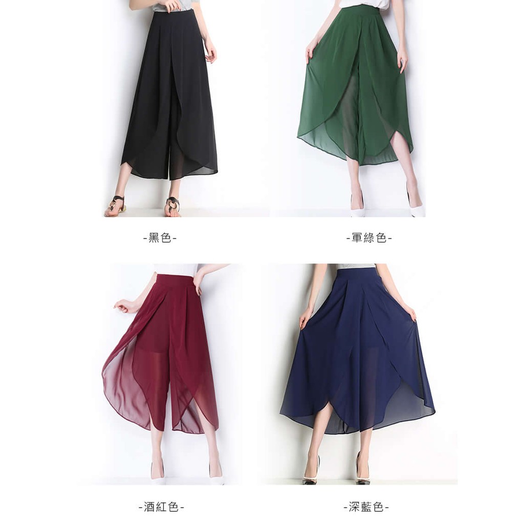 GOFO 長褲 顯瘦打摺拼接 垂墜感 雪紡 寬褲 褲裙 八分褲 七分褲 女生褲子 造型褲 雪紡褲 女裝 中大尺碼 夏天一般碼-黑色|一般碼-酒紅|一般碼-深藍|一般碼-軍綠|中大碼-黑色(32~36腰)|中大碼-酒紅(32~36腰)|中大碼-深藍(32~36腰)|中大碼-軍綠(32~36腰)PantsGOFO 台灣賣家 台灣出貨 台灣現貨