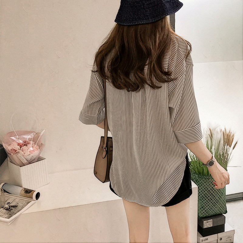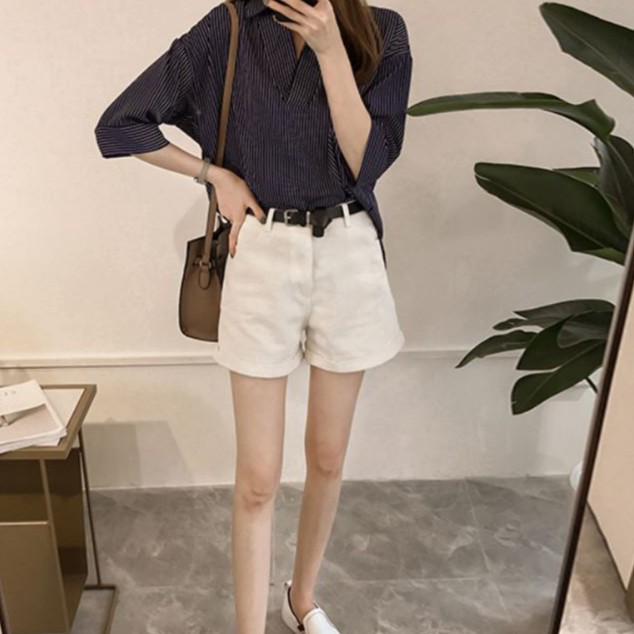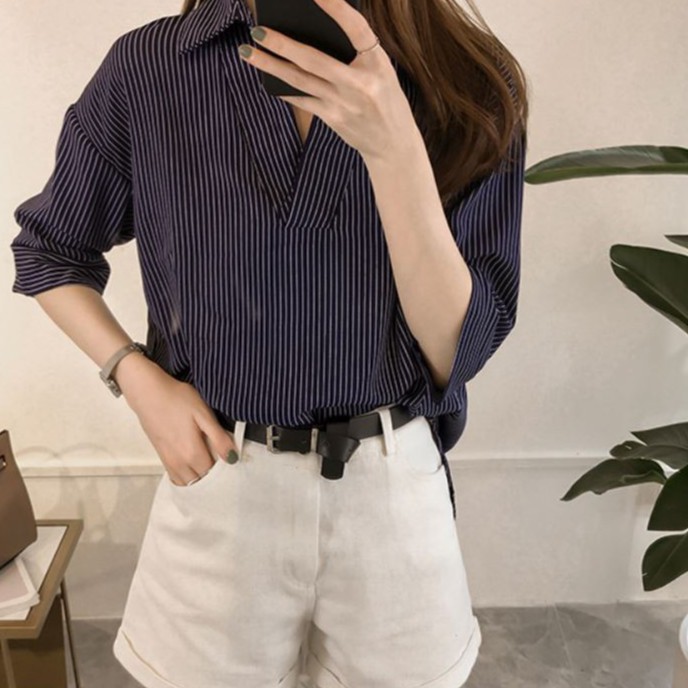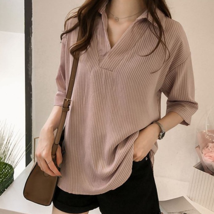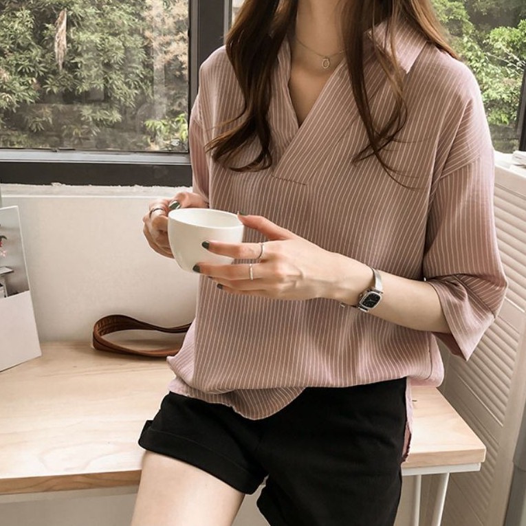 GOFO 短袖上衣 OL穿搭 韓版 V領顯瘦條紋有領 五分袖 短袖t恤 女生衣著 女生上衣 一般碼 中大尺碼 夏季 夏天一般碼-白色|一般碼-粉色|一般碼-深藍|中大碼-白色|中大碼-粉色|中大碼-深藍T-shirtsGOFO 台灣賣家 台灣出貨 台灣現貨