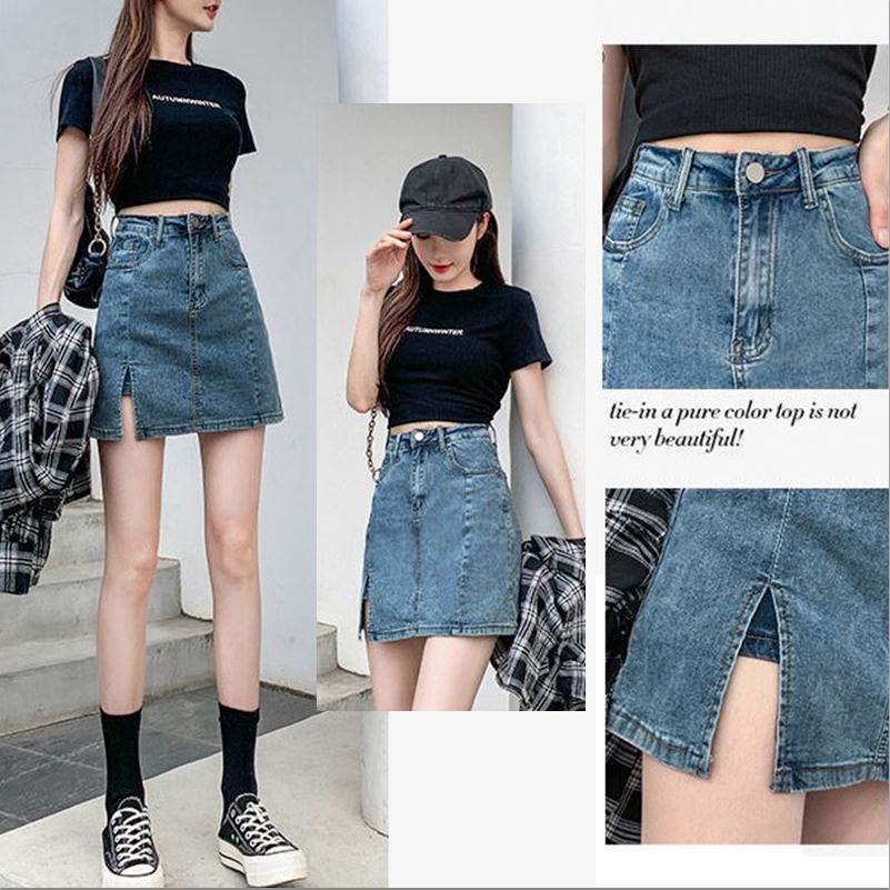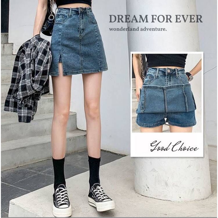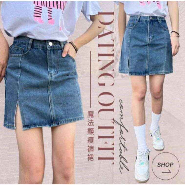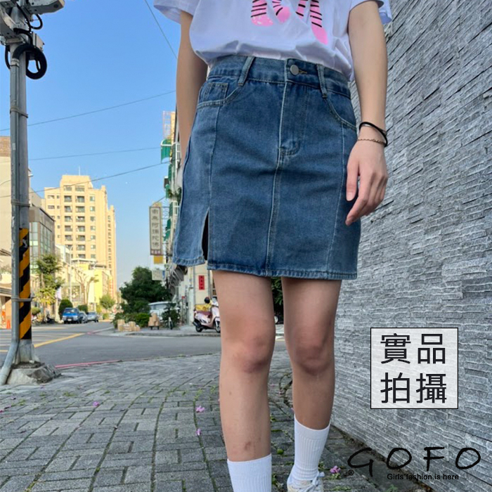 GOFO 牛仔裙 韓系高腰顯瘦 A字防走光短裙 半身裙 褲裙 牛仔短裙 復古藍 女生裙子 夏季服飾 夏天 女裝L(28腰)|XL(30腰)|2XL(32腰)|S(24腰)|M(26腰)GOFO 台灣賣家 台灣出貨 台灣現貨