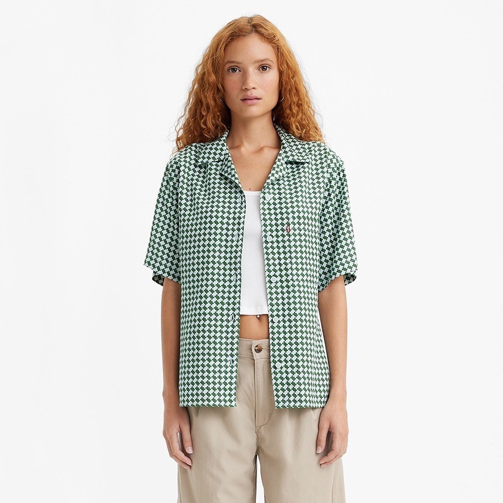 Levis 單口袋寬袖短袖襯衫 / 菱格棋盤紋 / 天絲棉 女款 A4576-0003 熱賣單品S|XS|M|XXSShirts & BlousesLevi’s官方旗艦店