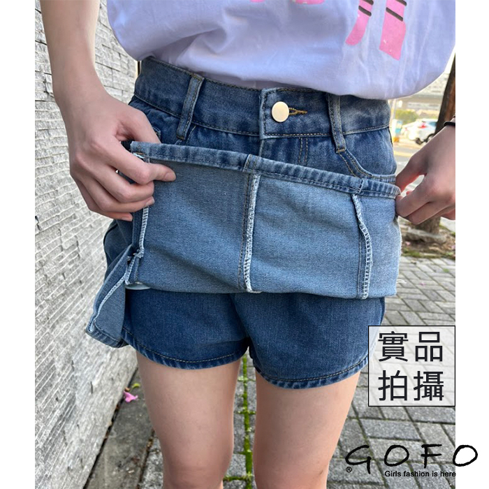 GOFO 牛仔裙 韓系高腰顯瘦 A字防走光短裙 半身裙 褲裙 牛仔短裙 復古藍 女生裙子 夏季服飾 夏天 女裝