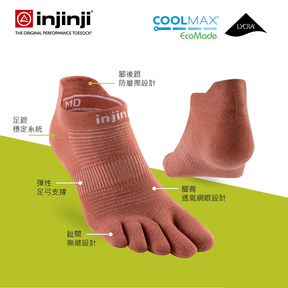 【injinji】Run輕量吸排五趾隱形襪NX (暖磚紅)-NAA1316|COOLMAX 快乾襪 吸濕排汗 五趾襪S|M|LSocksGOHIKING戶外用品專賣店