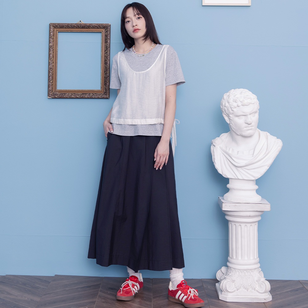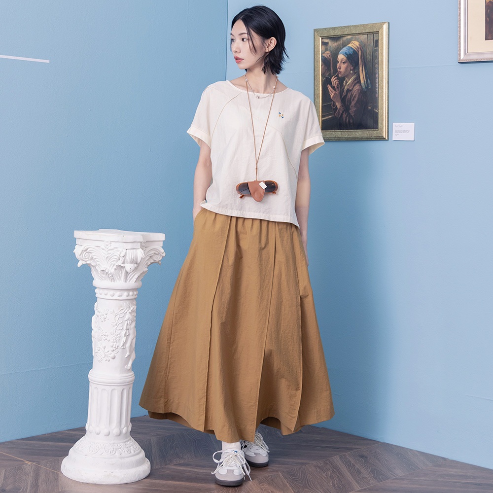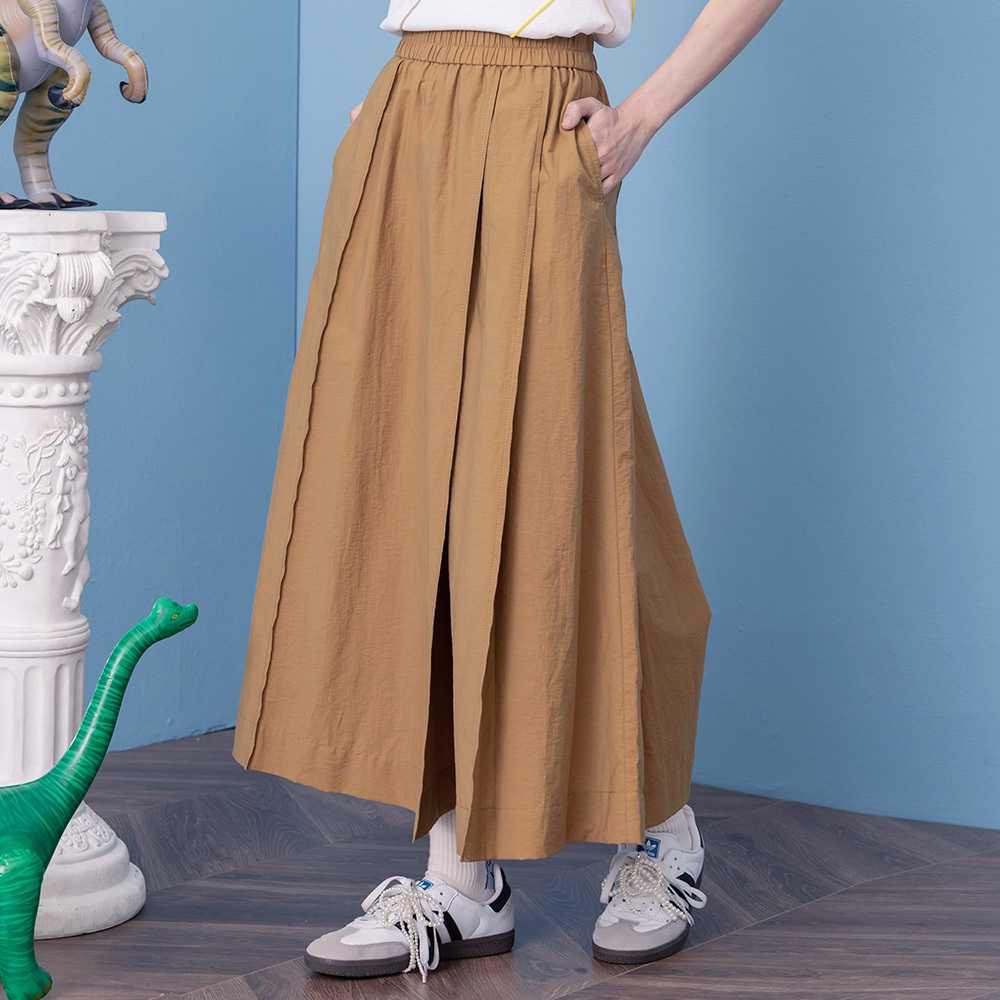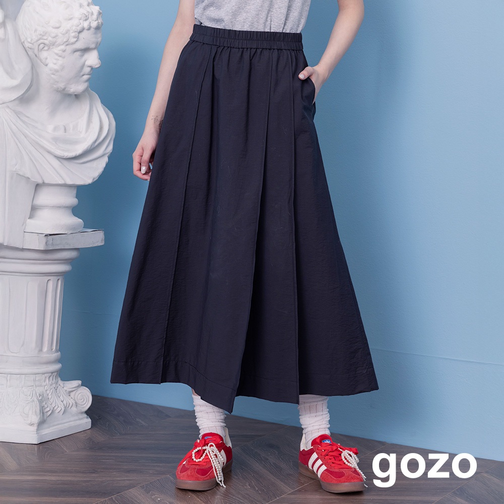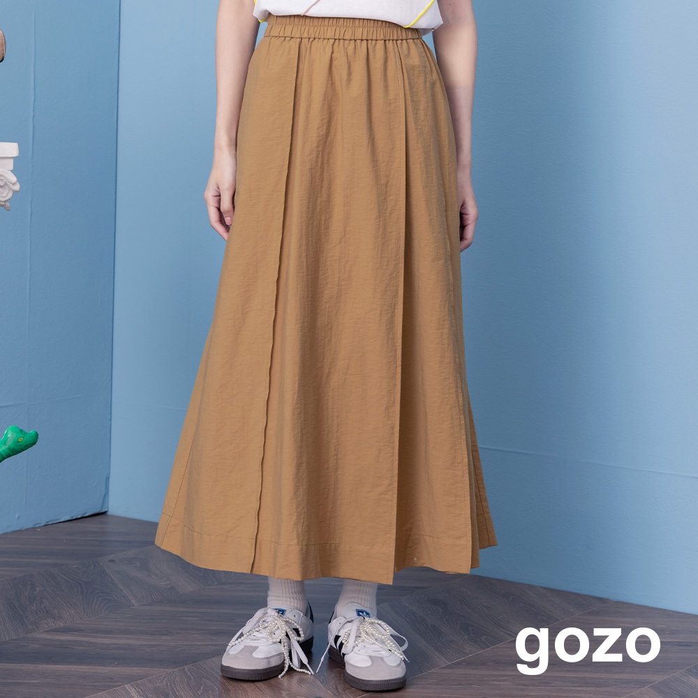 【gozo】➤輕薄舒適打褶鬆緊褲裙(卡其/黑色_F) | 女裝 修身 涼爽卡其,F|黑色,FPantsgozo 品牌旗艦店