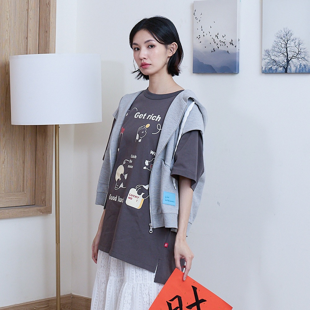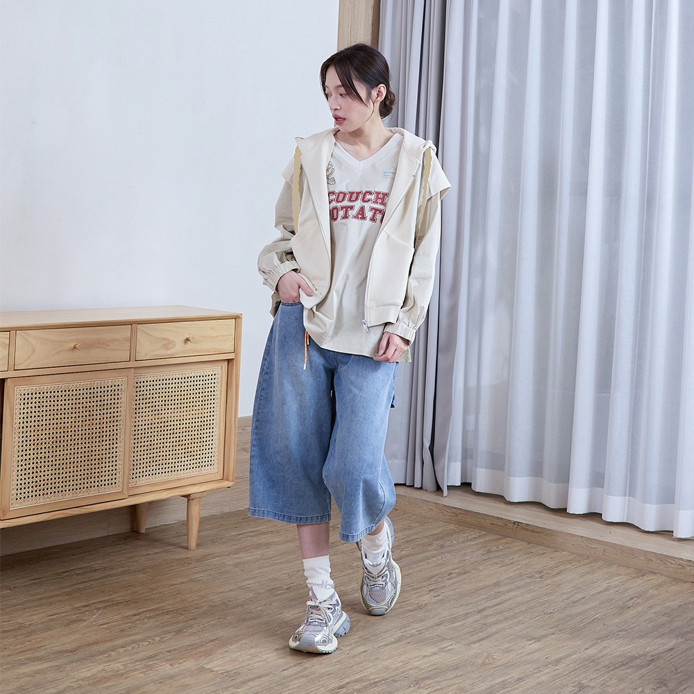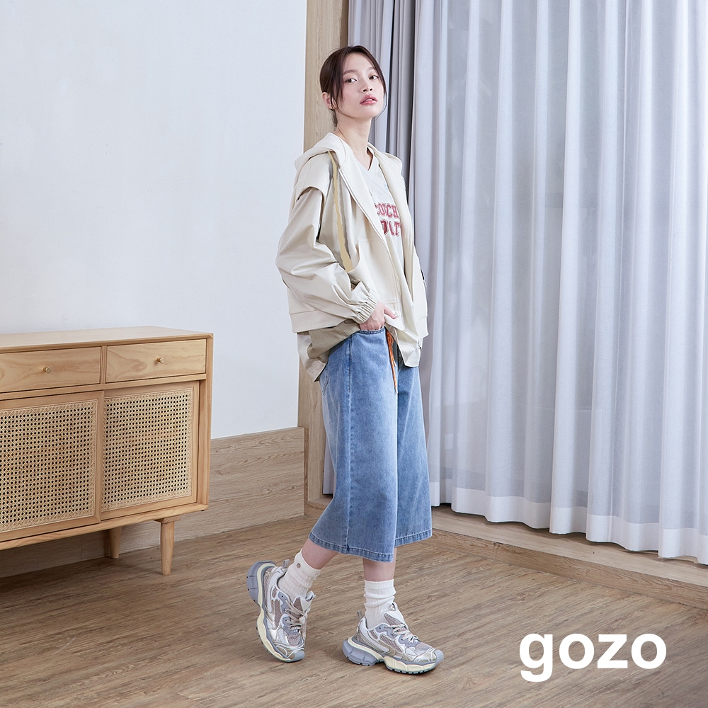 【gozo】造型帽繩落肩連帽背心(淺灰/米黃_F) | 女裝 圓領 百搭淺灰,F|米黃,FHoodiesgozo 品牌旗艦店
