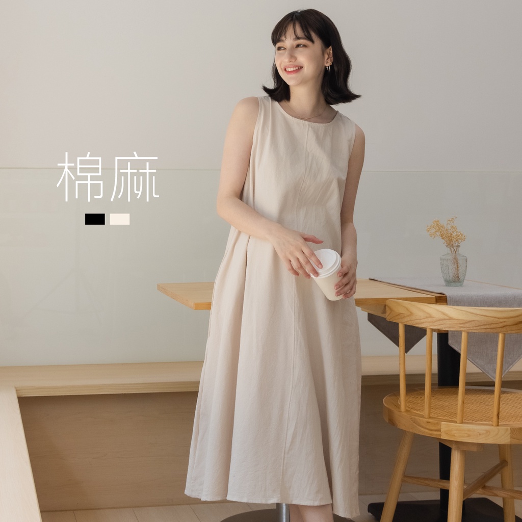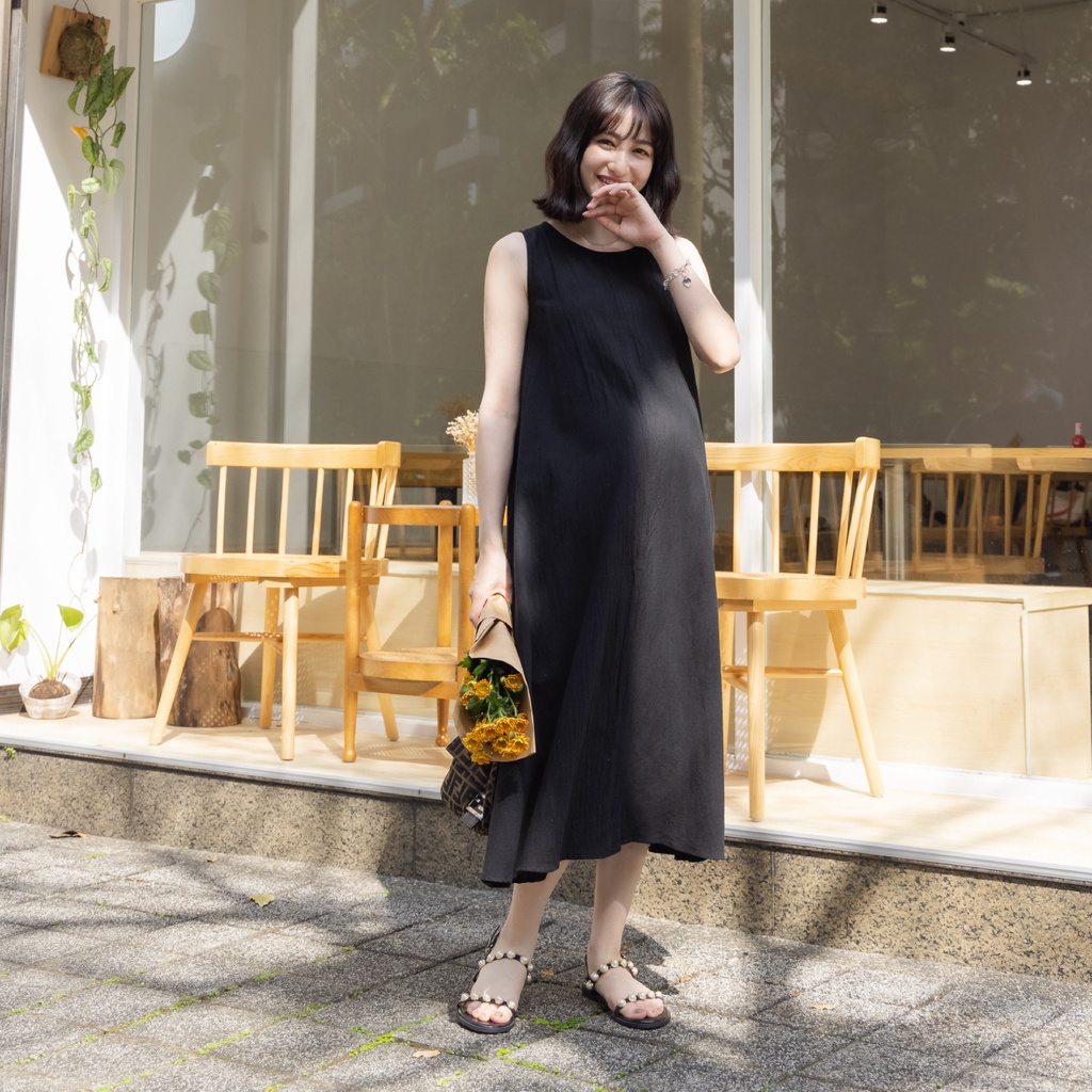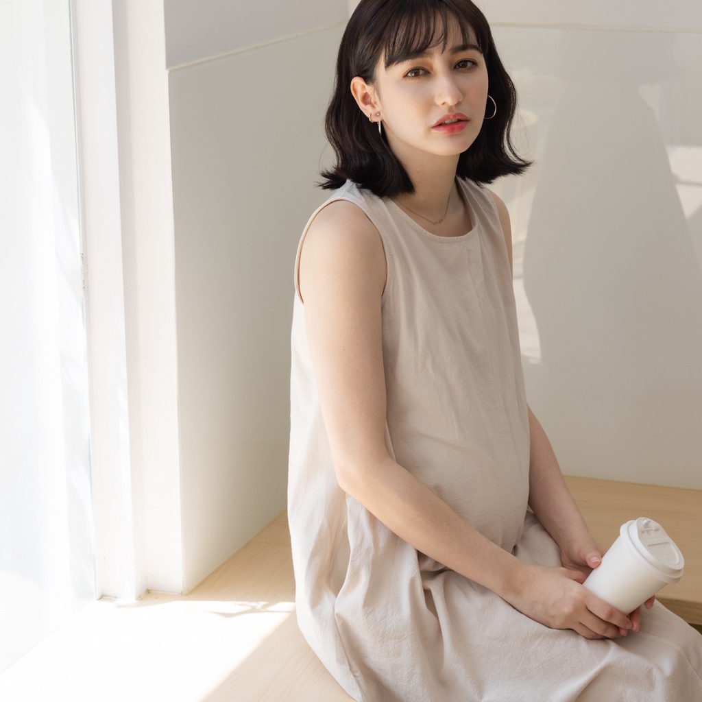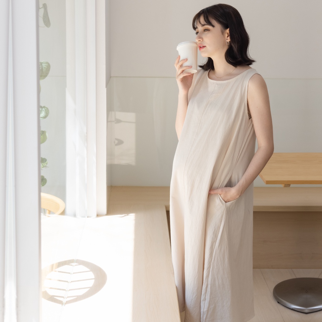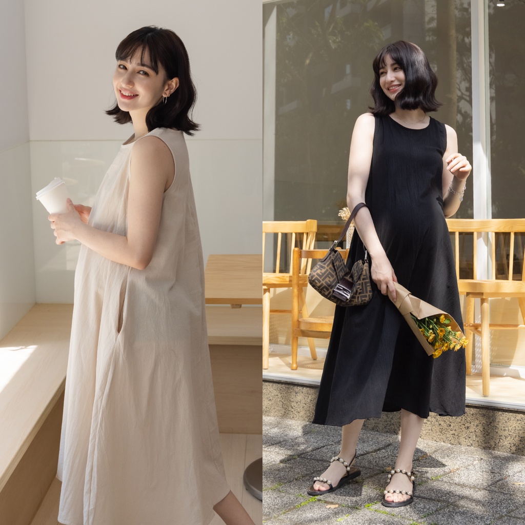 Mamamia孕婦裝 夏日棉麻無袖孕婦裝 洋裝 短袖 孕婦裙 孕婦連身裙 連身洋裝 孕婦洋裝 [D7269]黑|米杏Maternity DressesMamamia孕婦裝