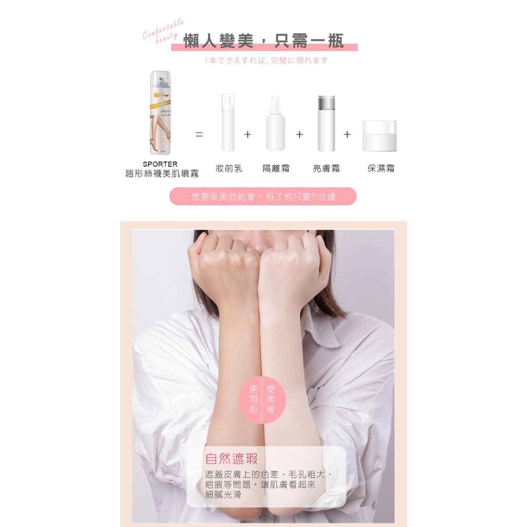 【SPORTER】隱形絲襪美肌噴霧80ML-腿部遮瑕 遮瑕 無痕隱形襪 冰絲隱形襪 隱形襪 透氣隱形襪 涼感襪子 防滑襪1瓶|3瓶|6瓶|2瓶PantyhoseHAPPY HOUSE 旗艦館