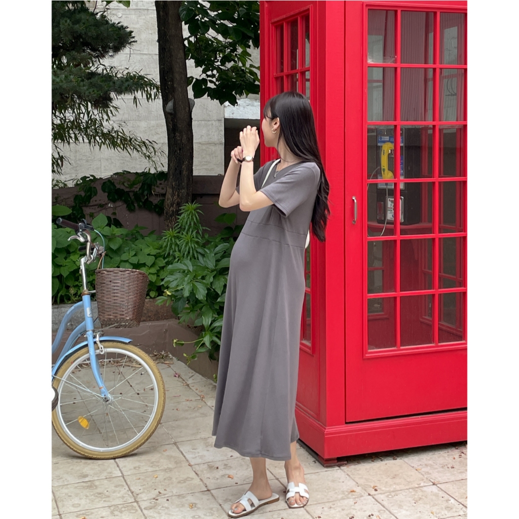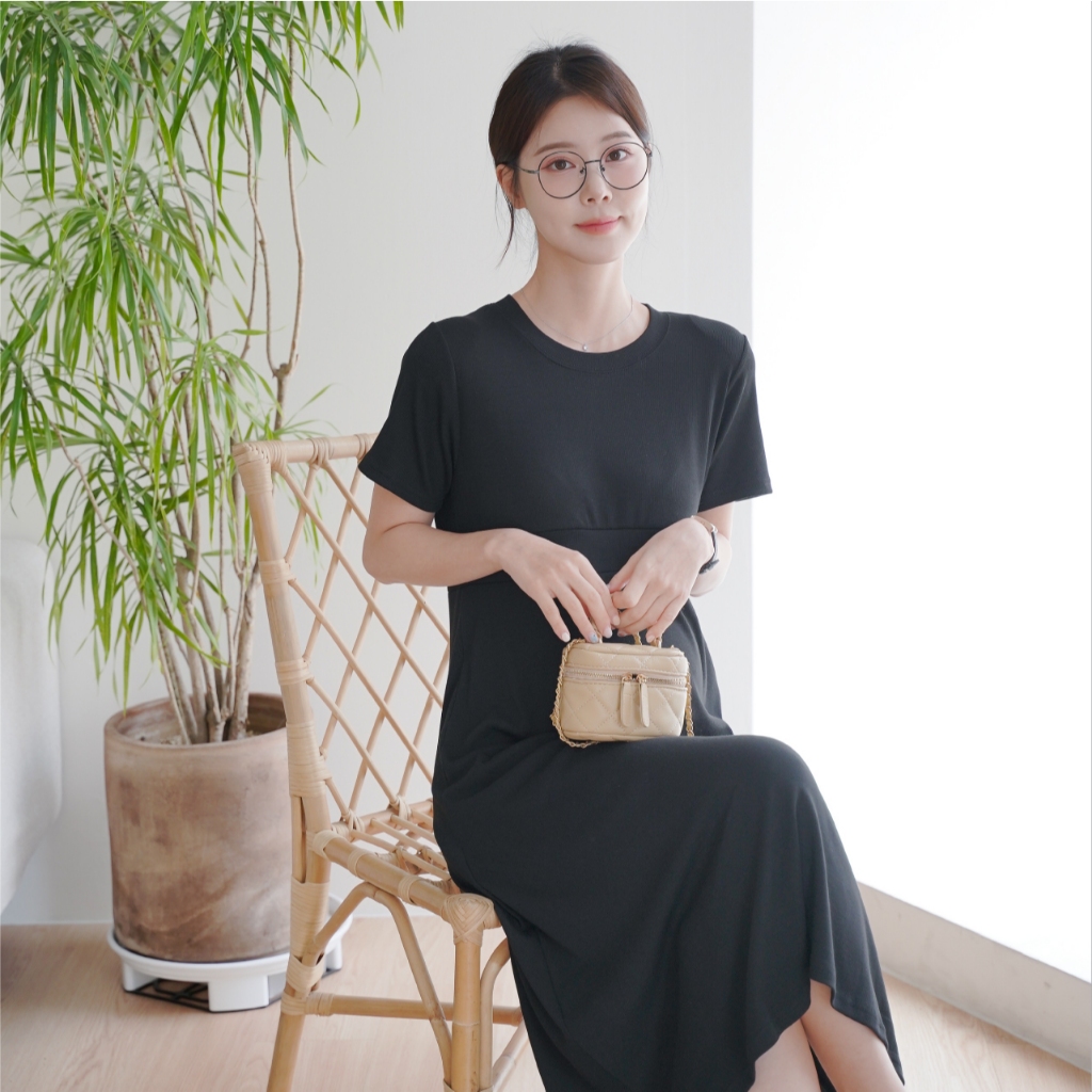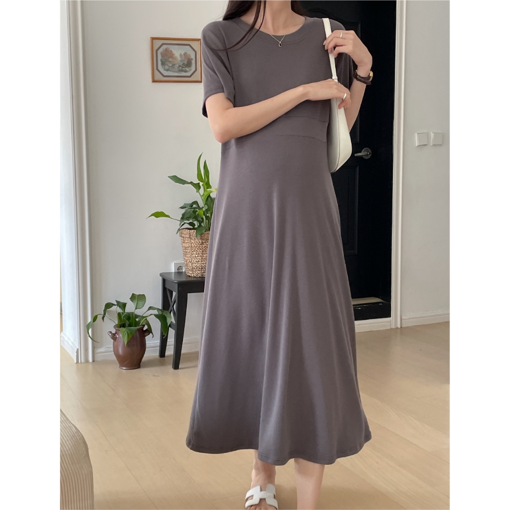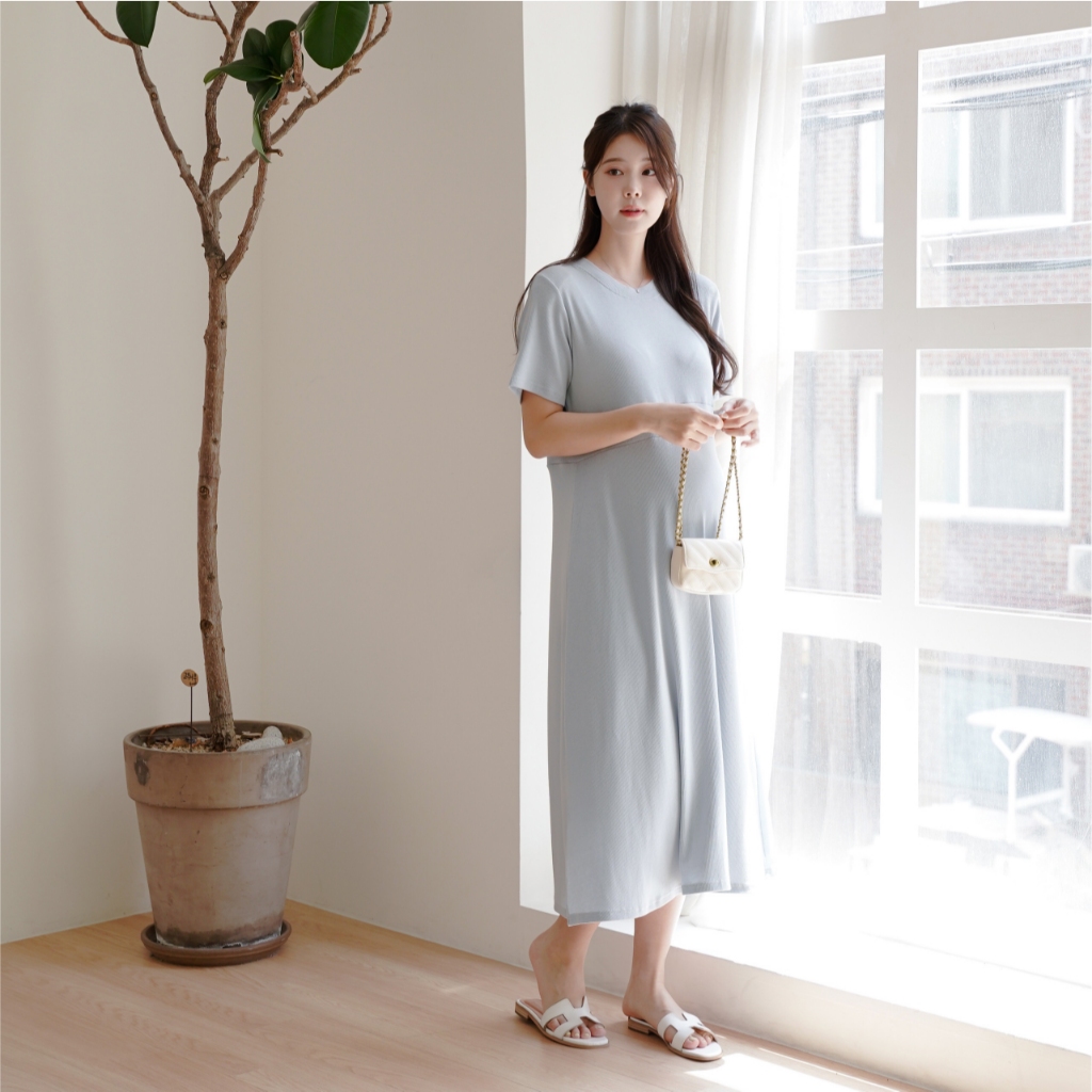 Mamamia孕婦裝 好氣質自然腰身孕婦洋裝 正韓製 孕婦裝 孕婦裙 洋裝 連身洋裝 孕婦洋裝 [D7608]淺藍|可可|深灰|黑Maternity DressesMamamia孕婦裝