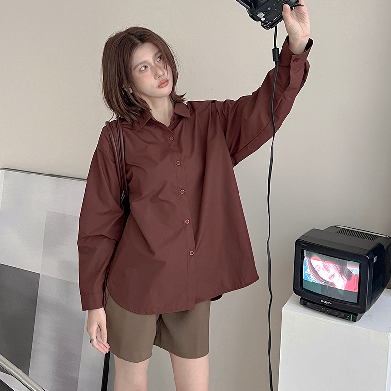 【HARPER】品牌自訂秋冬質感襯衫 | 現貨 長袖上衣 襯衫 秋冬【CLA24339H】美拉德紅,F|藍,F|白,FShirts & BlousesHARPER
