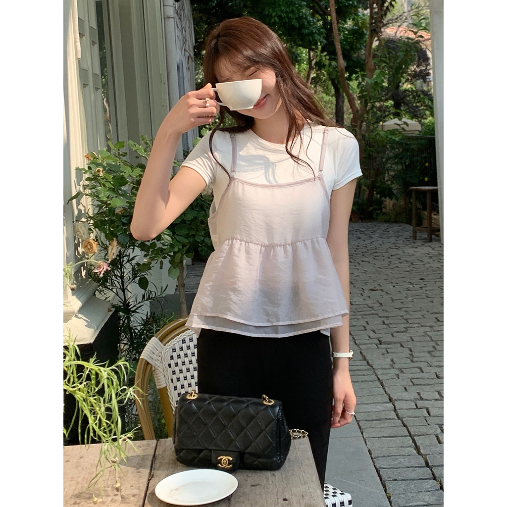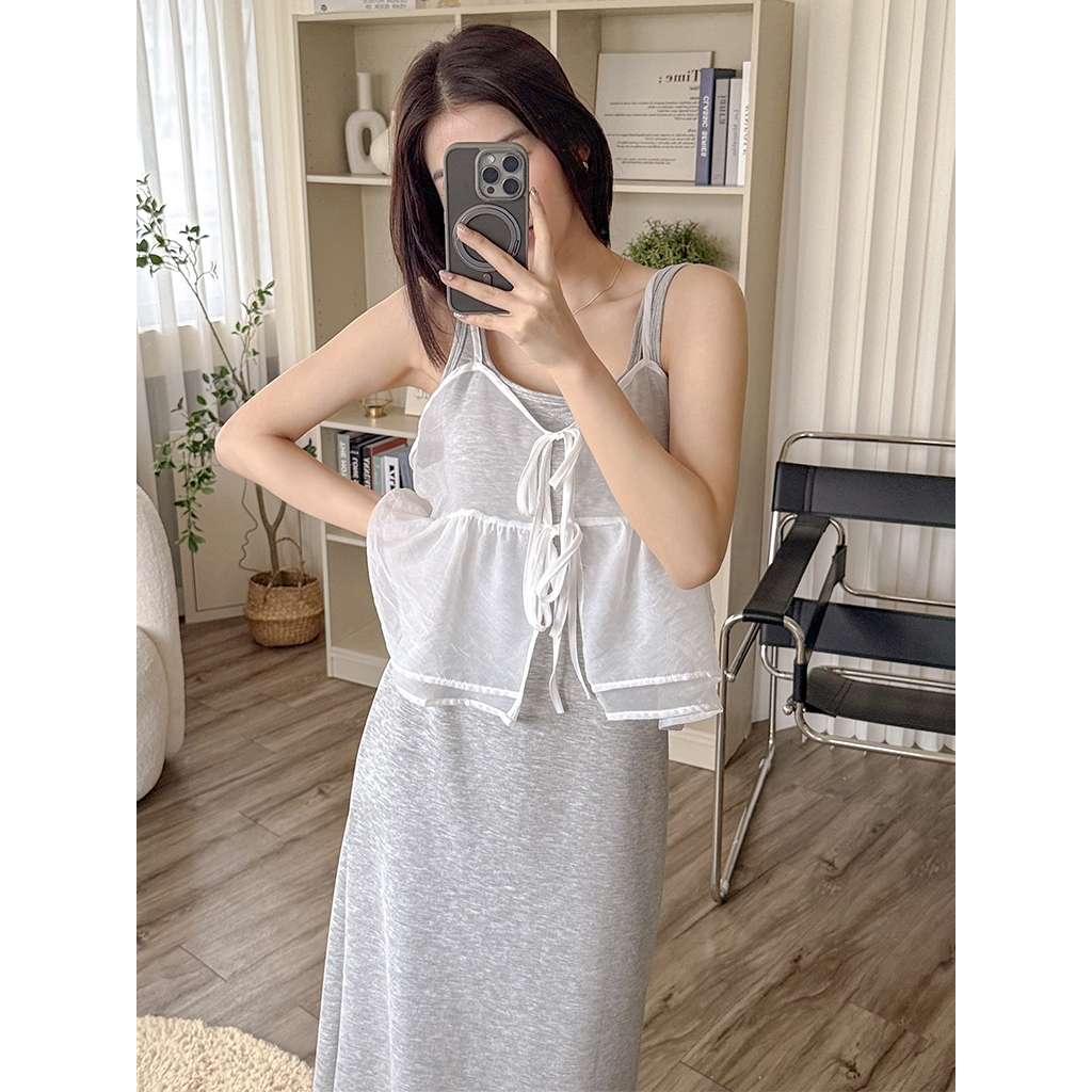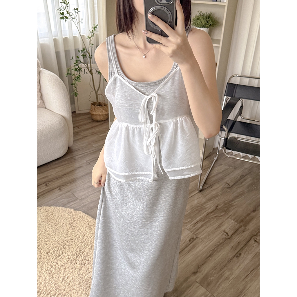 【HARPER】透膚雪紡雙層背心 | 現貨 無袖背心 透膚 外搭背心 雪紡【CLD97216J】白,F|灰,FTanks & CamisolesHARPER