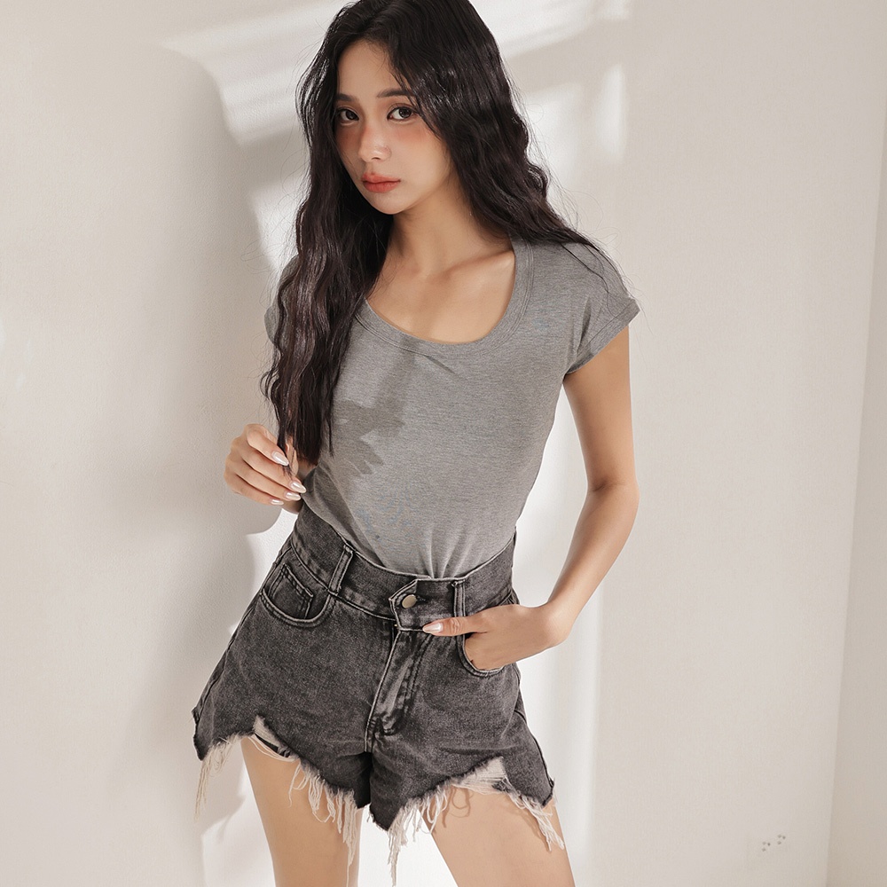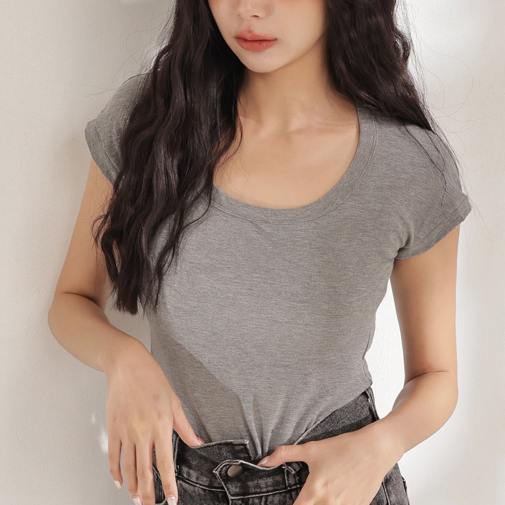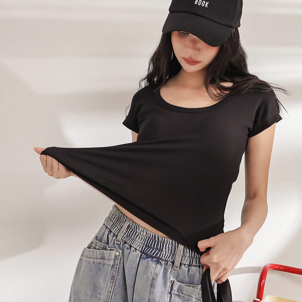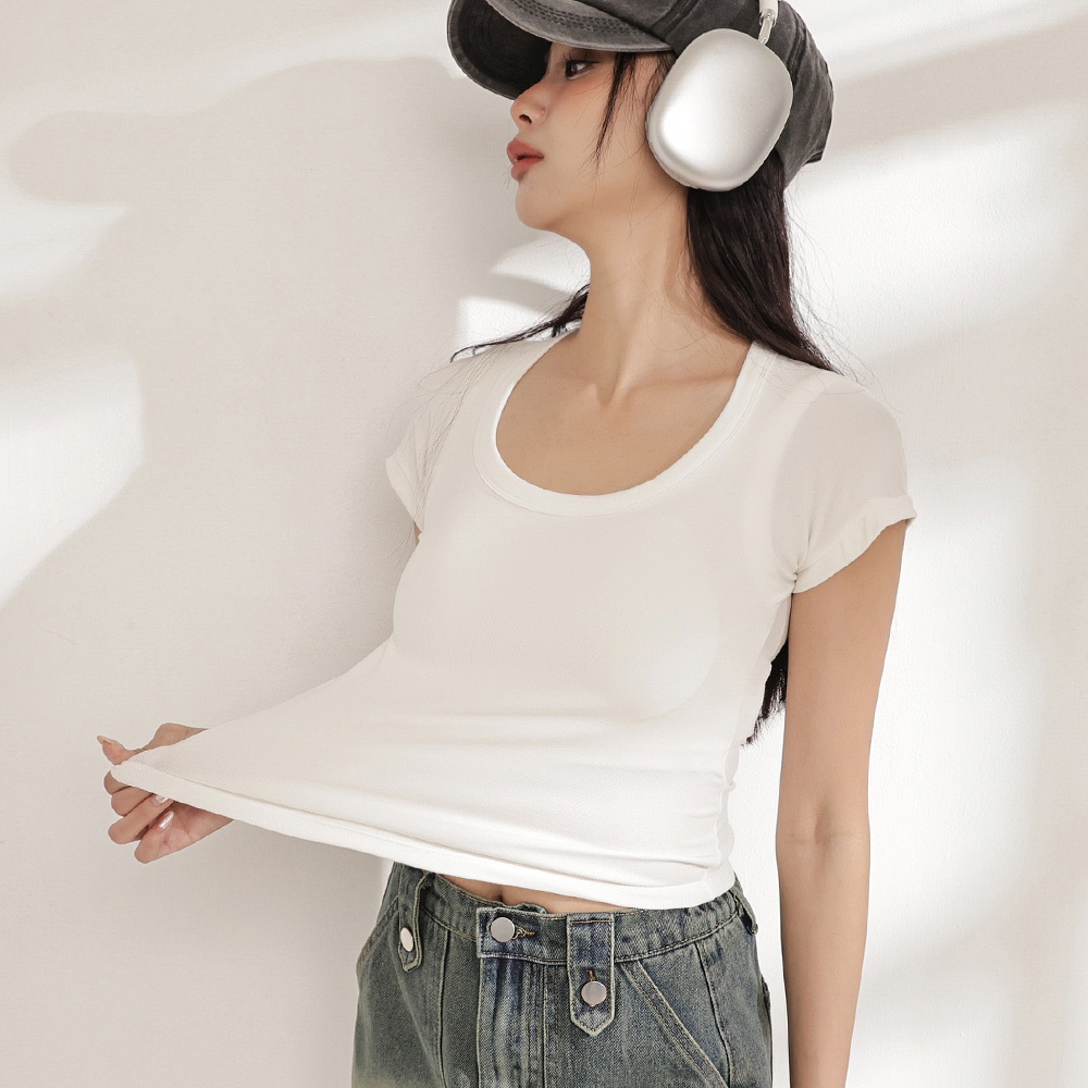 IN SHOP 圓領彈力Bra上衣-共3色【KT223661】白|花灰|黑T-shirtsIN’ SHOP 旗艦店