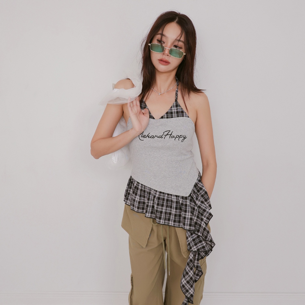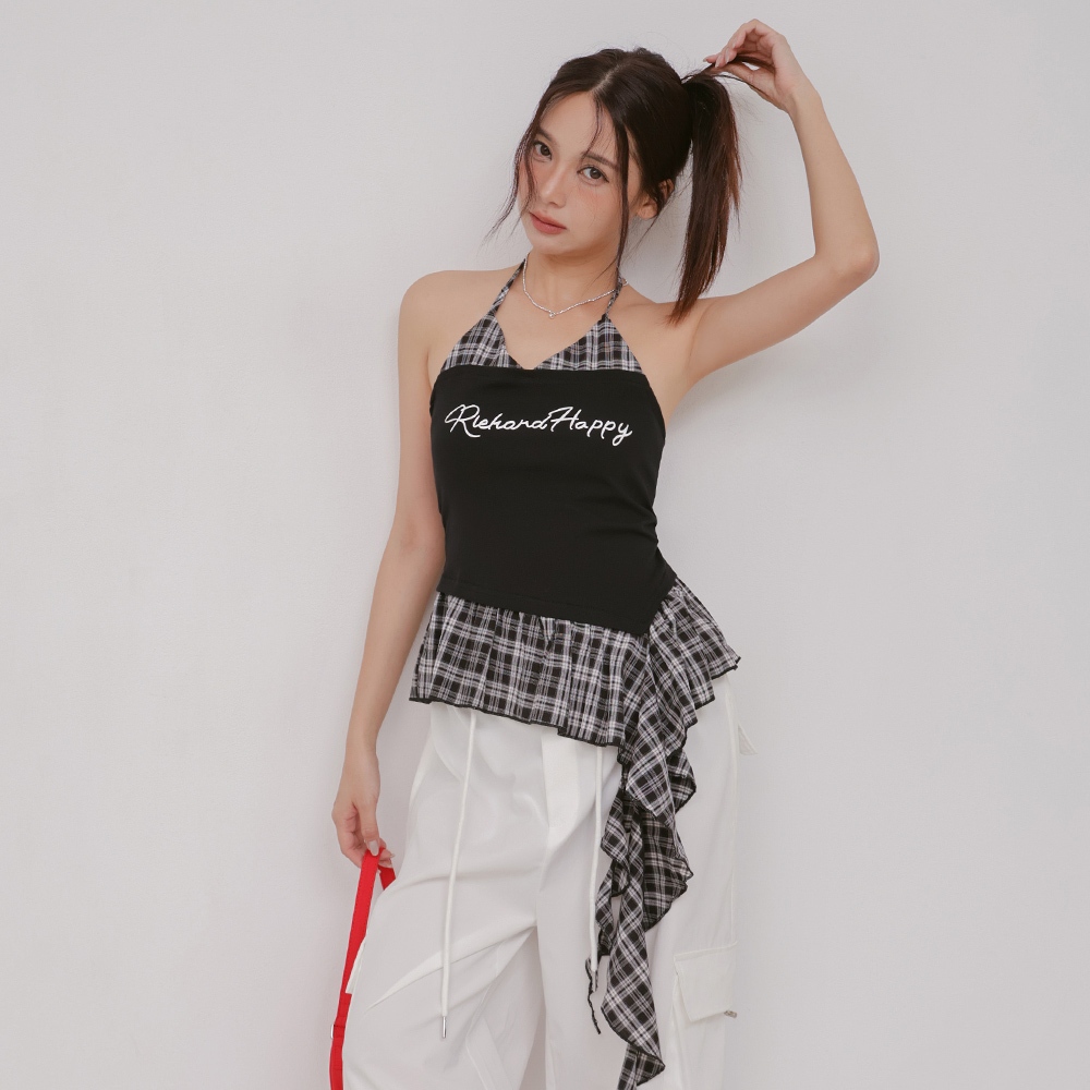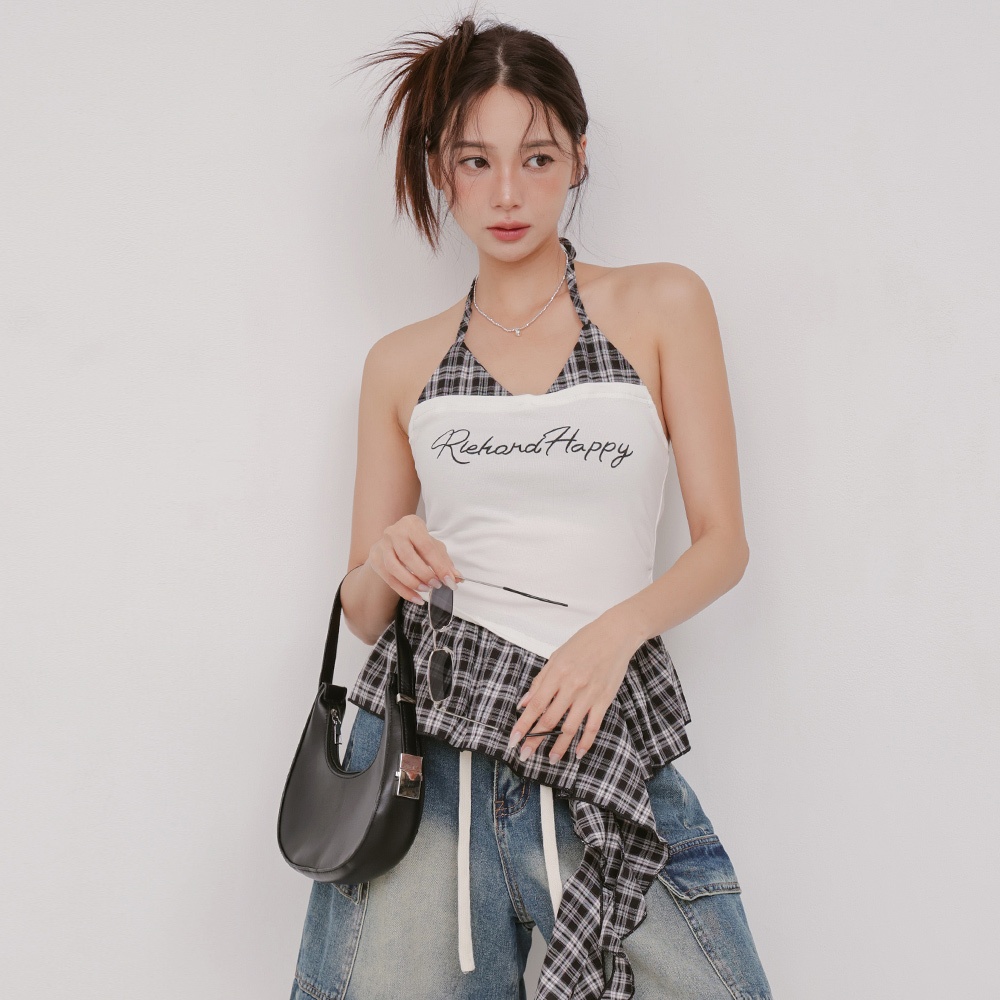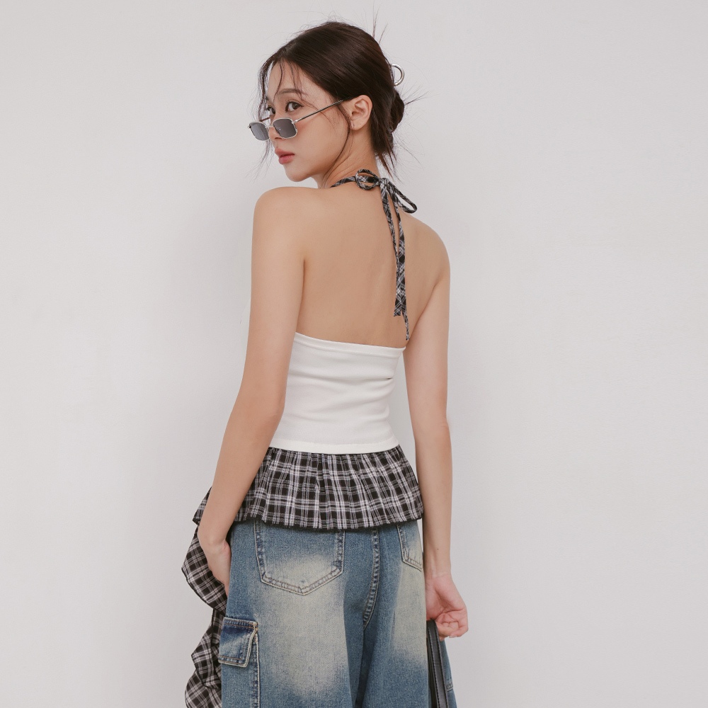 IN SHOP 拚格紋綁脖假兩件背心-共3色【KT224534】白|灰|黑OthersIN’ SHOP 旗艦店