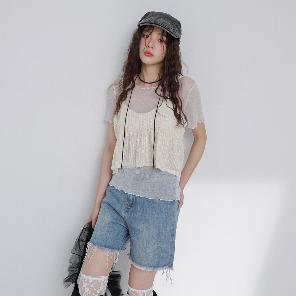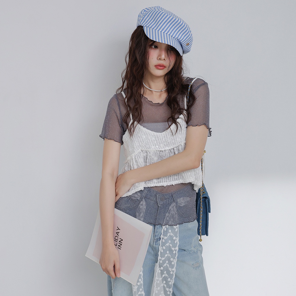 IN SHOP 微閃銀灰系網紗上衣-共3色【KT224428】白|淺灰|深灰OthersIN’ SHOP 旗艦店