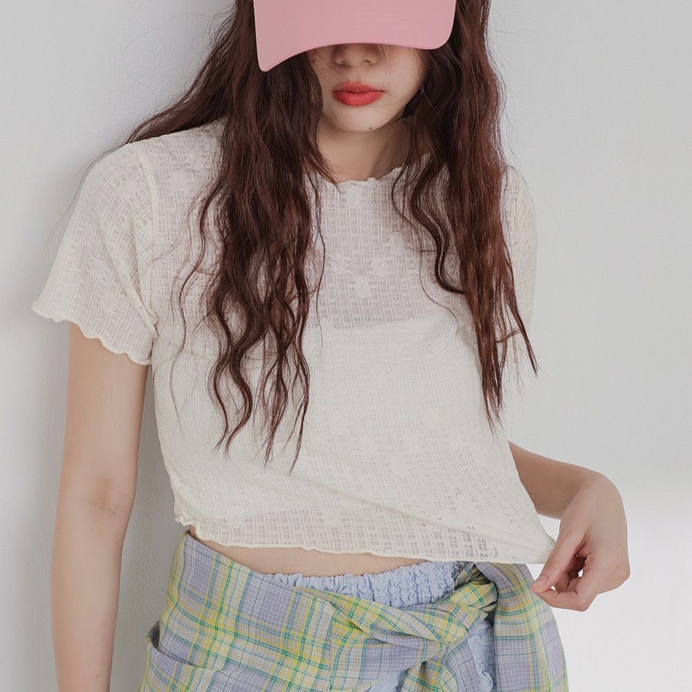 IN SHOP 緹花紋微透上衣-共2色【KT224452】白|杏T-shirtsIN’ SHOP 旗艦店