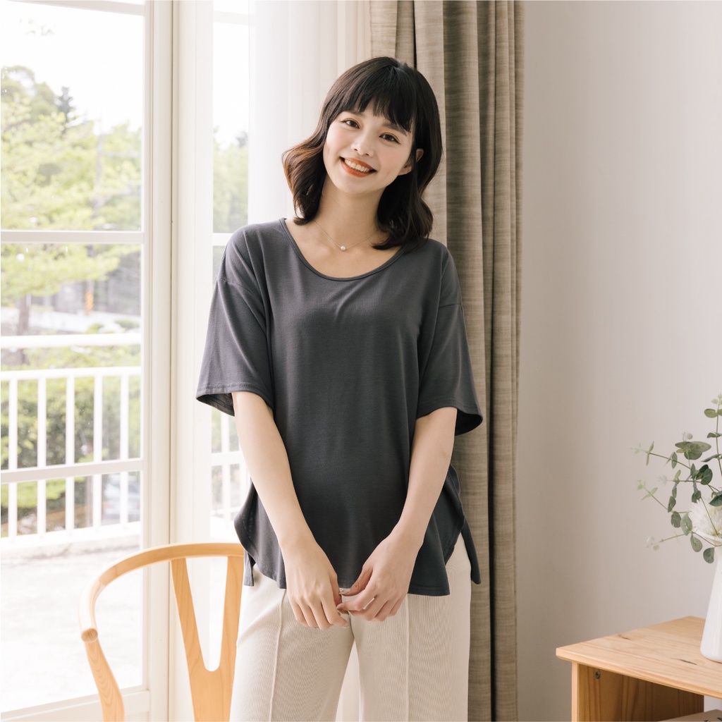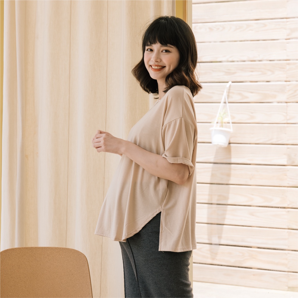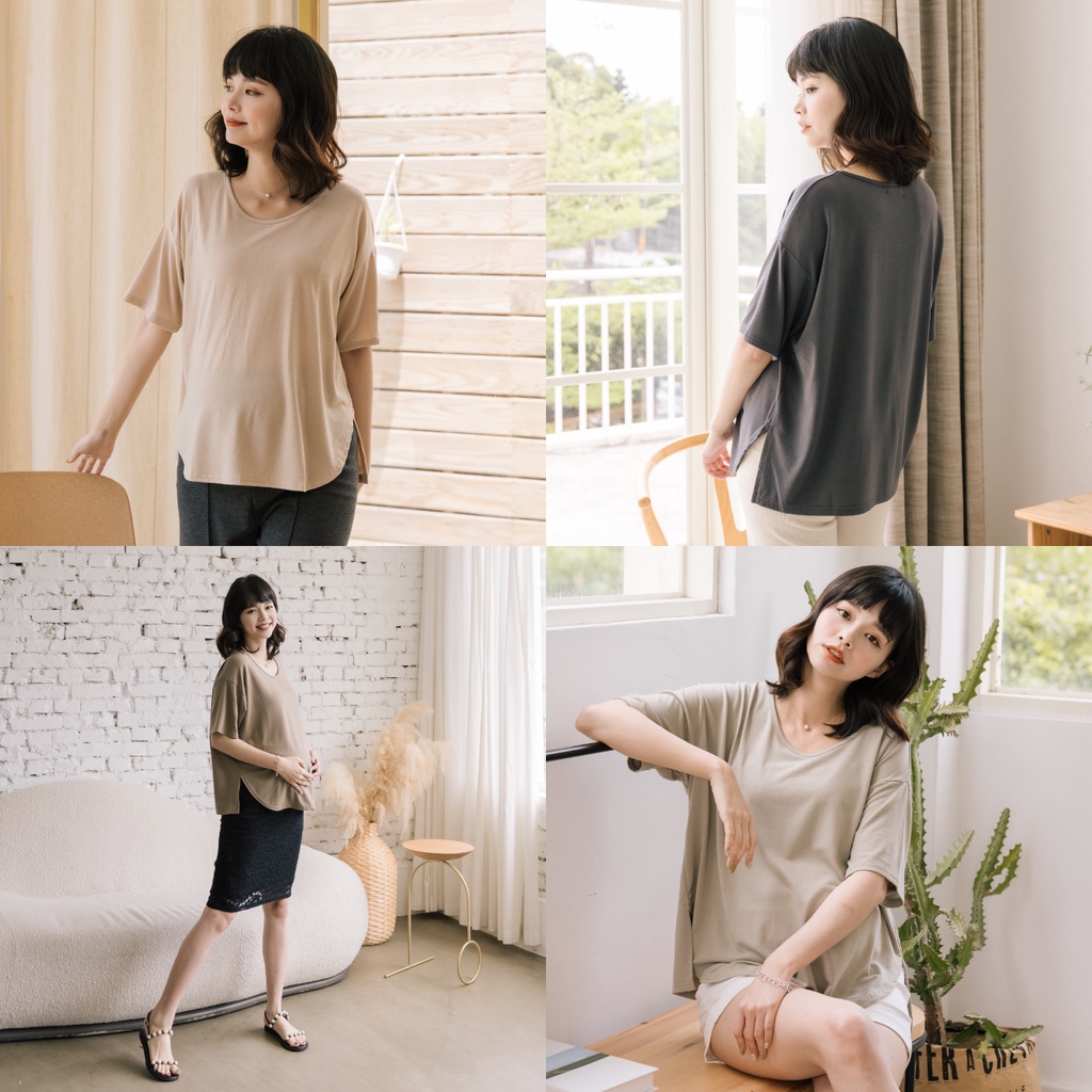 Mamamia孕婦裝 日常感親膚圓領側開岔孕婦裝 正韓製 短袖 孕婦上衣 寬T 百搭T T恤 [A1777]煙燻粉|咖啡|奶茶杏|深灰|灰綠|白Maternity TopsMamamia孕婦裝