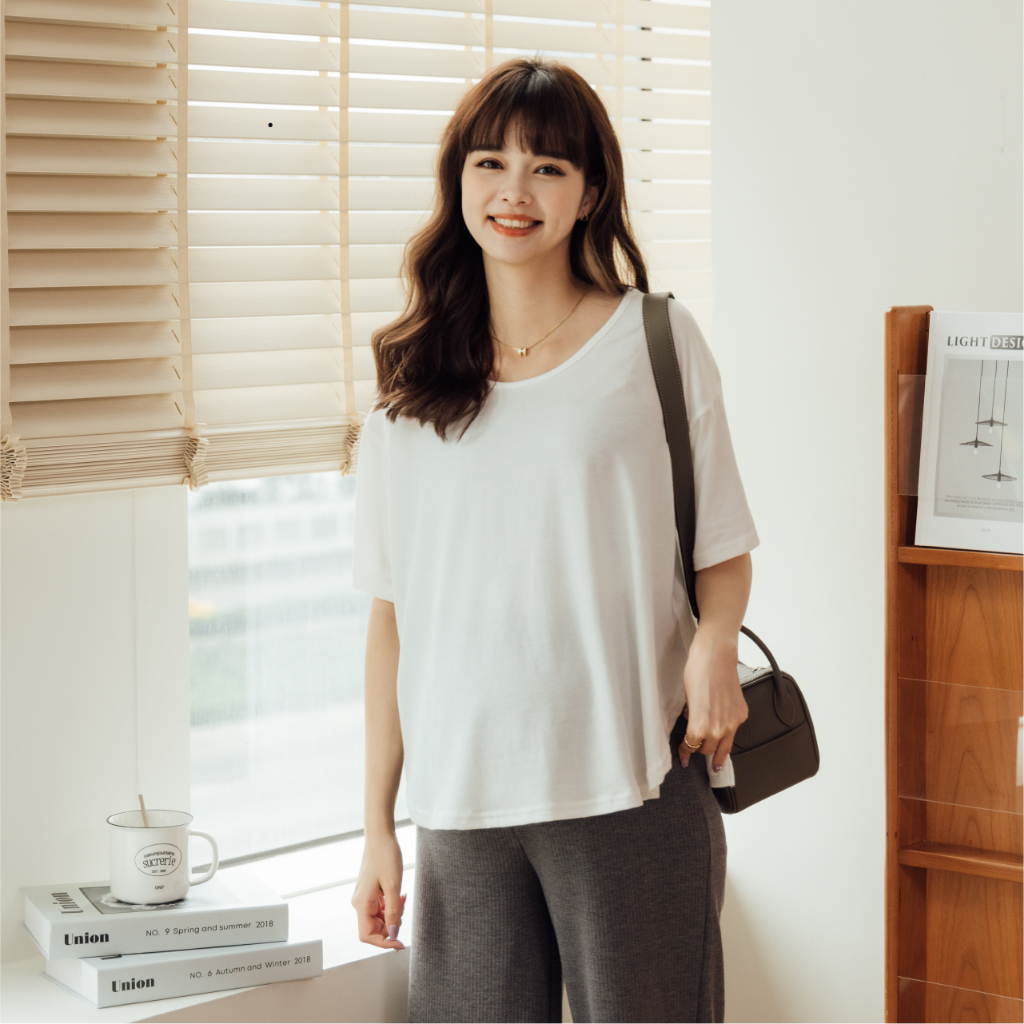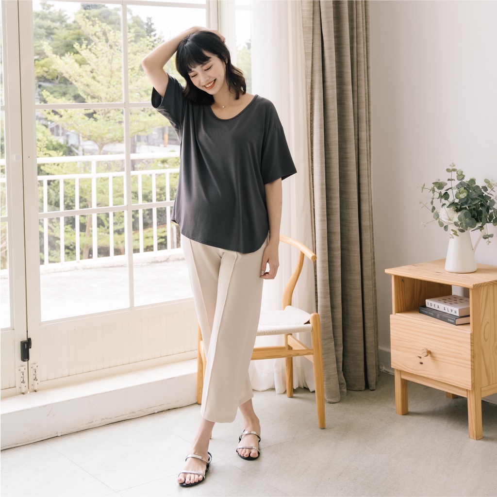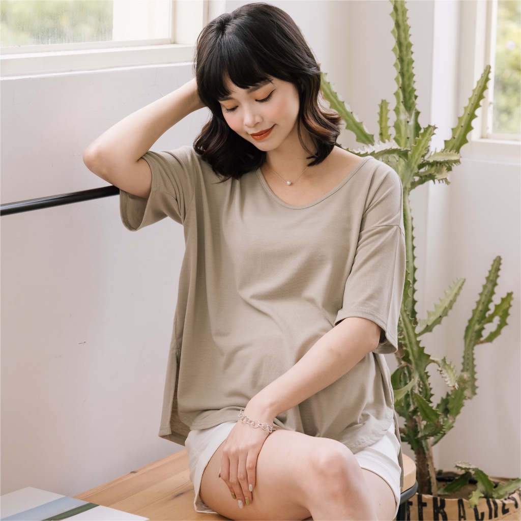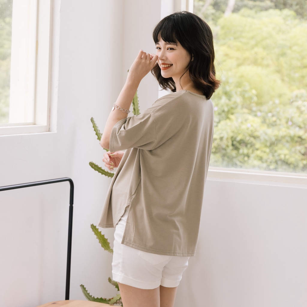 Mamamia孕婦裝 日常感親膚圓領側開岔孕婦裝 正韓製 短袖 孕婦上衣 寬T 百搭T T恤 [A1777]煙燻粉|咖啡|奶茶杏|深灰|灰綠|白Maternity TopsMamamia孕婦裝