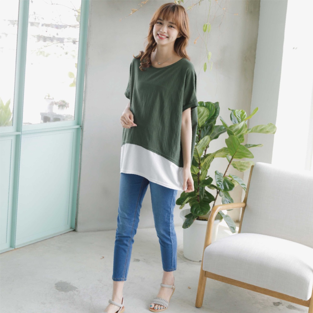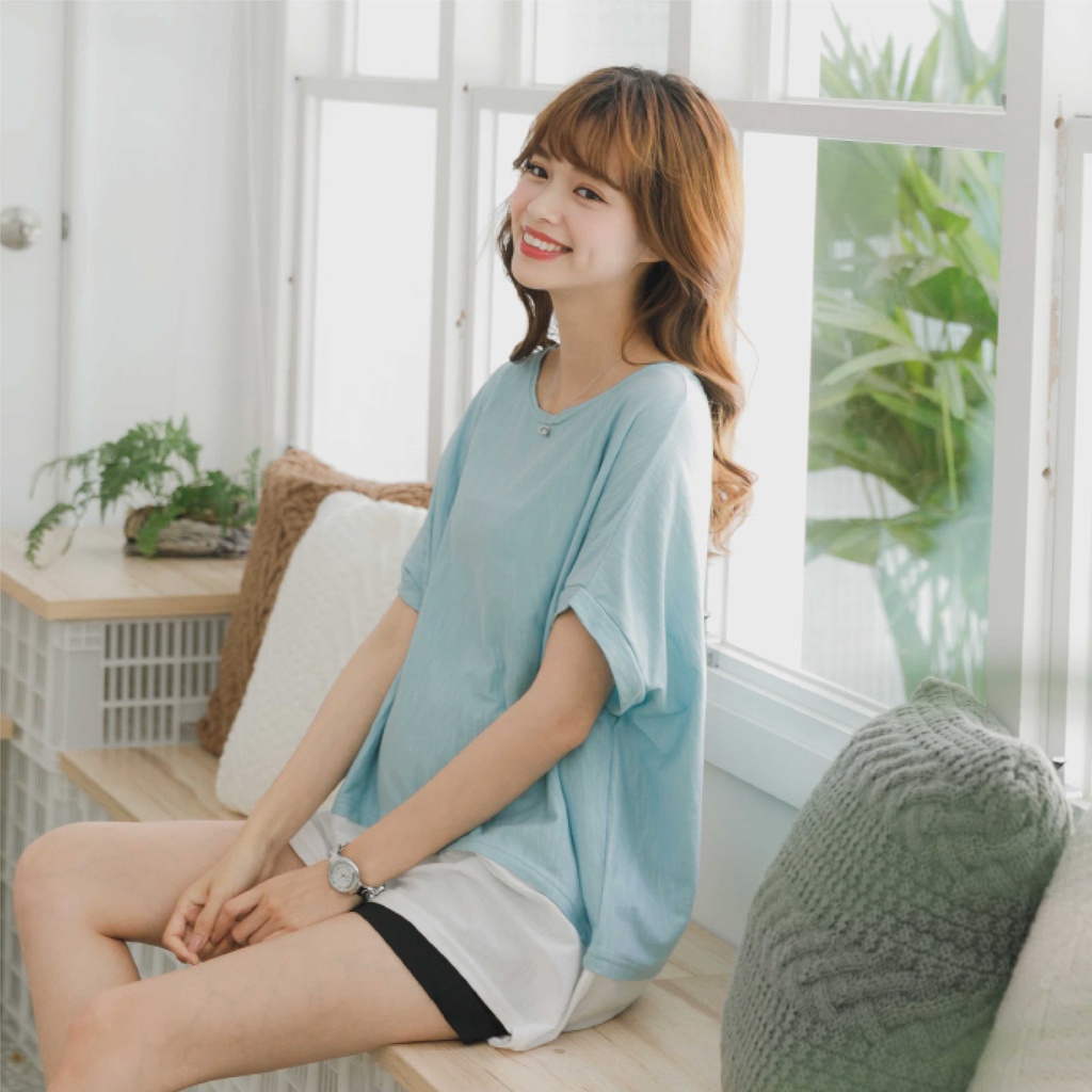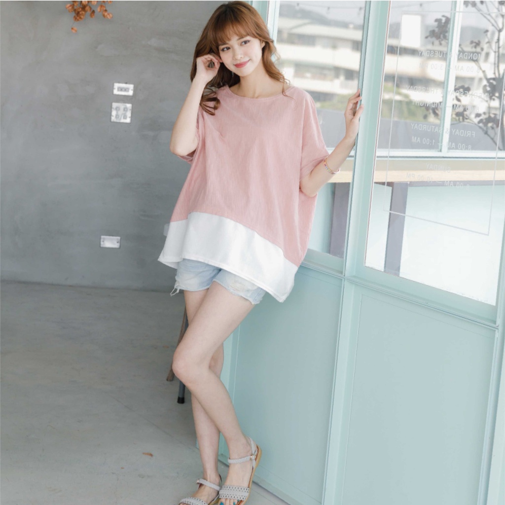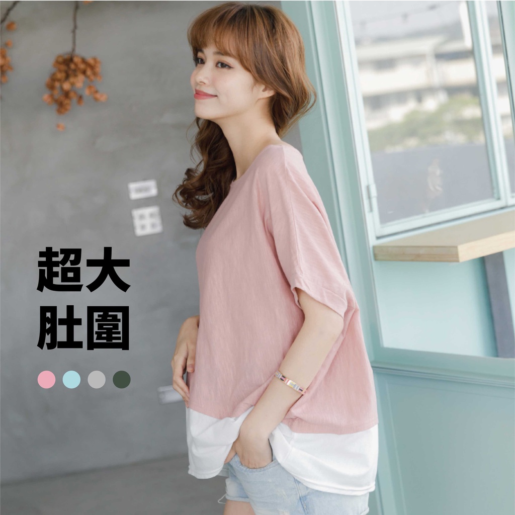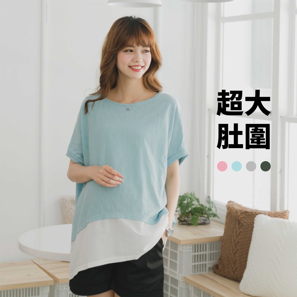 Mamamia孕婦裝 配色落肩孕婦上衣 正韓製 孕婦裝 短袖 寬T 長版上衣[C3059]湖水綠|灰|粉Maternity TopsMamamia孕婦裝