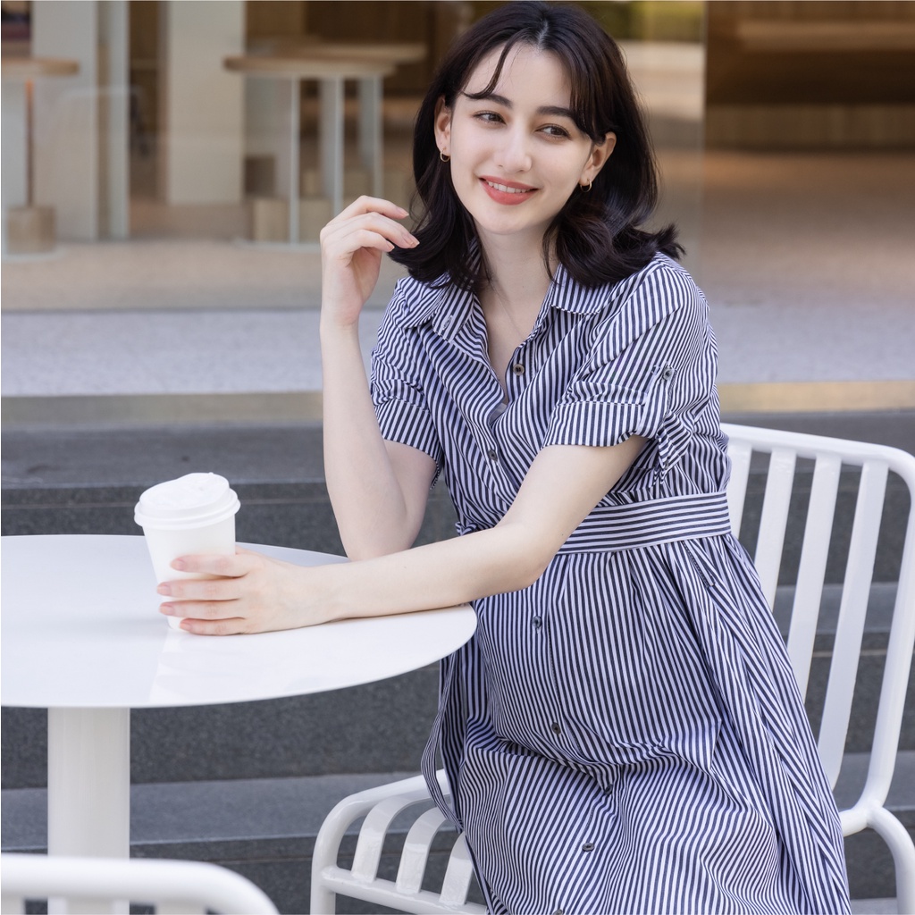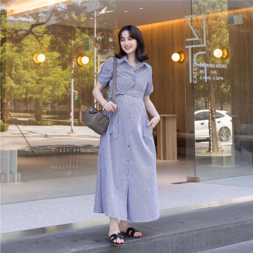 Mamamia孕婦裝 簡約質感腰綁帶哺乳洋裝 正韓製 孕婦裝 孕婦裙 孕婦洋裝 喂奶衣 短袖 [A1841]黑,L|黑,XL|杏,L|杏,XLBreastfeeding WearMamamia孕婦裝