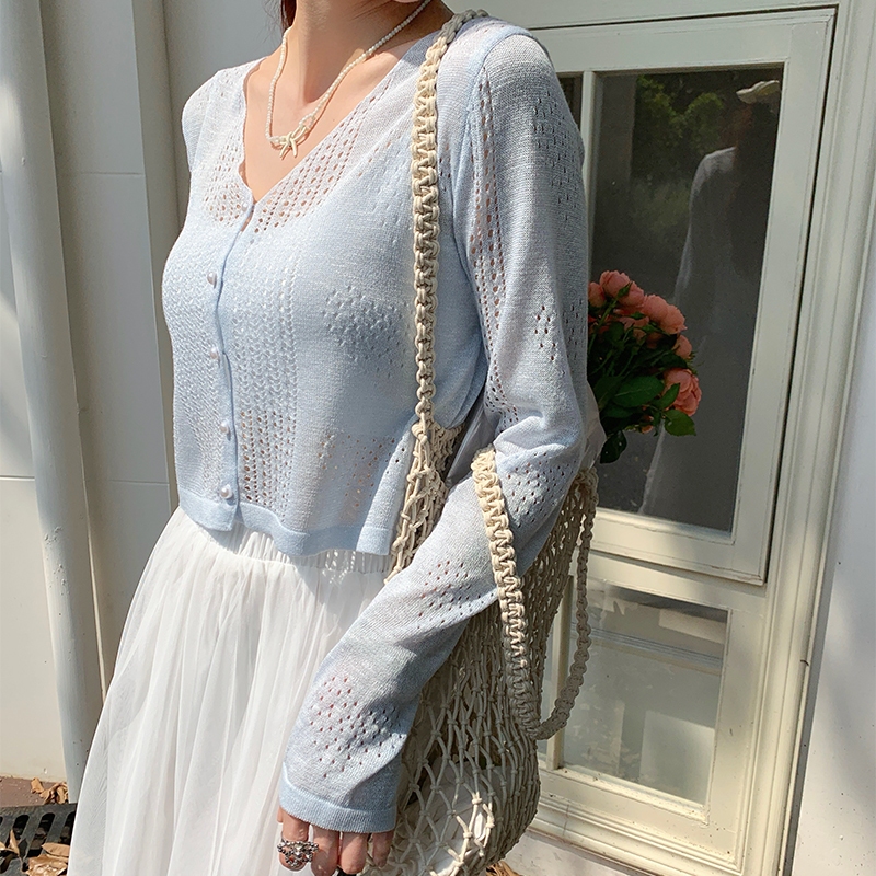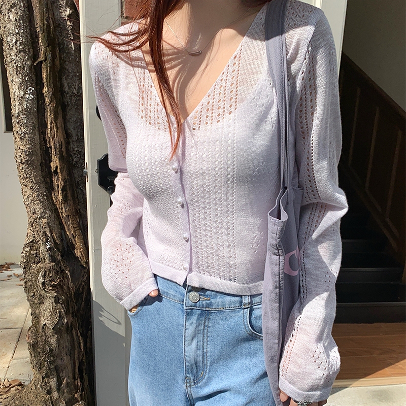【HARPER】仙甜愛心簍空針織外套 | 現貨 針織外套 透膚 薄外套【JTA35530J】米白|藍|紫HARPER