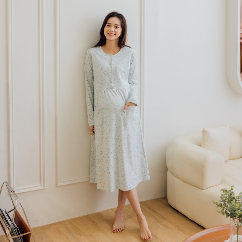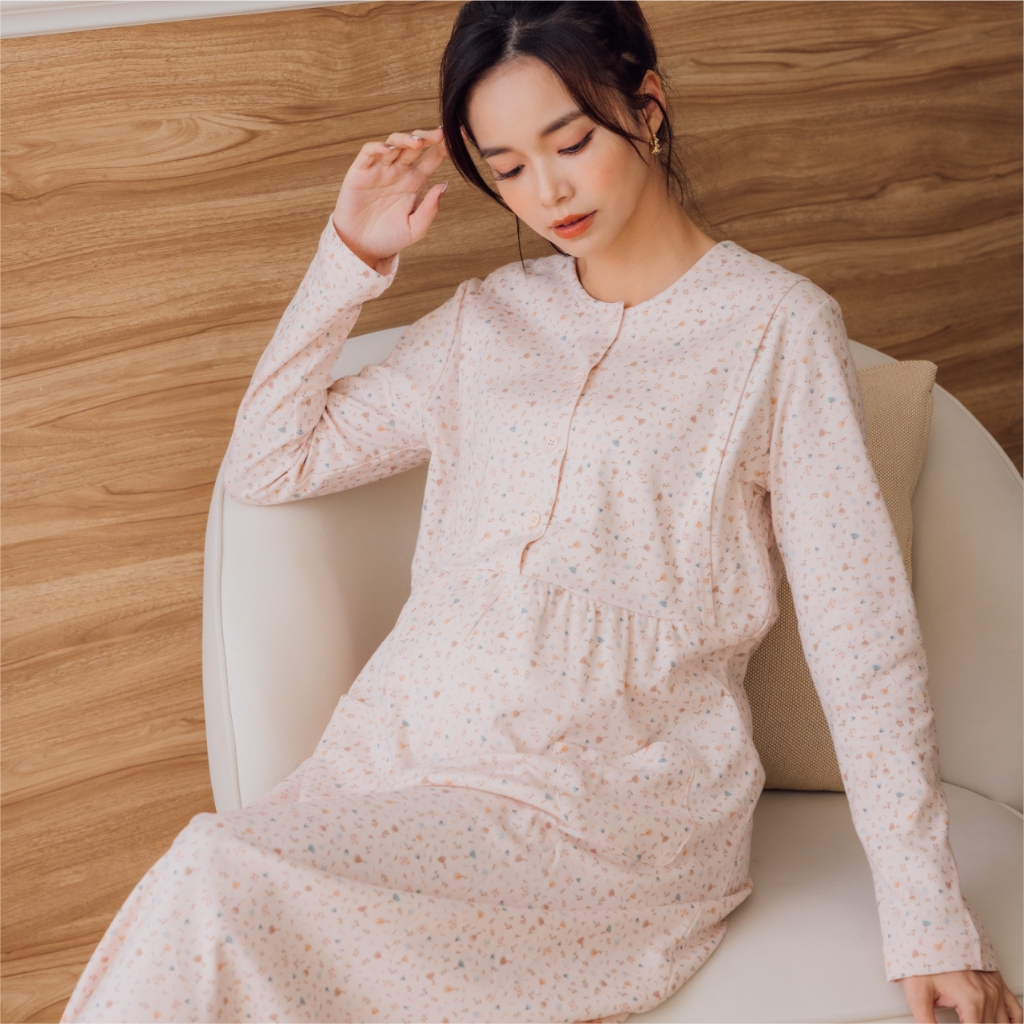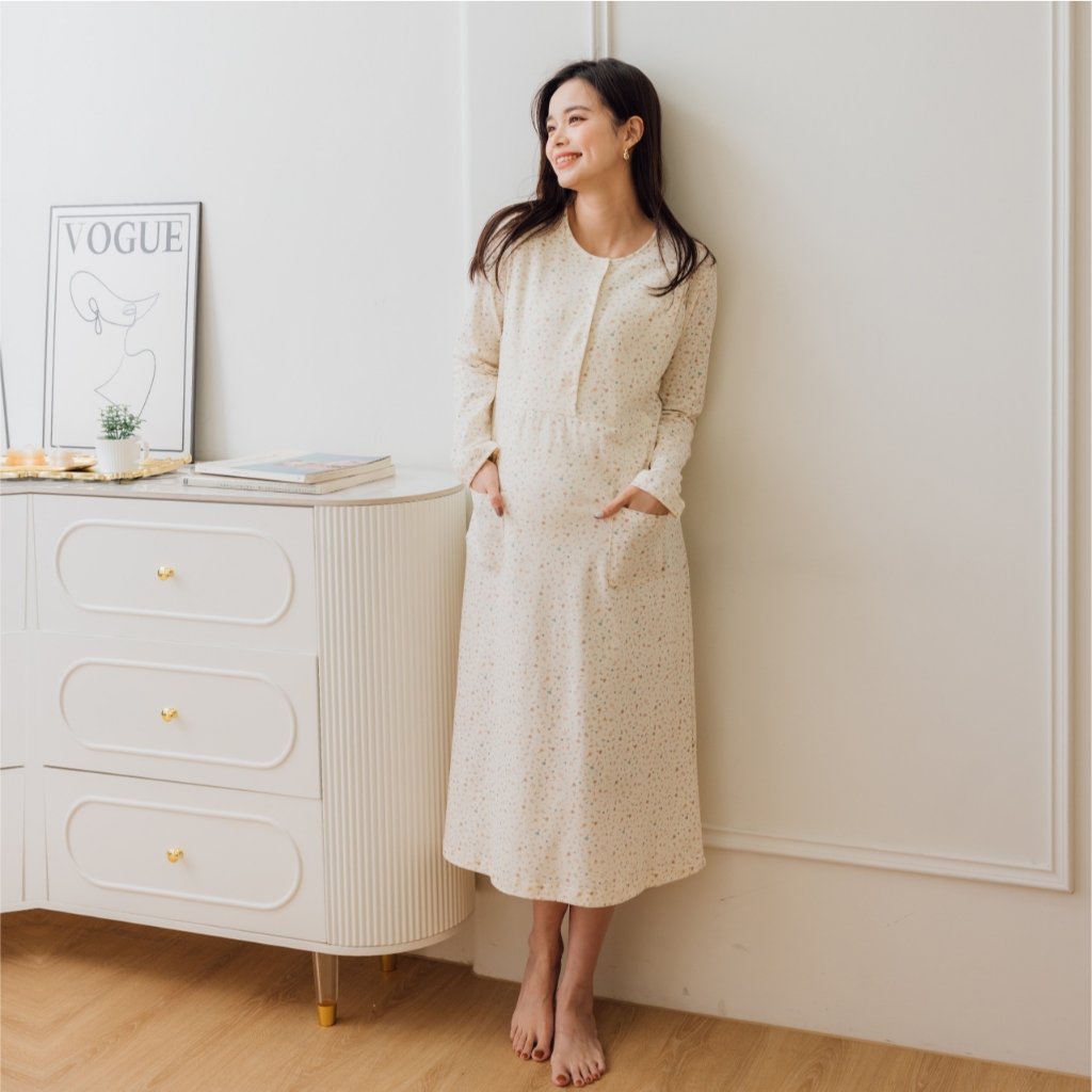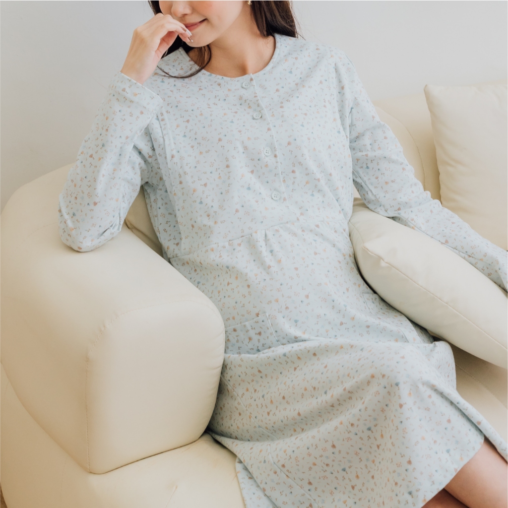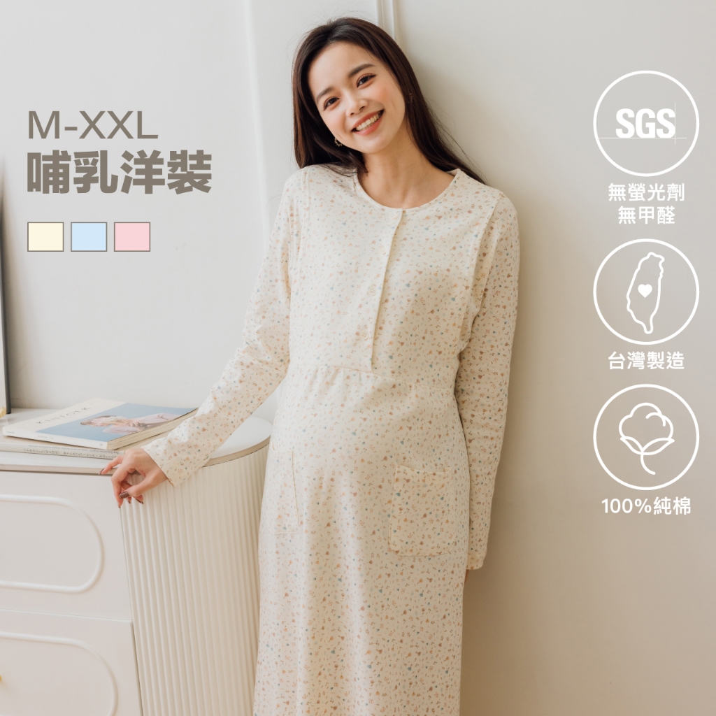 Mamamia孕婦裝 寧靜小花純棉哺乳居家洋 M~XXL 台灣製 哺乳洋裝 居家服 哺乳衣 月子服 [A1963]黃,M|黃,L|黃,XL|黃,XXL|粉,M|粉,L|粉,XL|粉,XXL|藍,M|藍,L|藍,XL|藍,XXLBreastfeeding WearMamamia孕婦裝