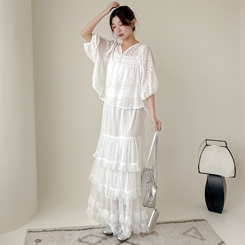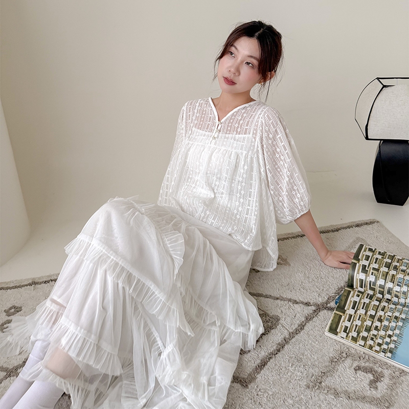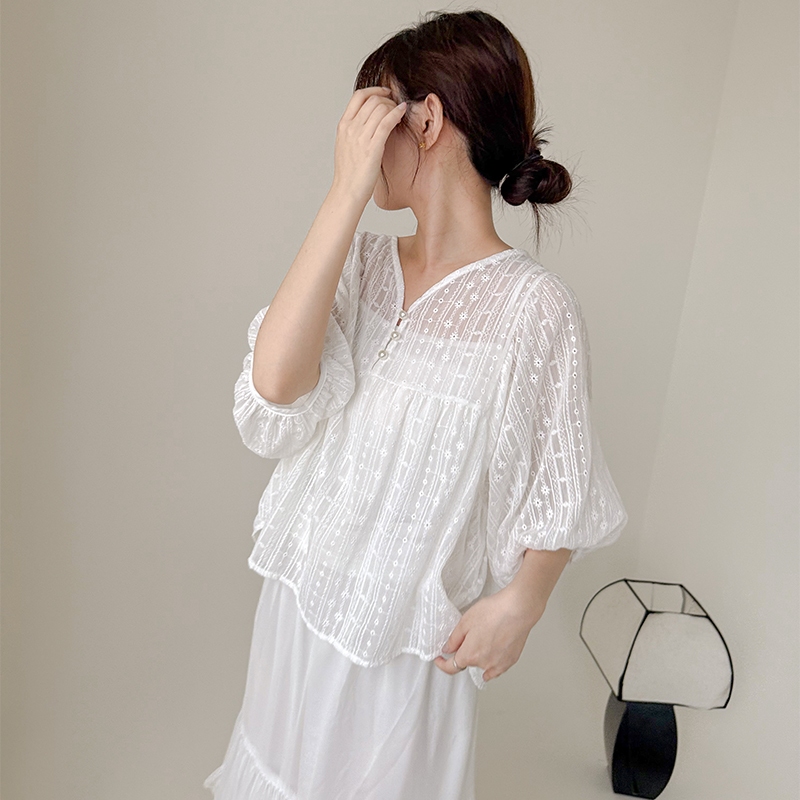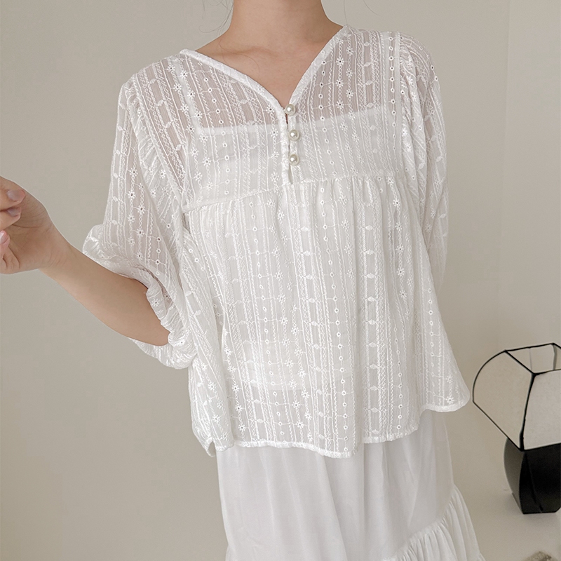 【HARPER】兩件式背心+珍珠釦緹花上衣 | 現貨 兩件式 背心 外搭【CLE79321J】白,FIndividual SetsHARPER