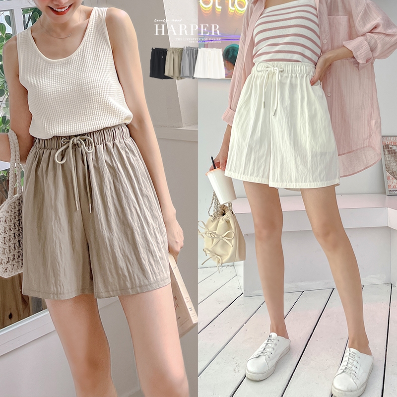 【HARPER】冰涼抽繩短褲 |現貨 短褲 涼感 休閒【PNC40128H】米白,F|卡其綠,F|灰,F|黑,FShortsHARPER