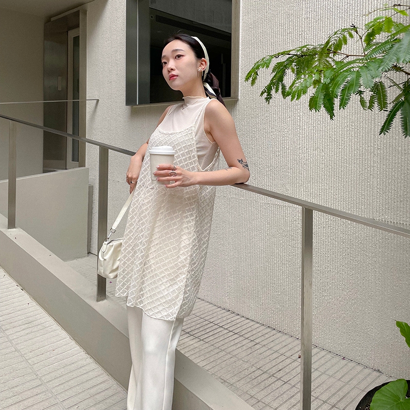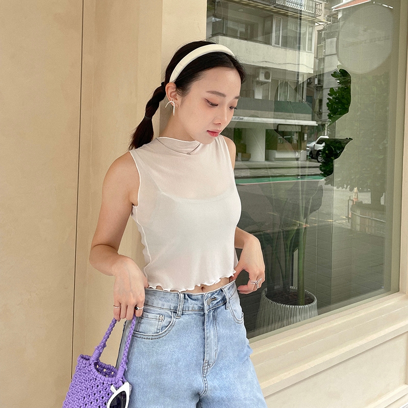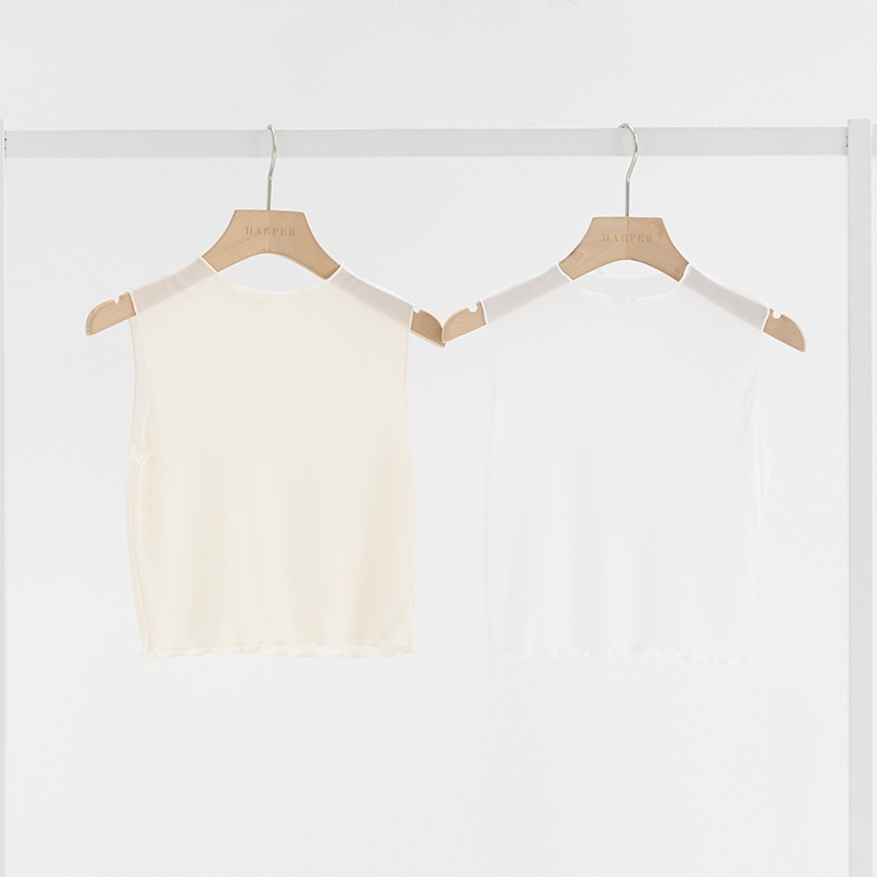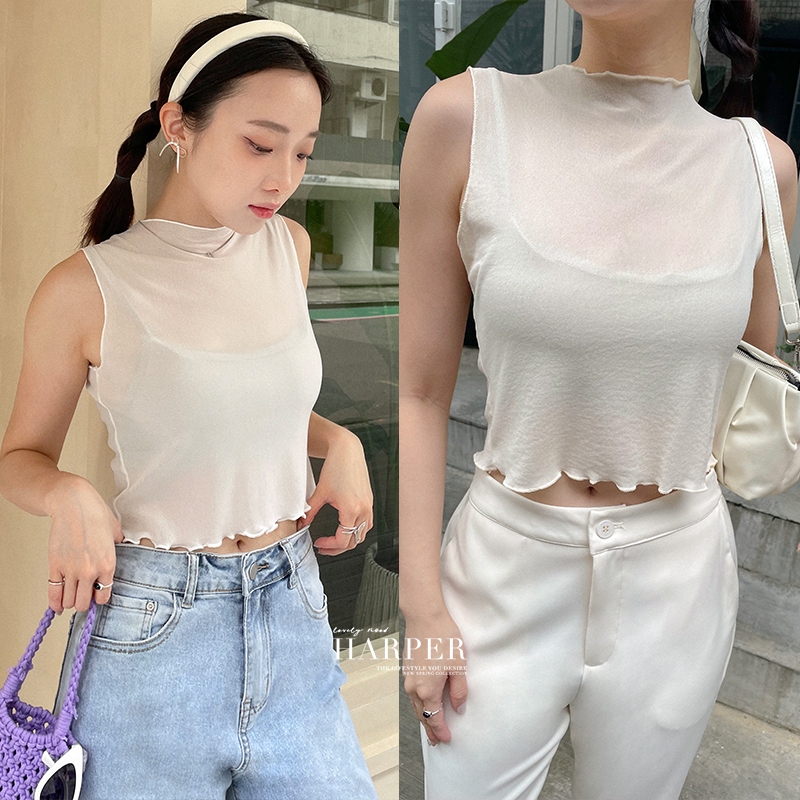 【HARPER】木耳邊微透膚背心 | 現貨 無袖 上衣 背心 透膚【CLE75324H】白,F|杏,FOthersHARPER