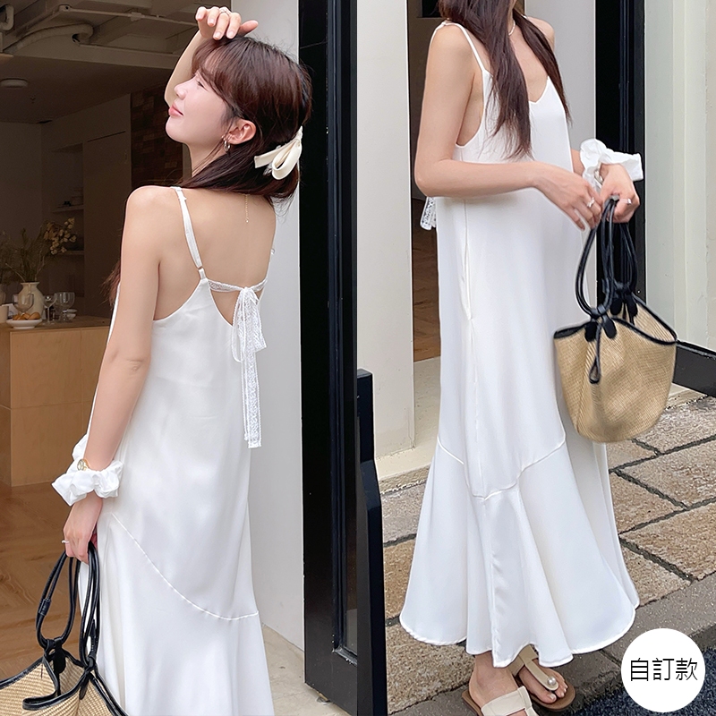 【HARPER】品牌自訂後蕾絲綁帶魚尾洋裝 | 現貨 魚尾 無袖洋裝 細肩帶【DSB49121J】奶油白,S~M|奶油白,L~XL|霧沁綠,S~M|霧沁綠,L~XLHARPER