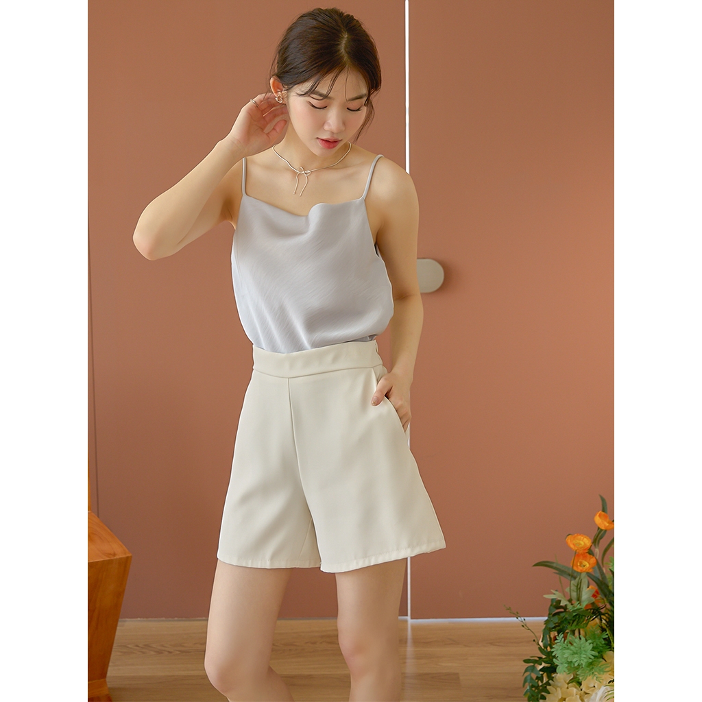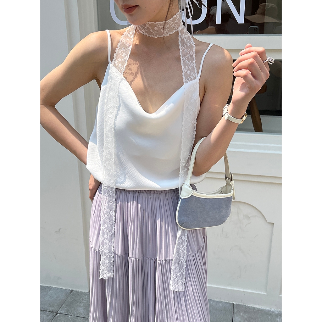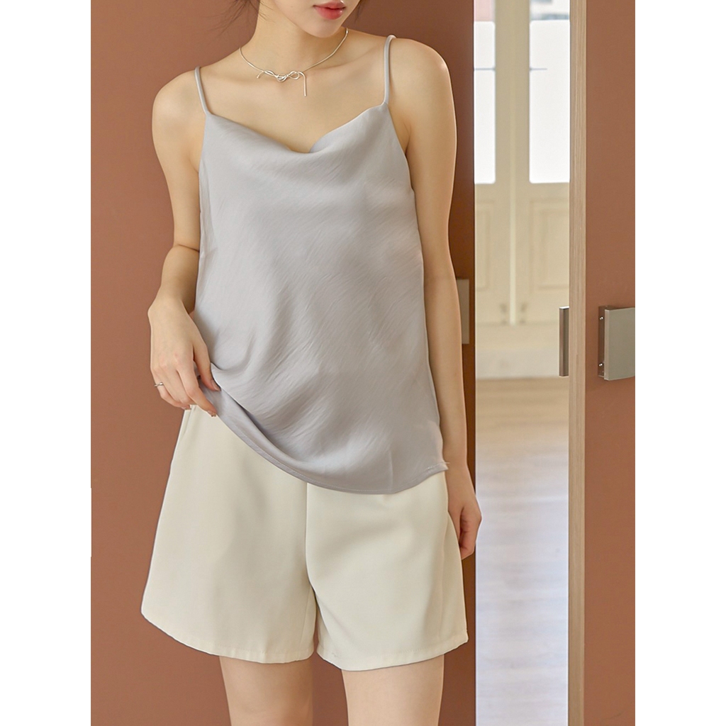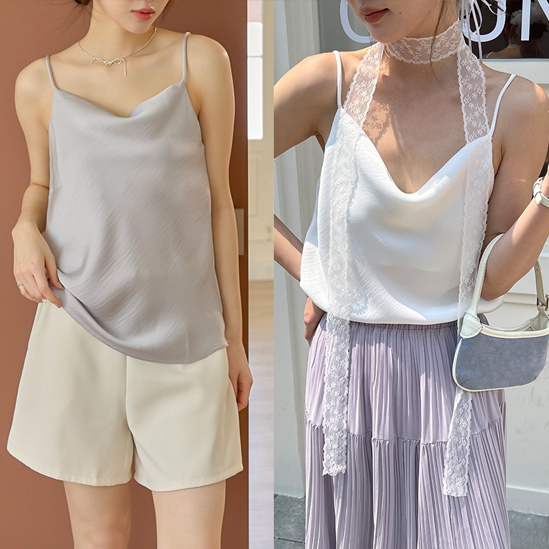 【HARPER】高級感緞面背心 | 現貨 無袖上衣 背心 婚禮 光澤感 緞面【CLD24215J】白,F|奶杏,F|灰藍,FTanks & CamisolesHARPER