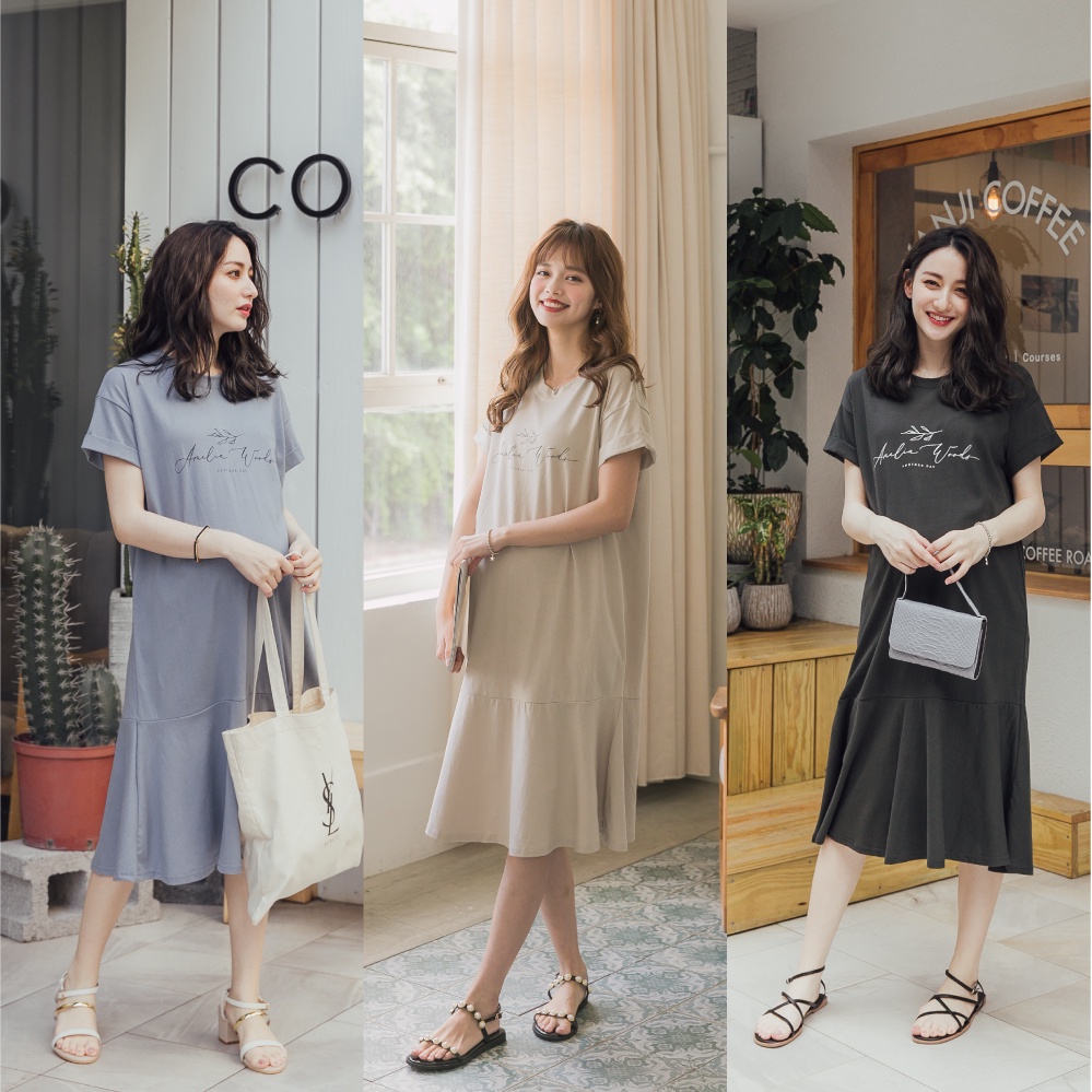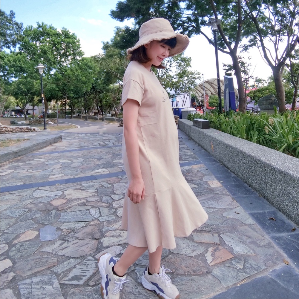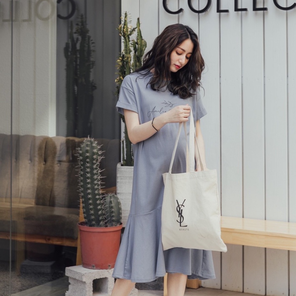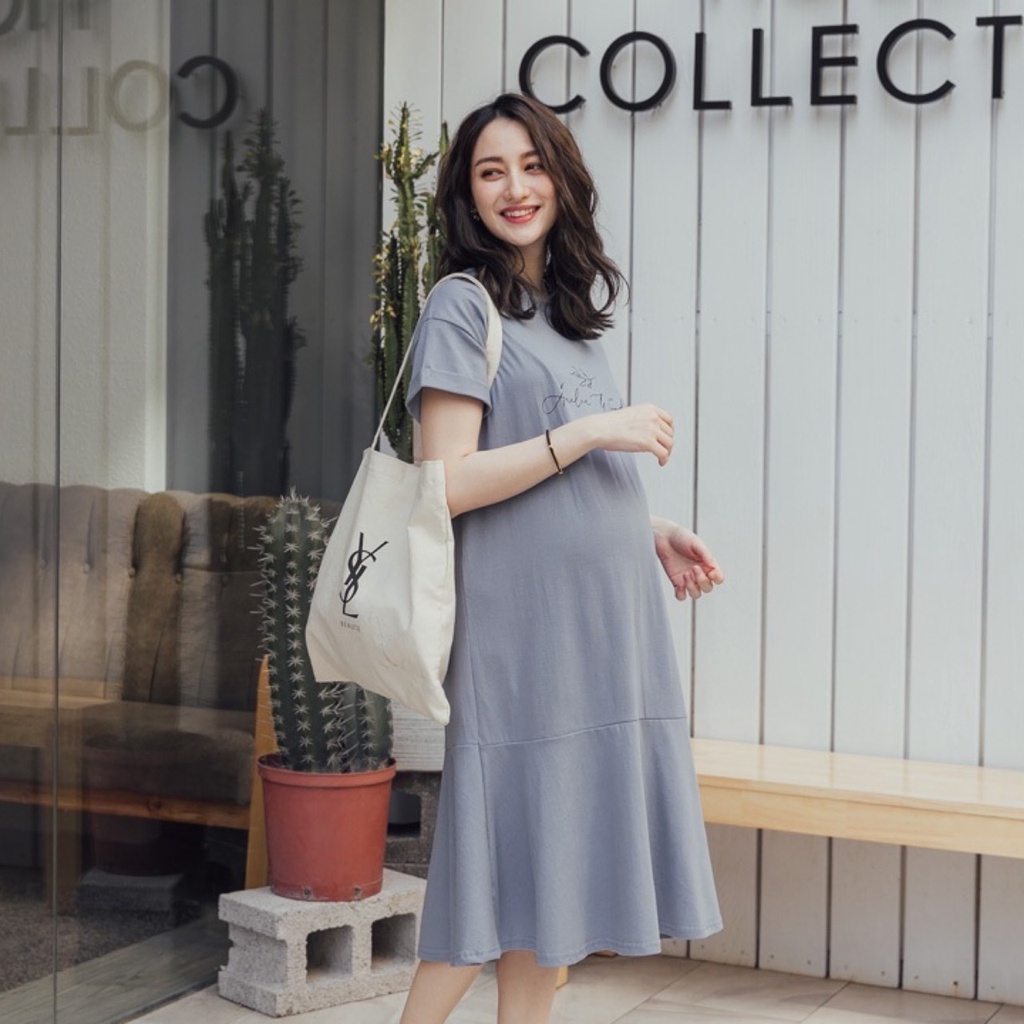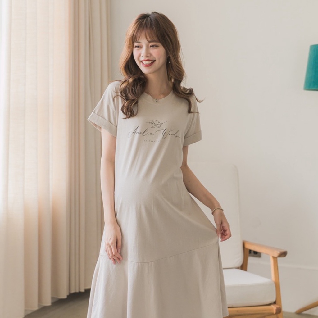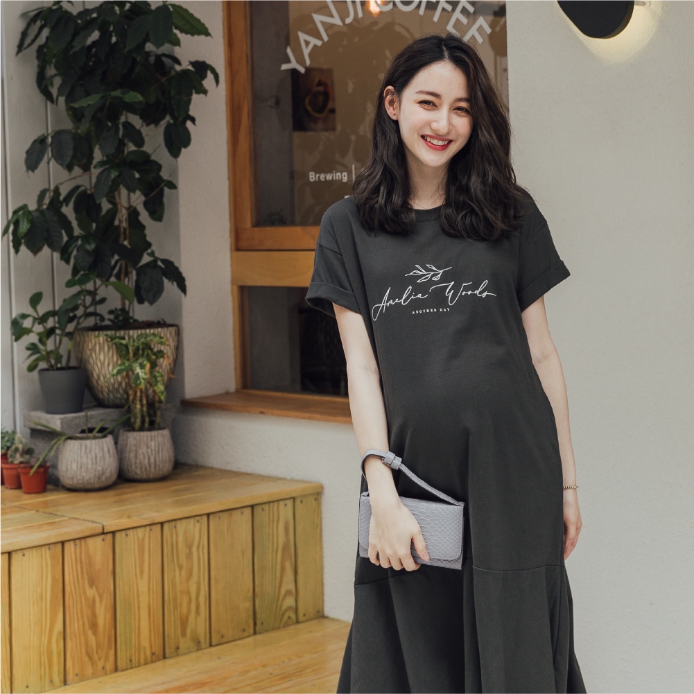 Mamamia孕婦裝 英文字反折袖魚尾洋孕婦裝 正韓製 短袖 孕婦裙 孕婦連身裙 連身洋裝 孕婦洋 [D7079]奶茶|墨綠|藍Maternity DressesMamamia孕婦裝