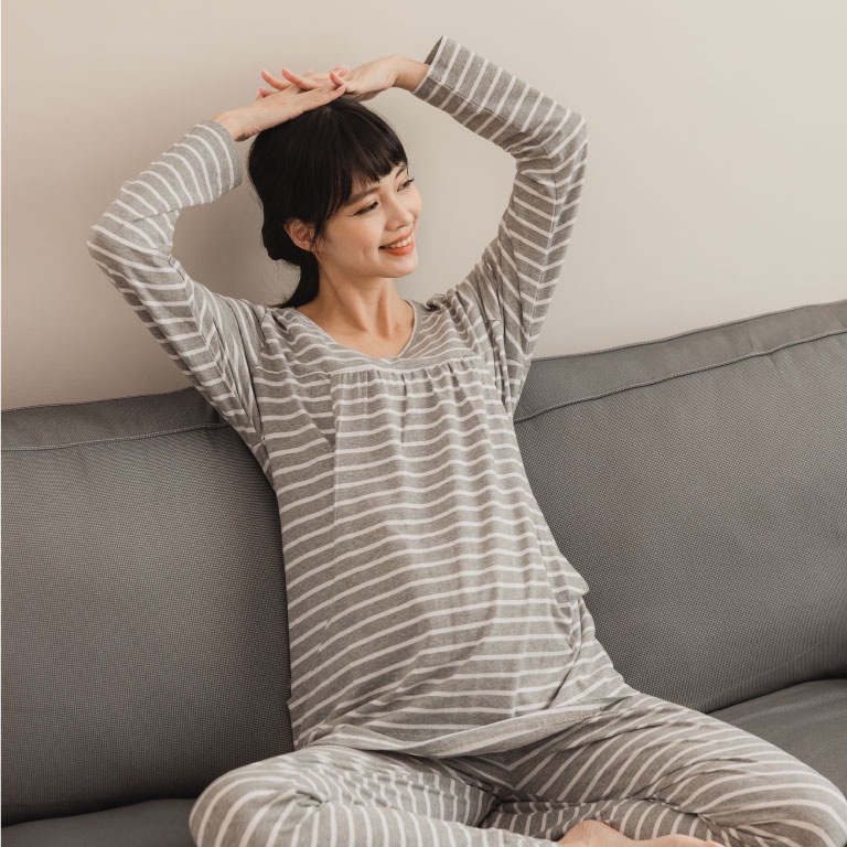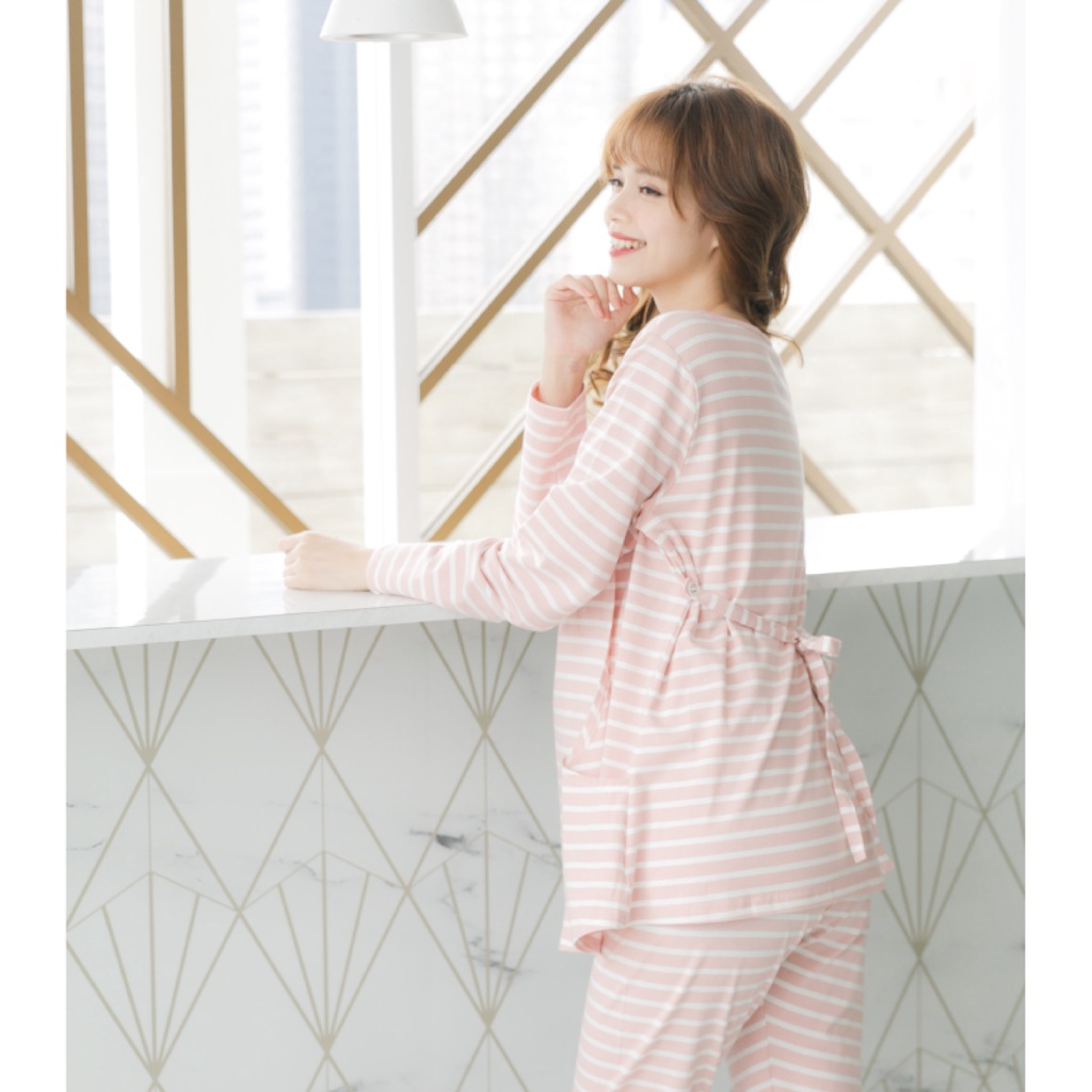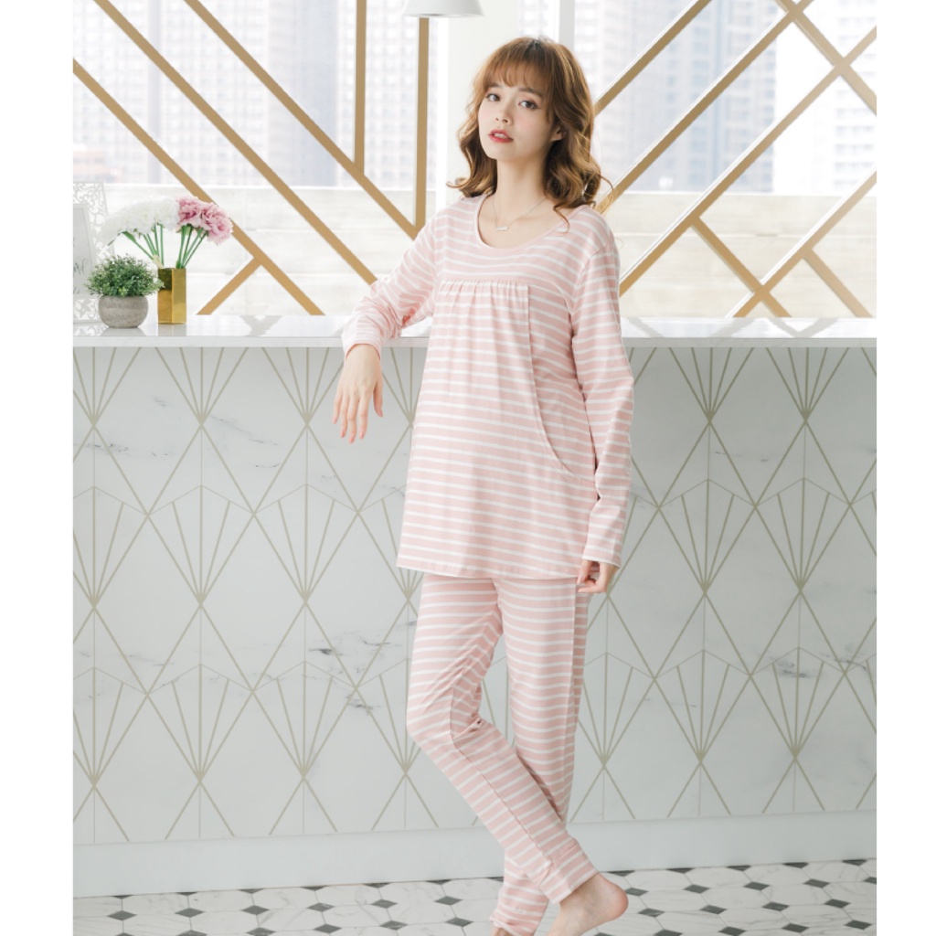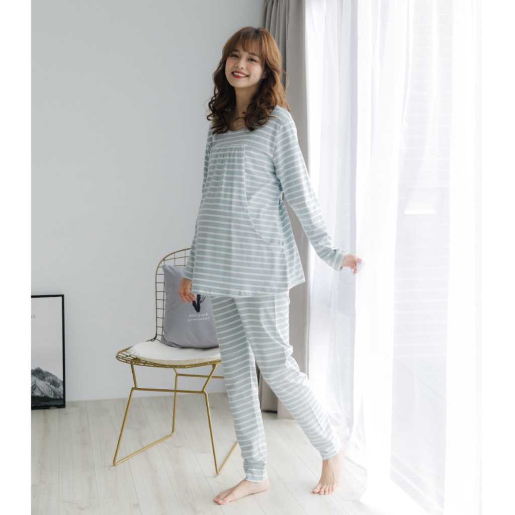 Mamamia孕婦裝 月子必備條紋哺乳睡衣 哺乳套裝 喂奶衣 長袖 哺乳衣 月子服 孕婦裝 [A1246]淺藍|粉|杏|深藍|淺灰Breastfeeding WearMamamia孕婦裝
