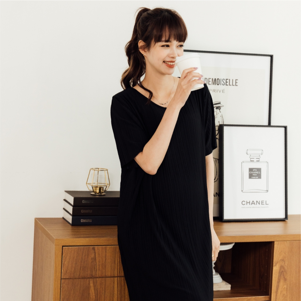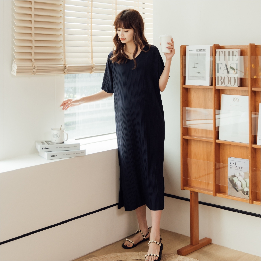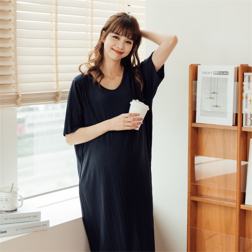 Mamamia孕婦裝 優雅涼感壓折孕婦洋裝 正韓製 孕婦裝 孕婦裙 洋裝 短袖 連身洋裝 孕婦洋裝 [D7365]黑|深藍|淺藍|粉Maternity DressesMamamia孕婦裝
