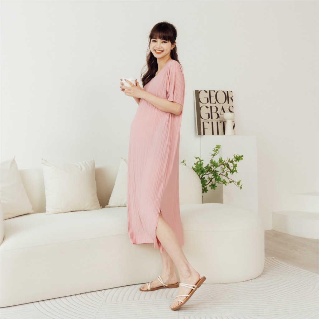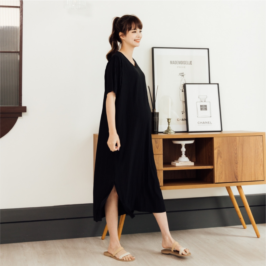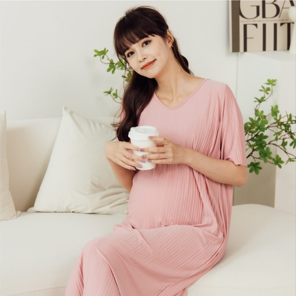 Mamamia孕婦裝 優雅涼感壓折孕婦洋裝 正韓製 孕婦裝 孕婦裙 洋裝 短袖 連身洋裝 孕婦洋裝 [D7365]黑|深藍|淺藍|粉Maternity DressesMamamia孕婦裝