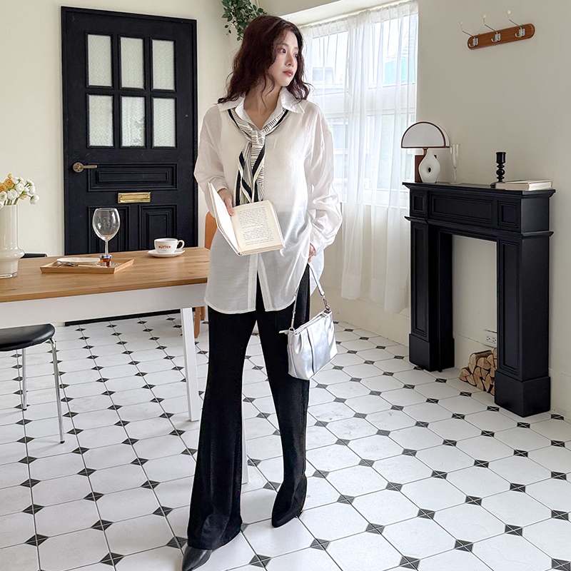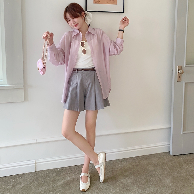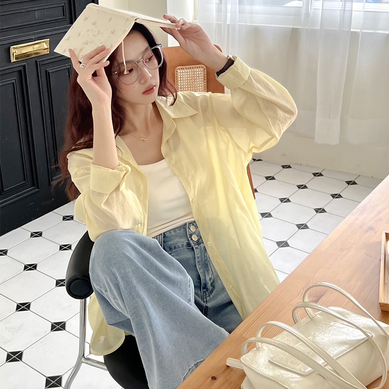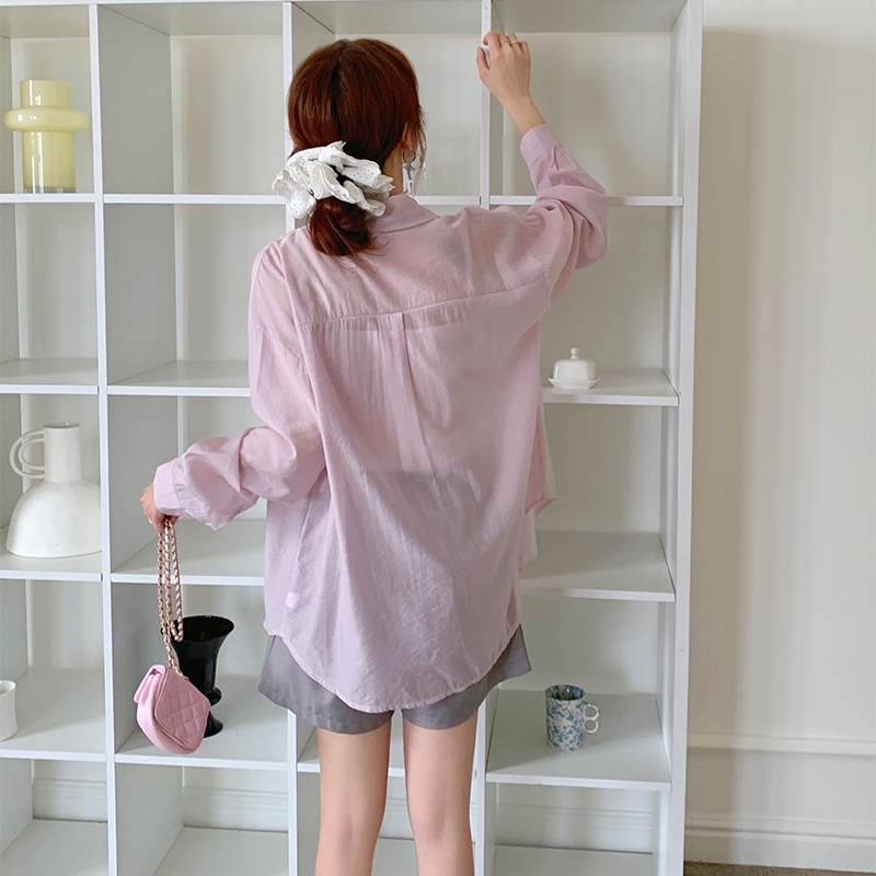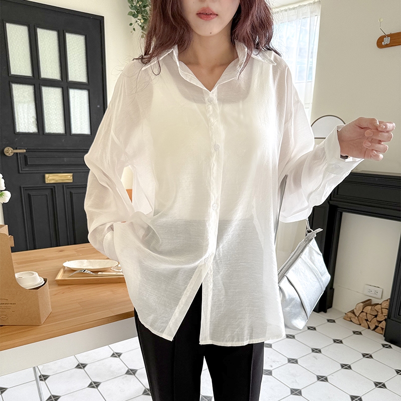 【HARPER】柔霧光微透肌襯衫 | 現貨 長袖襯衫 光澤感 透膚 透肌【CLE24033J】白,F|黃,F|粉紫,F|湖水藍,FShirts & BlousesHARPER
