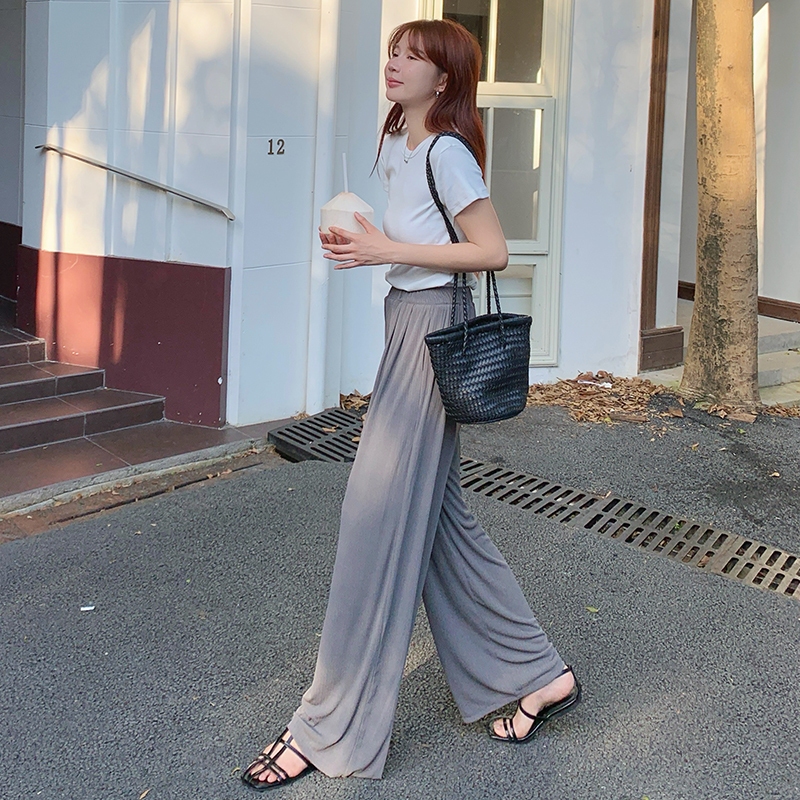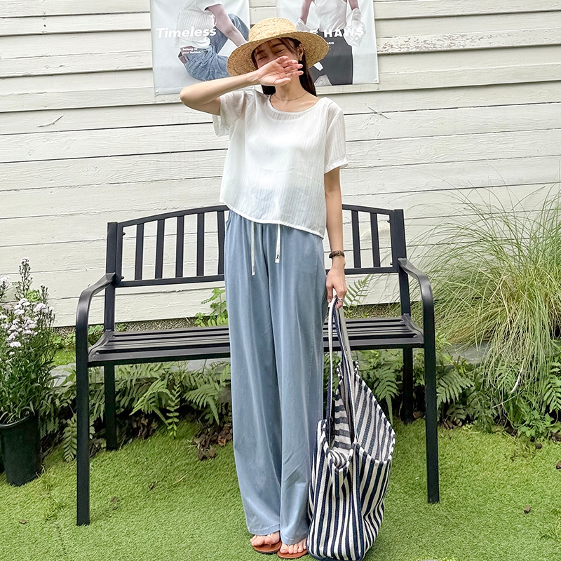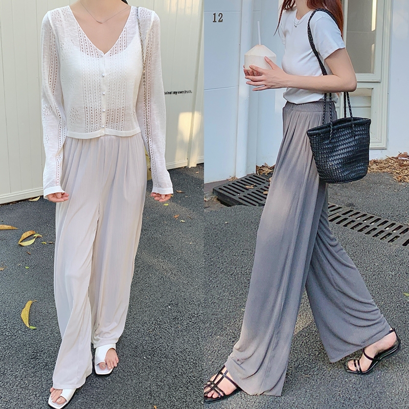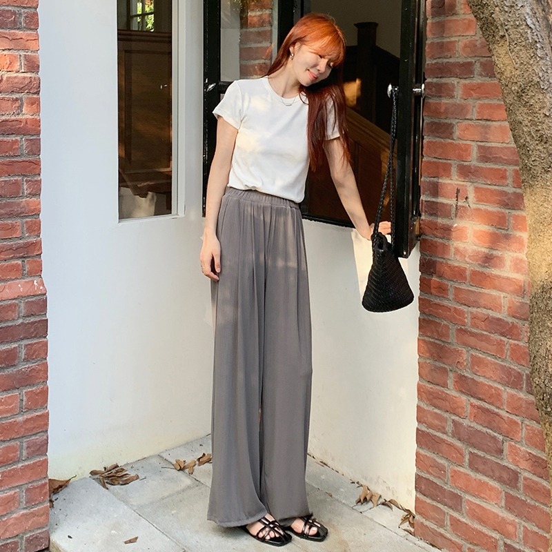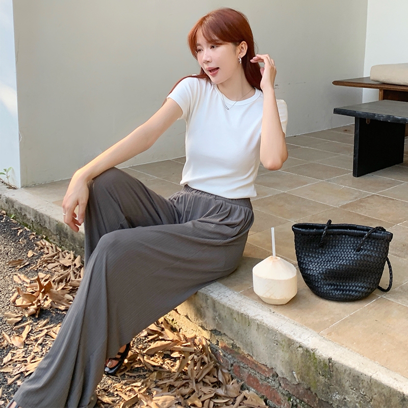 【HARPER】舒適順滑坑紋寬褲 | 現貨 長褲 褲子 寬褲【PNC46130J】杏,F|深灰,FPantsHARPER