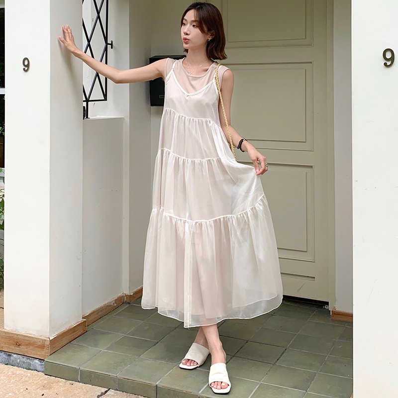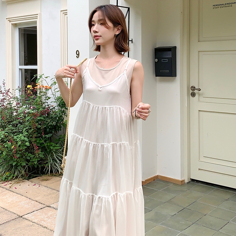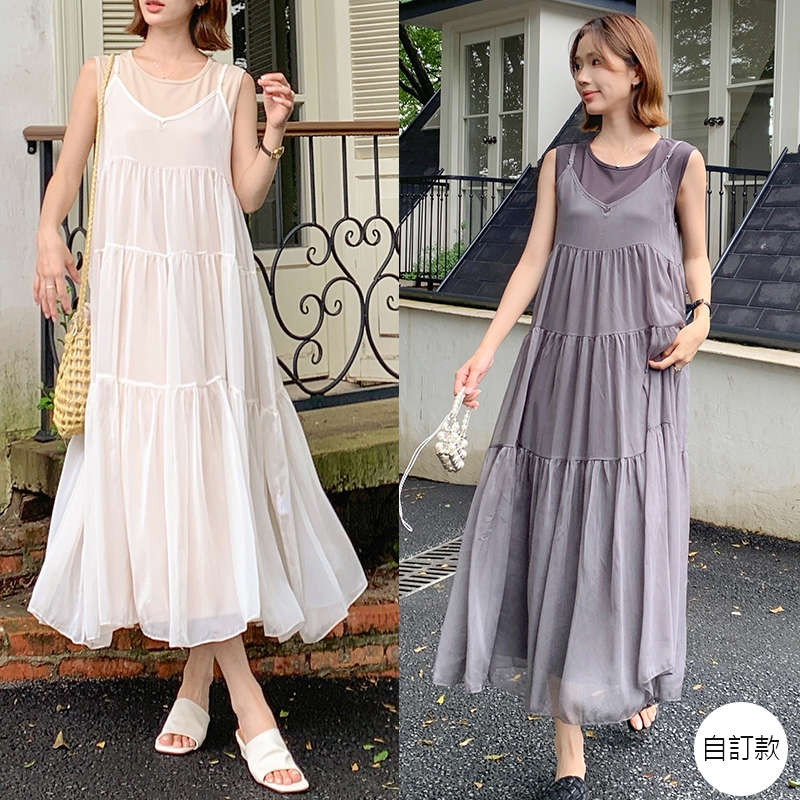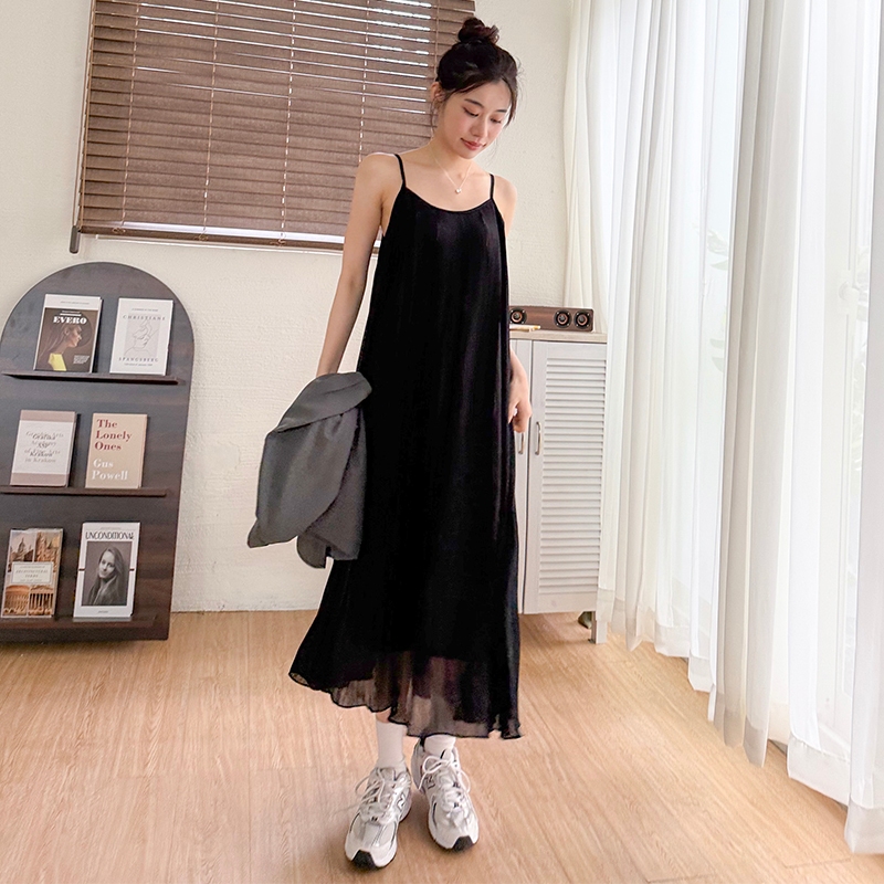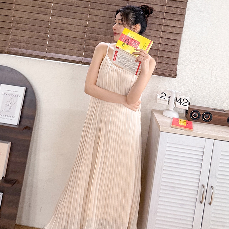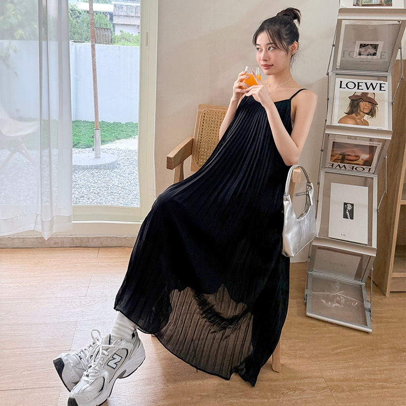 【HARPER】渡假風百褶紗洋裝 有內裏 | 現貨 細肩帶洋裝 百褶 度假【DSD53124J】杏,F|黑,FHARPER