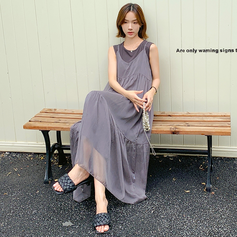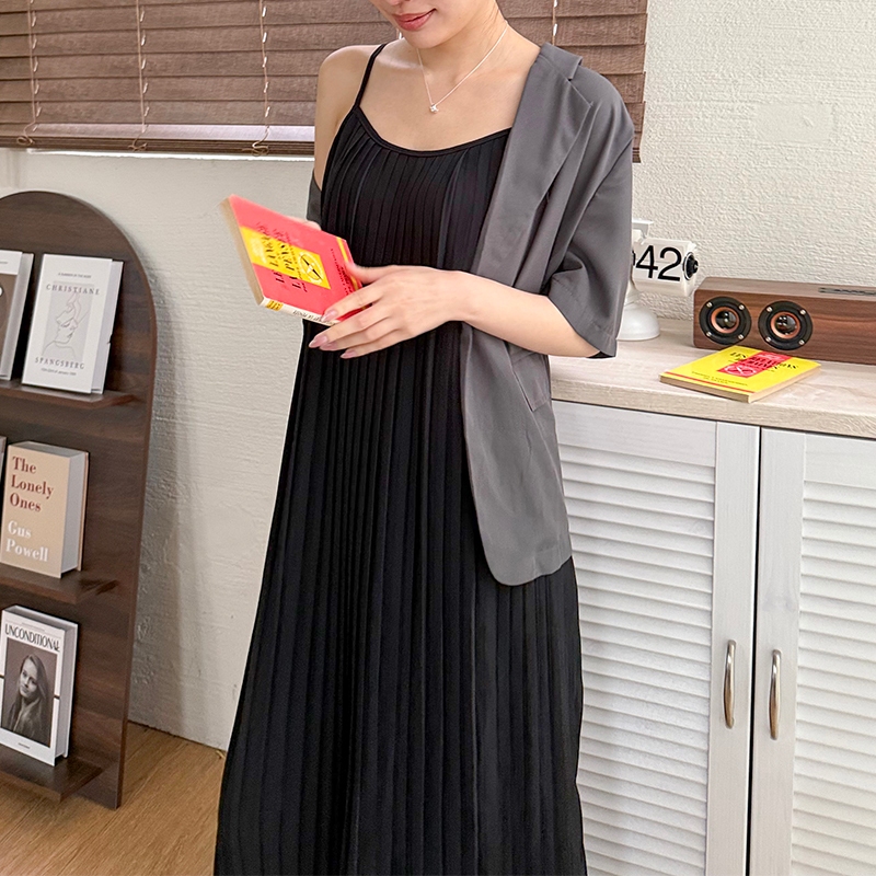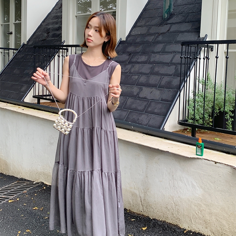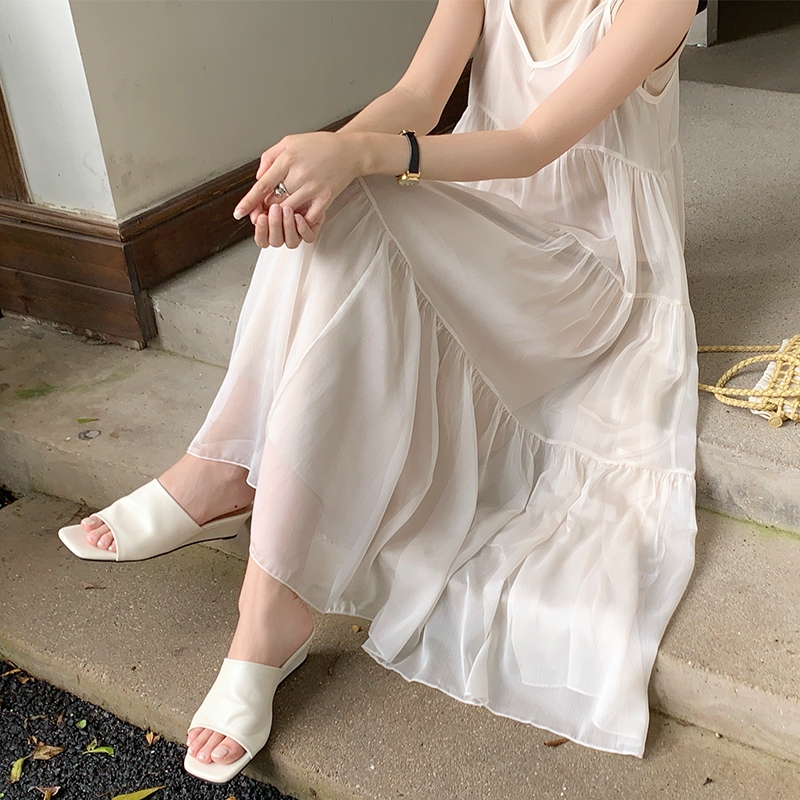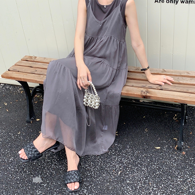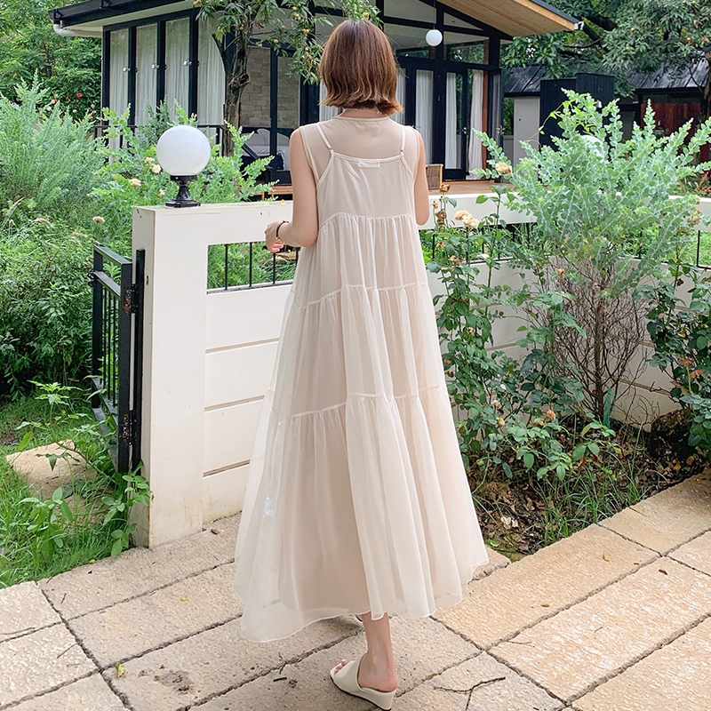 【HARPER】渡假風百褶紗洋裝 有內裏 | 現貨 細肩帶洋裝 百褶 度假【DSD53124J】杏,F|黑,FHARPER