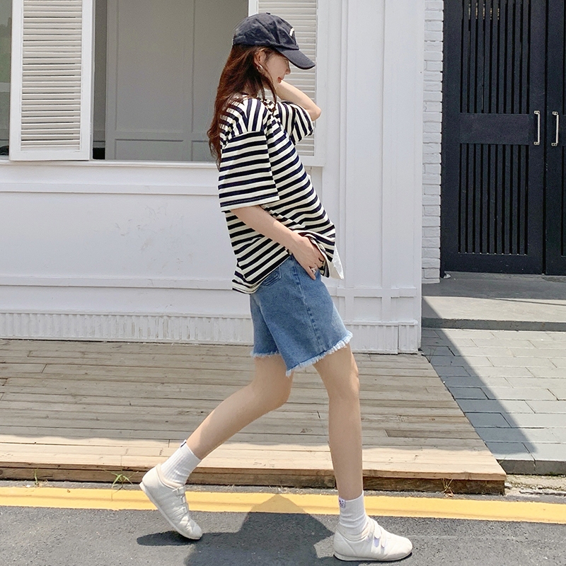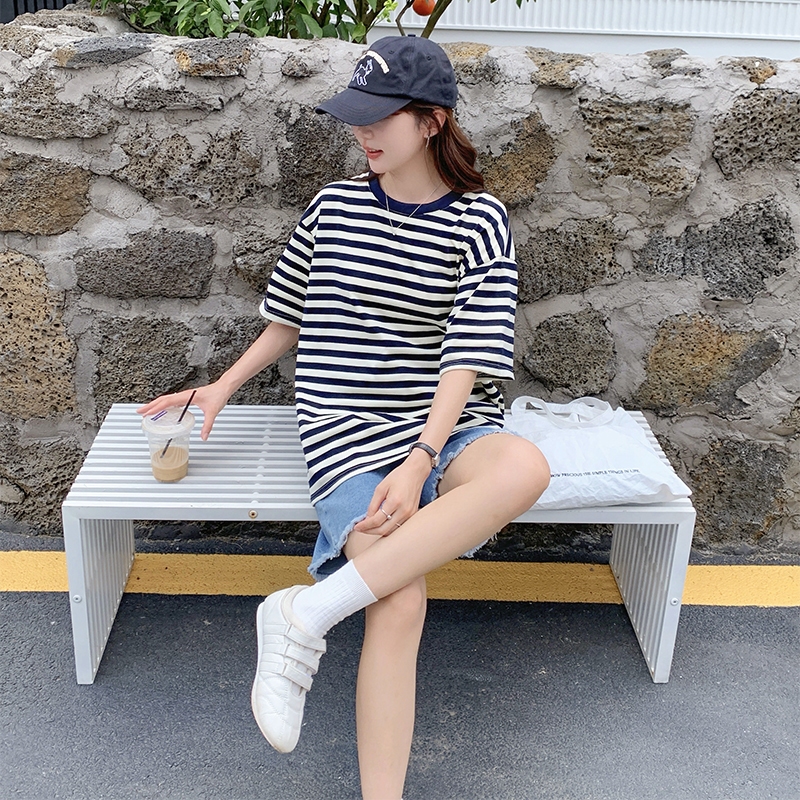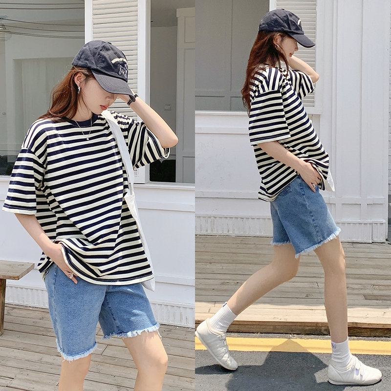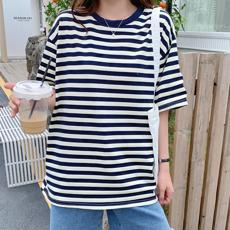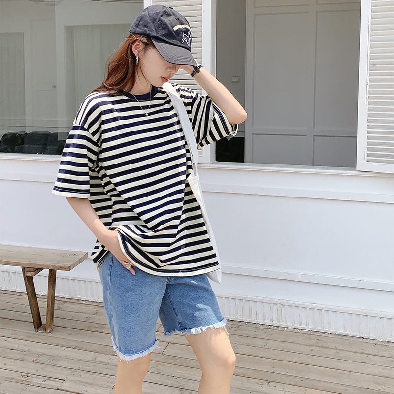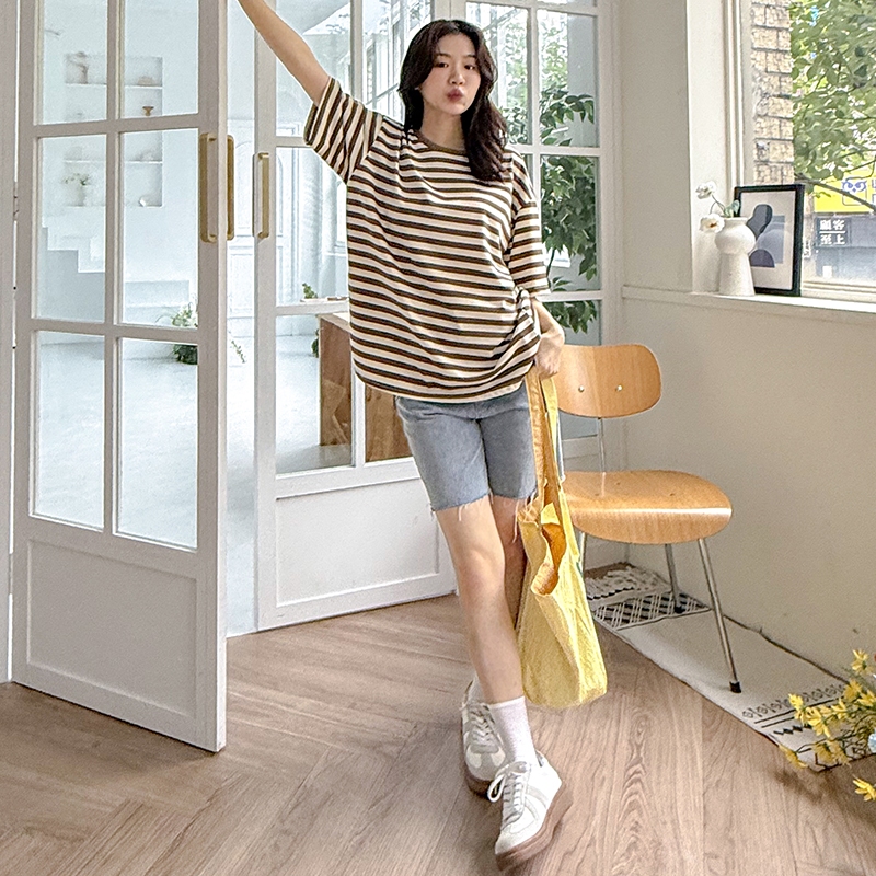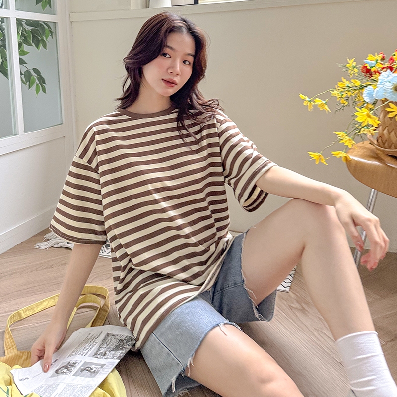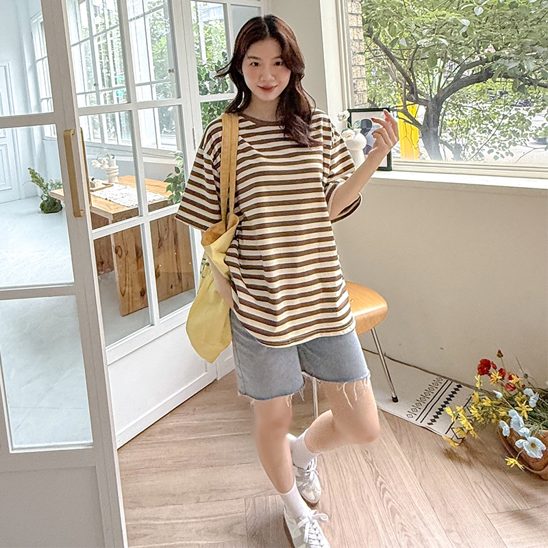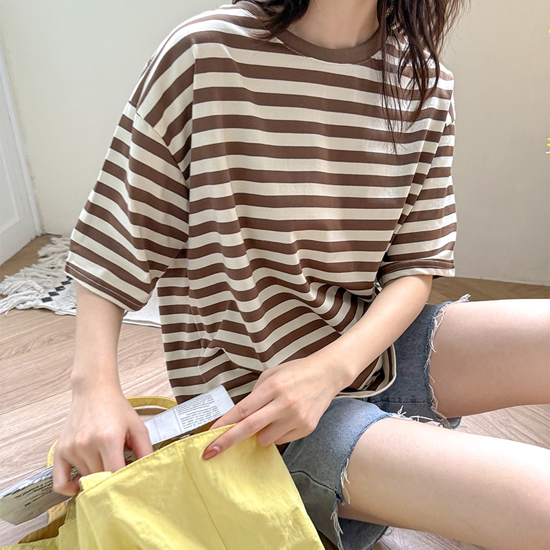 【HARPER】休閒條紋棉質T恤 | 現貨 短袖上衣T恤 棉T 條紋【CLE24526J】藍,F|咖,FT-shirtsHARPER