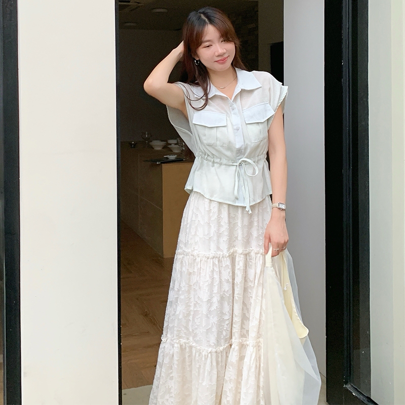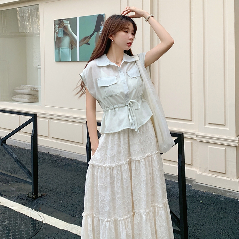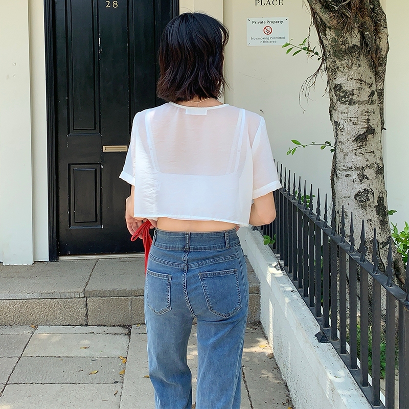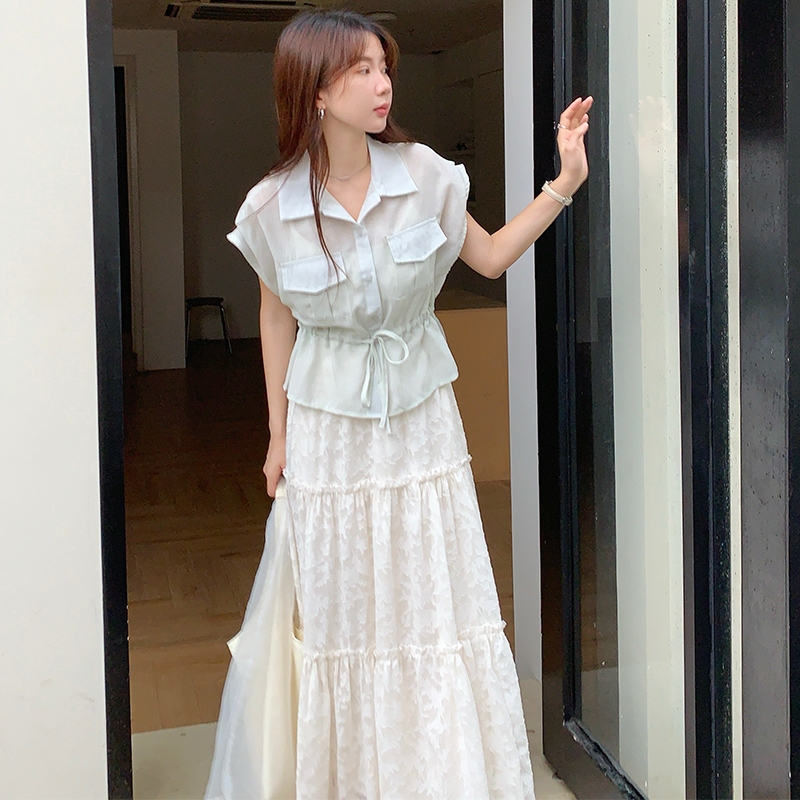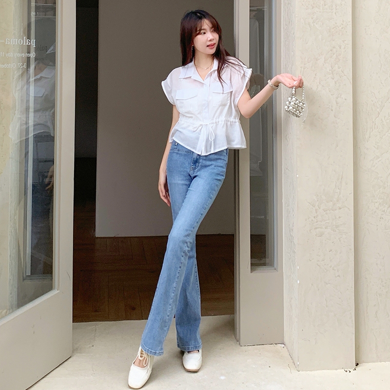 【HARPER】腰抽繩微透膚包袖襯衫 | 現貨 襯衫 包袖 短袖上衣【CLB42629J】白,F|灰綠,FShirts & BlousesHARPER