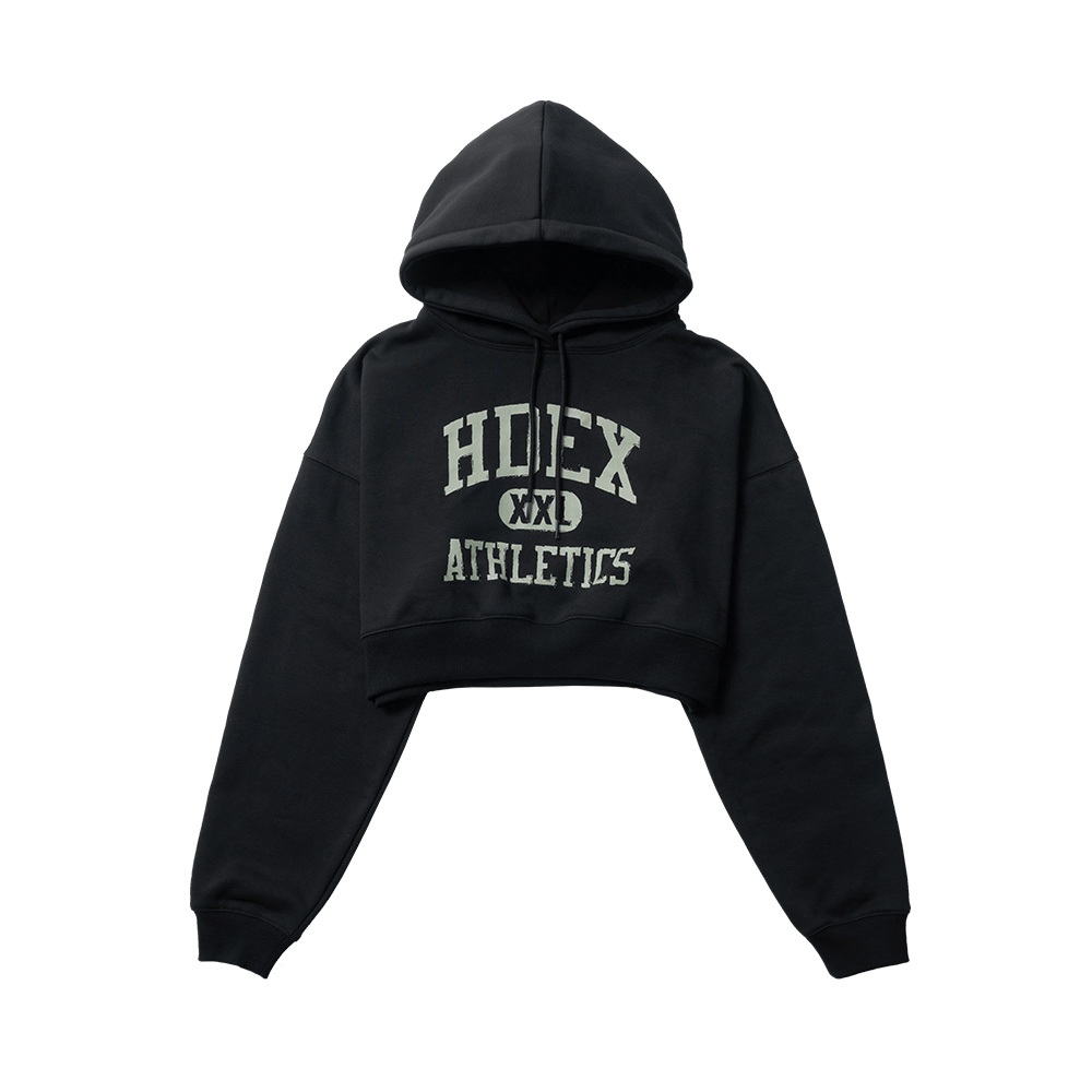 【HDEX】Varsity 美式校園風短版長袖連帽上衣_黑色S|M|LHoodiesHDEX 官方旗艦店