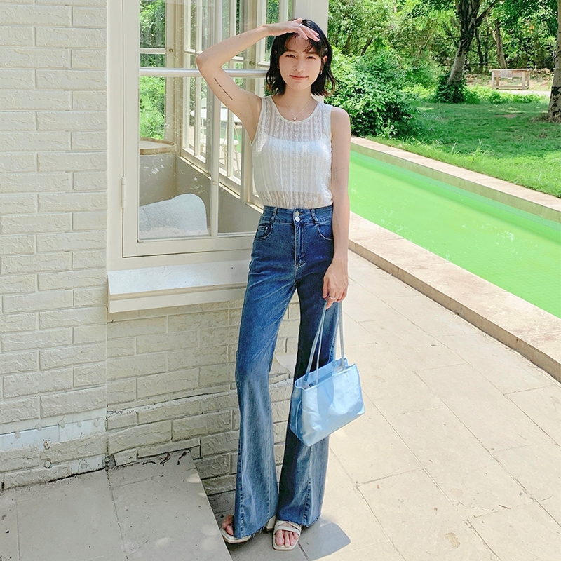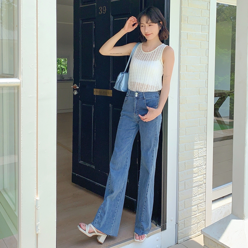 【HARPER】視覺顯瘦彈力抽鬚牛仔褲 | 現貨 牛仔褲 褲子 顯瘦褲【PNZ78722J】