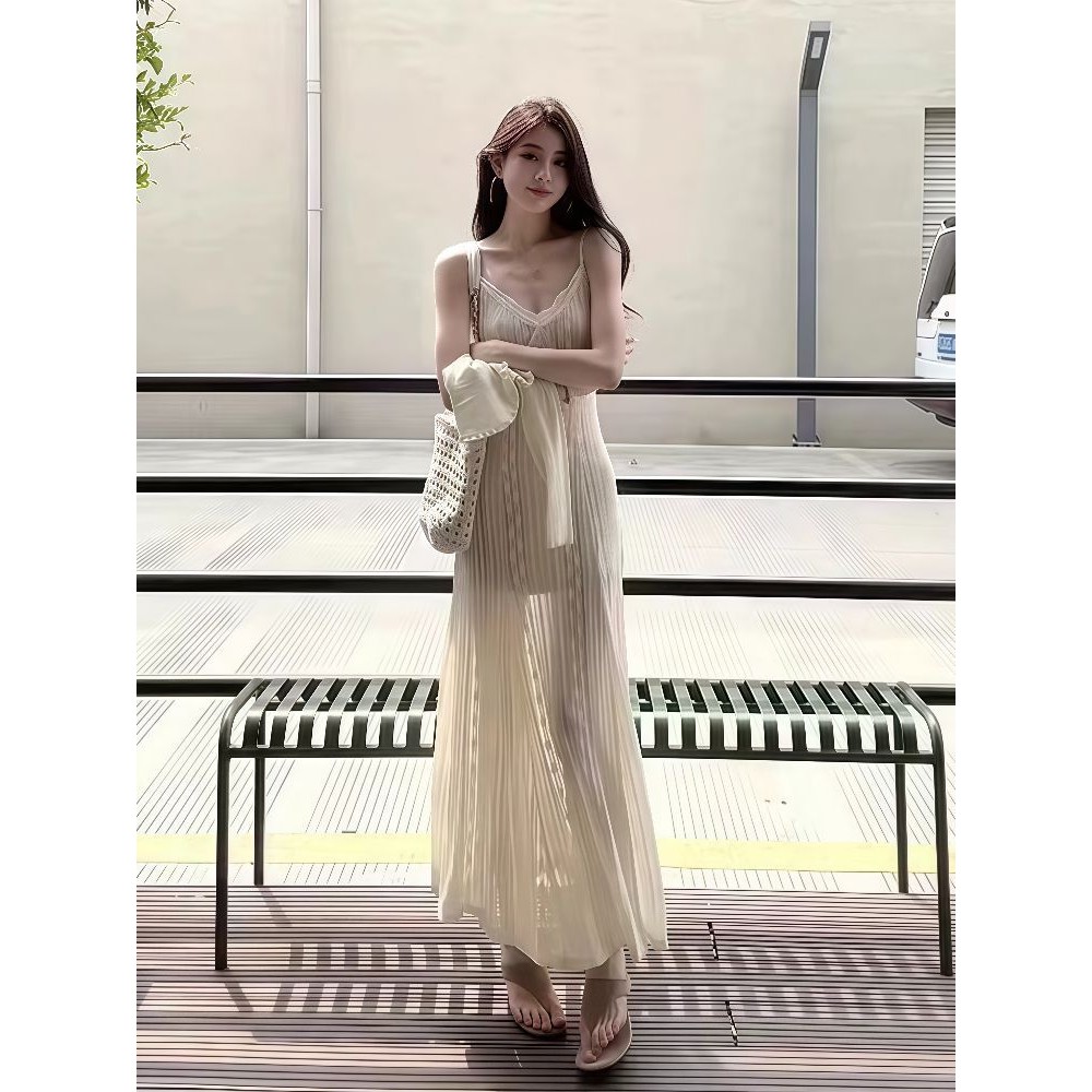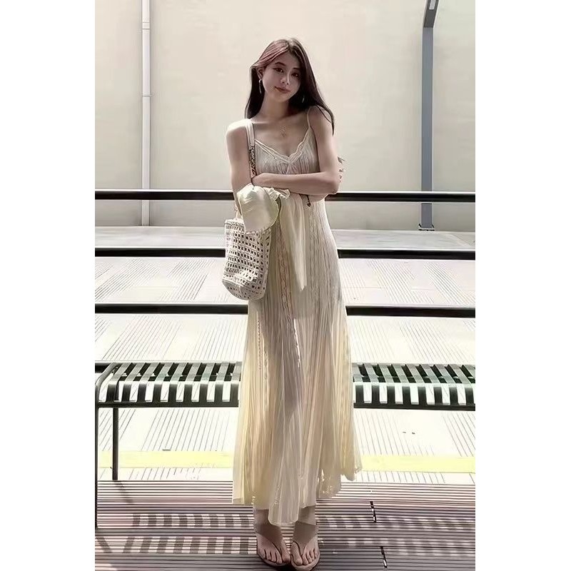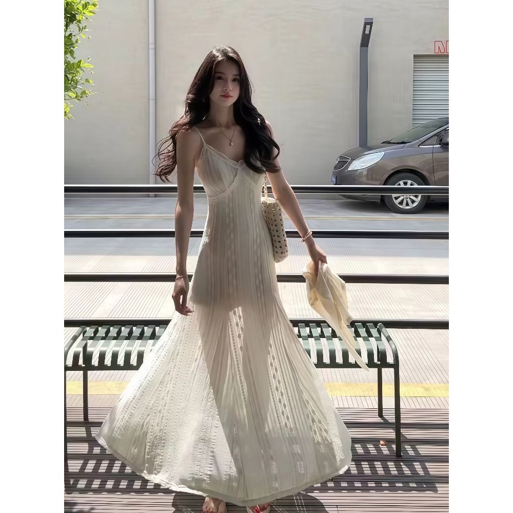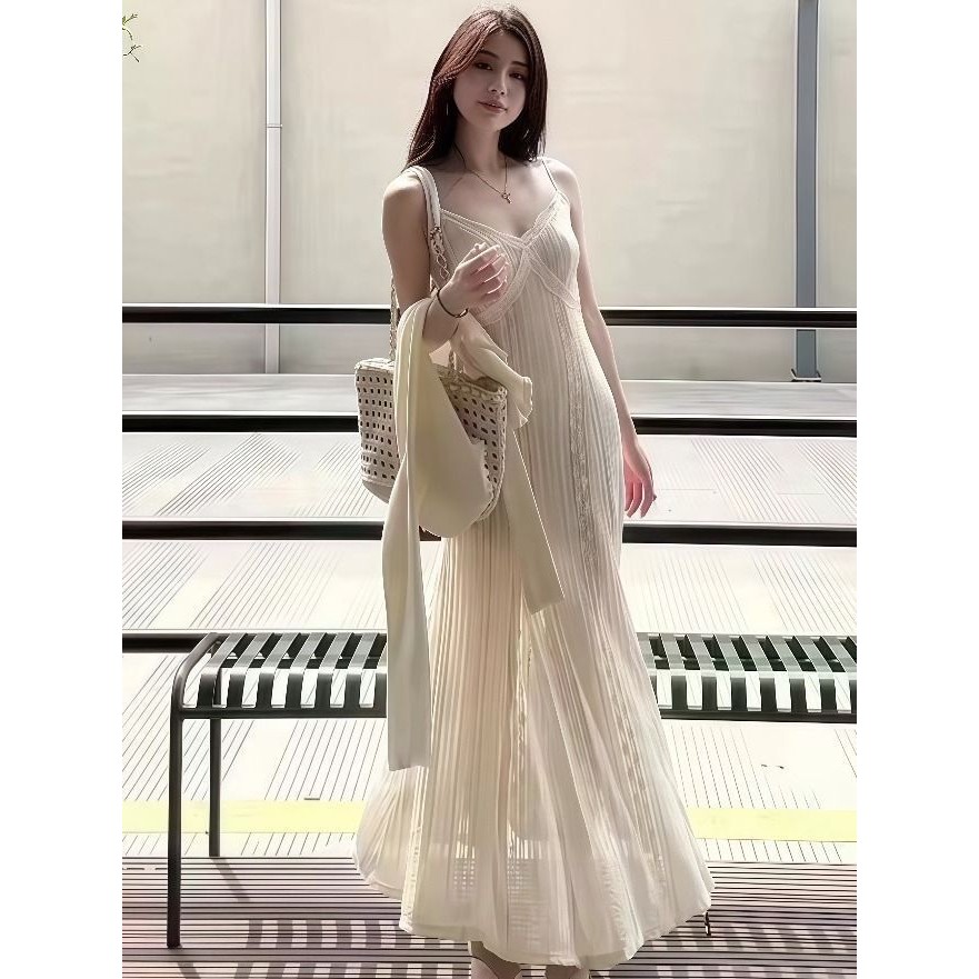 【HOT 本舖】 法式純欲浪漫高級感吊帶連衣裙女夏季新款顯瘦修身氣質設計感長裙圖片色,S|圖片色,M|圖片色,L|圖片色,XLHOT本舖|女裝館